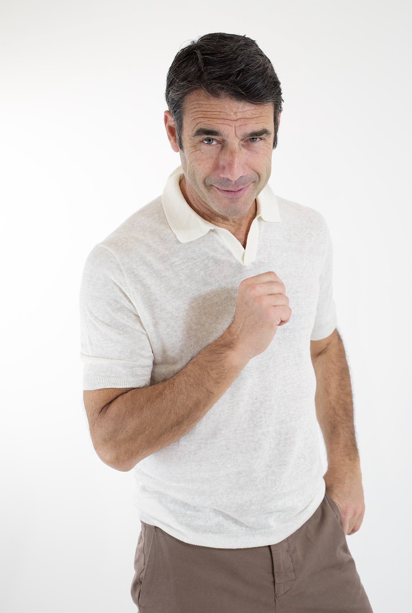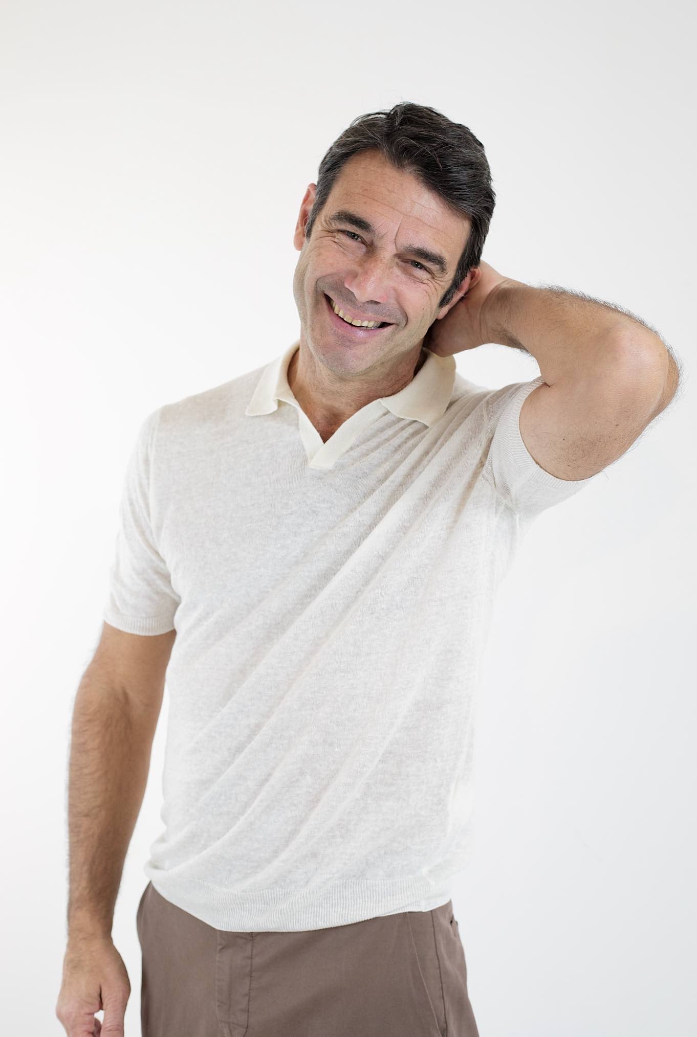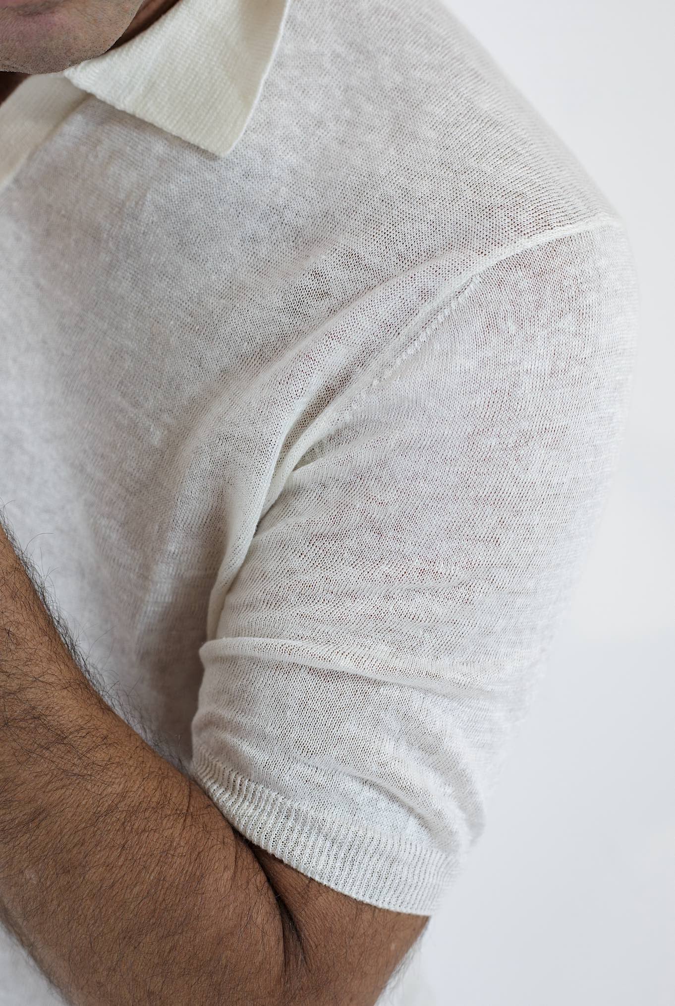BARBA Linen Polo MM Without Buttons Cream White