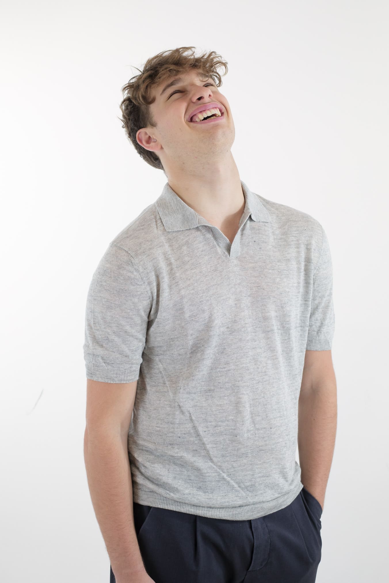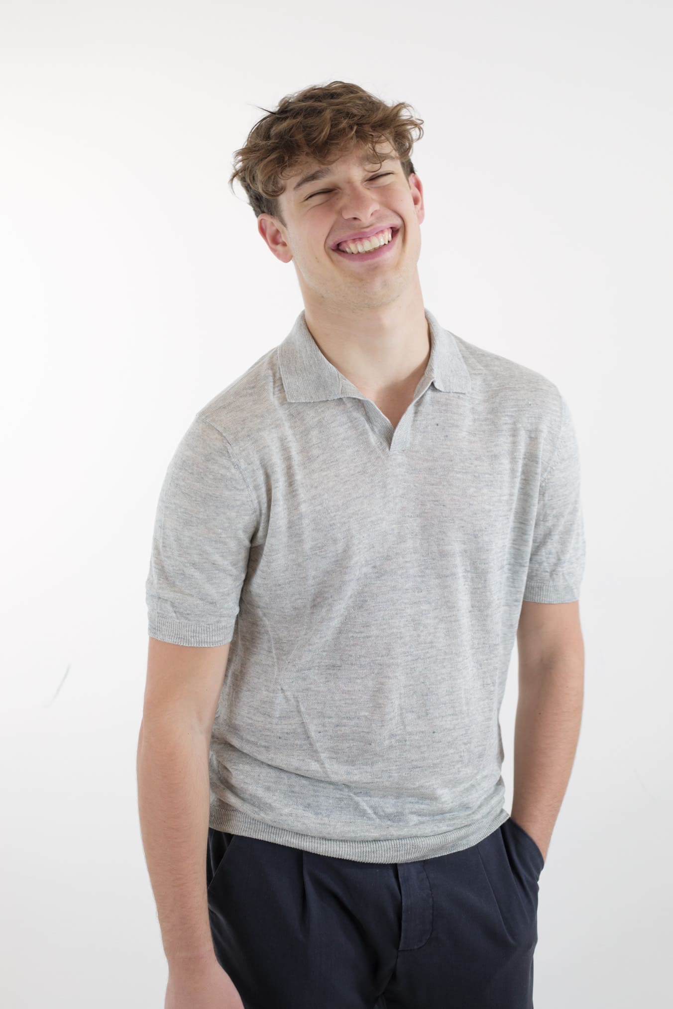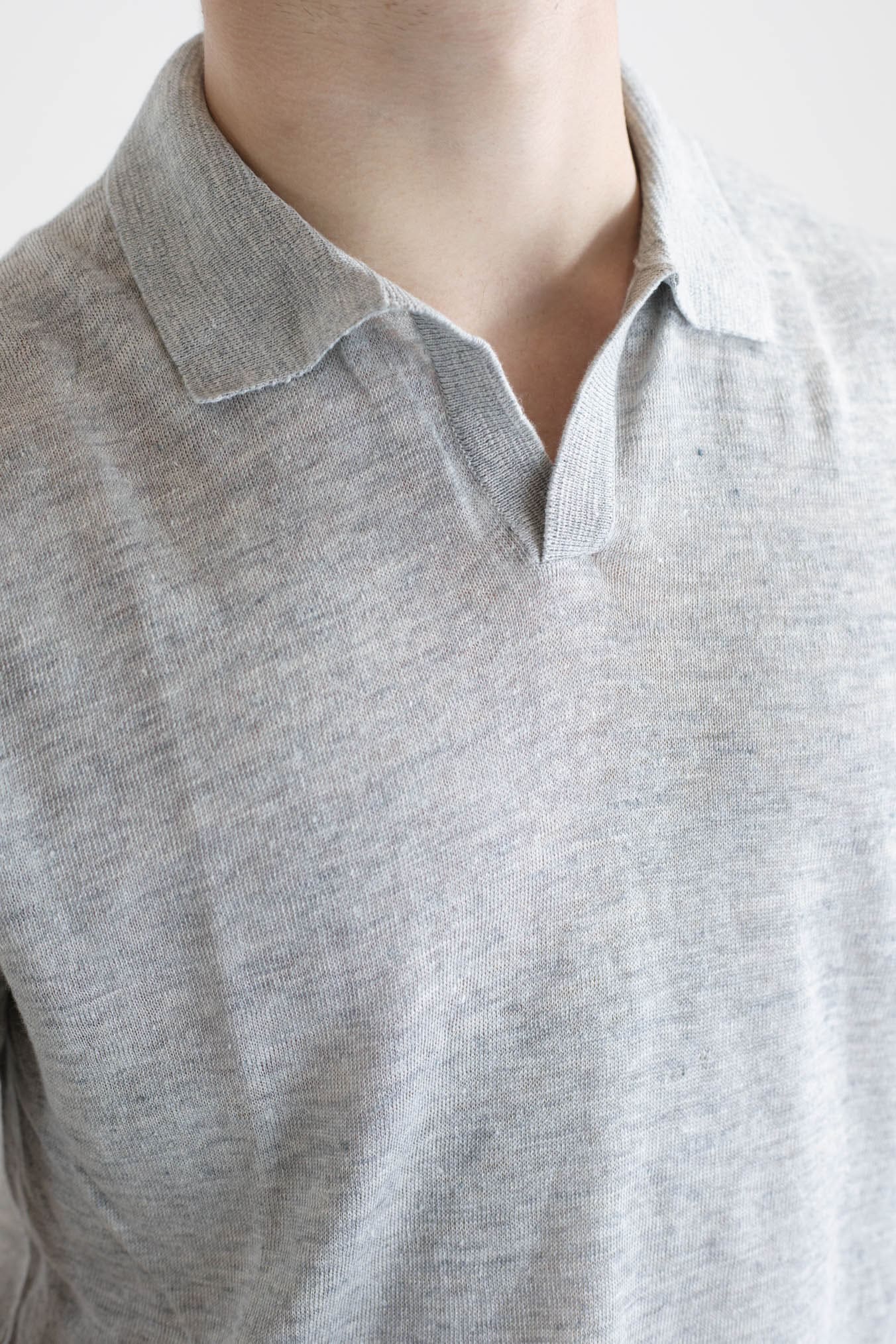 BARBA Linen Polo Shirt Without Buttons Mélange Grey