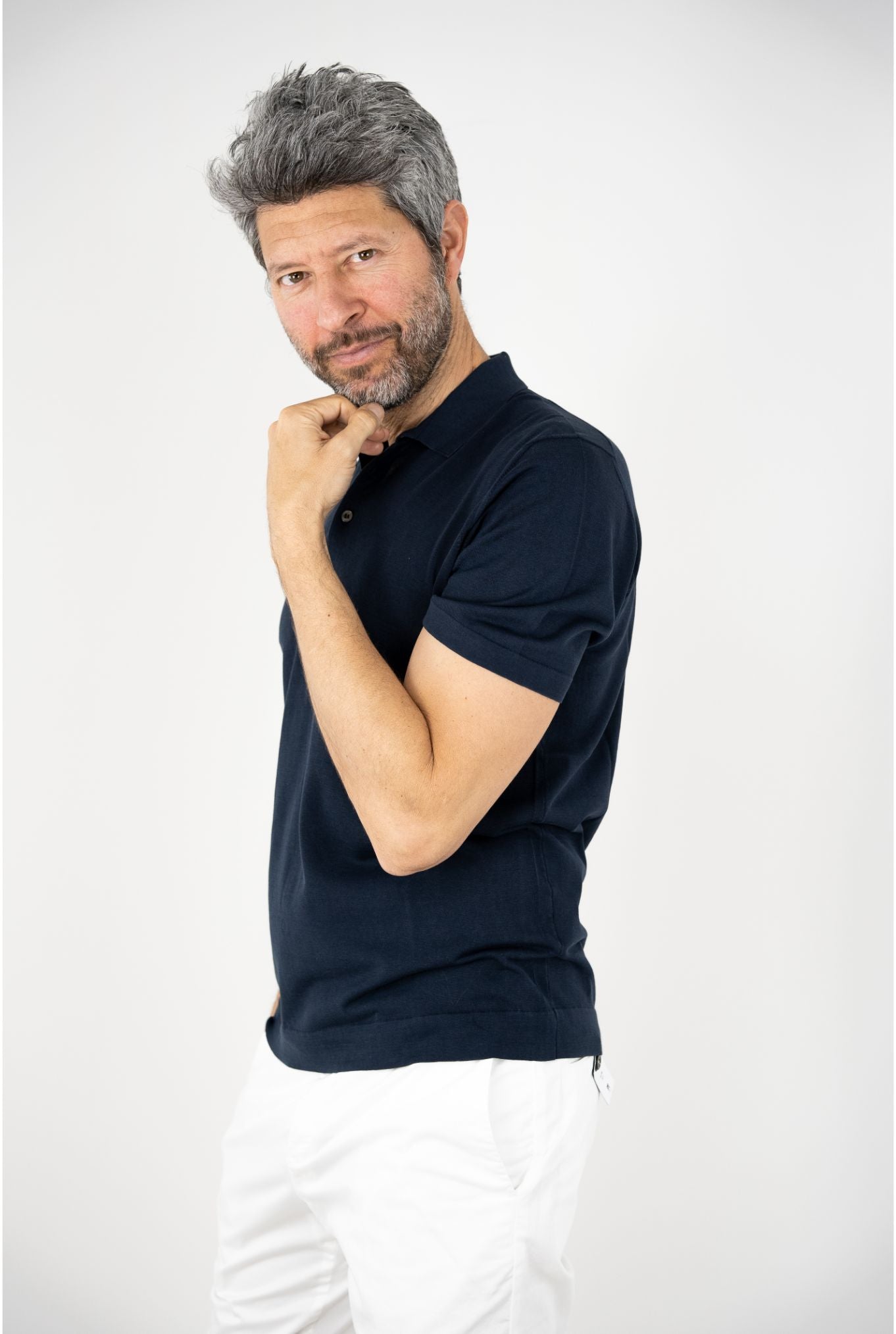 DRUMOHR Polo Short Sleeves Cotton Frosted Dark Blue