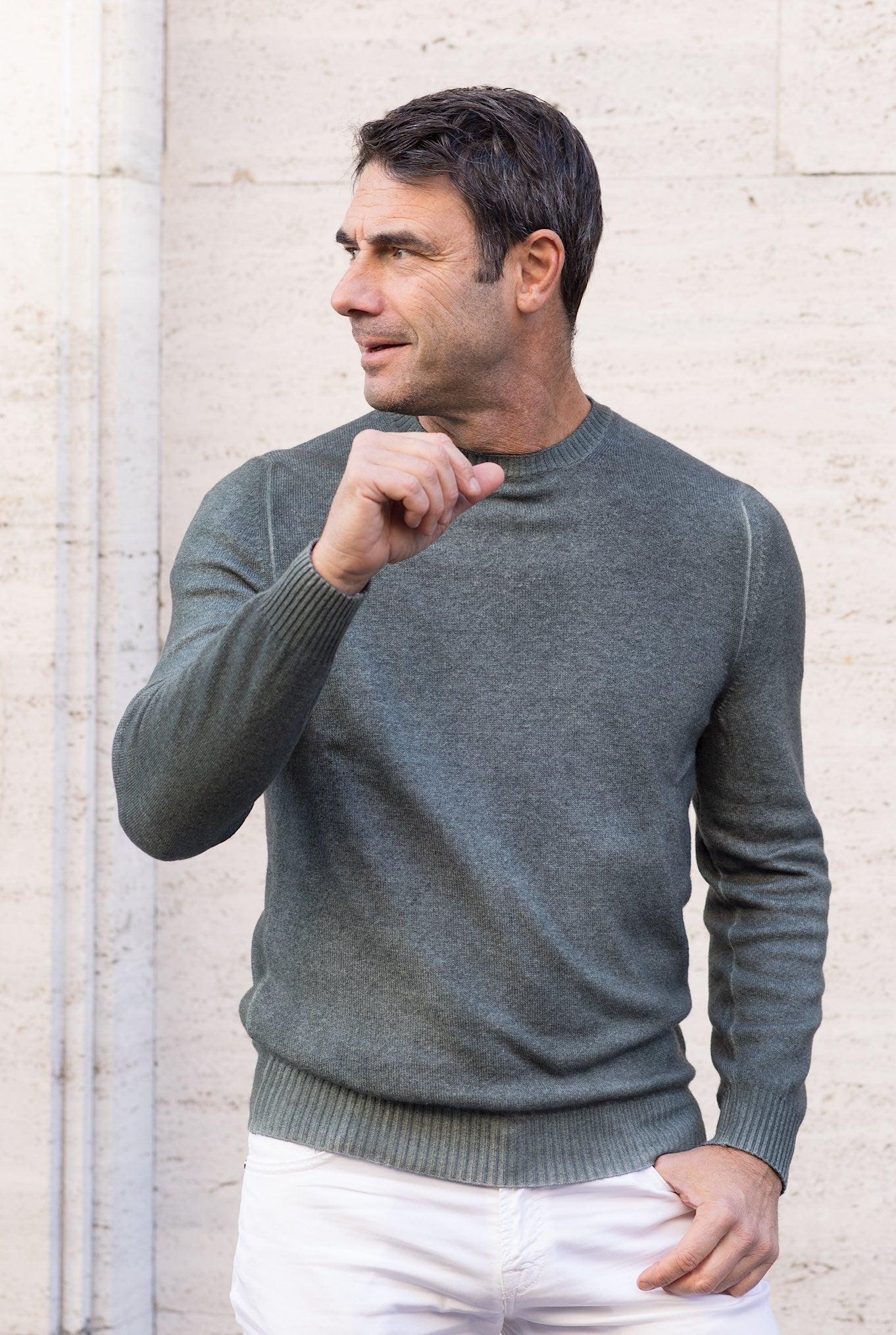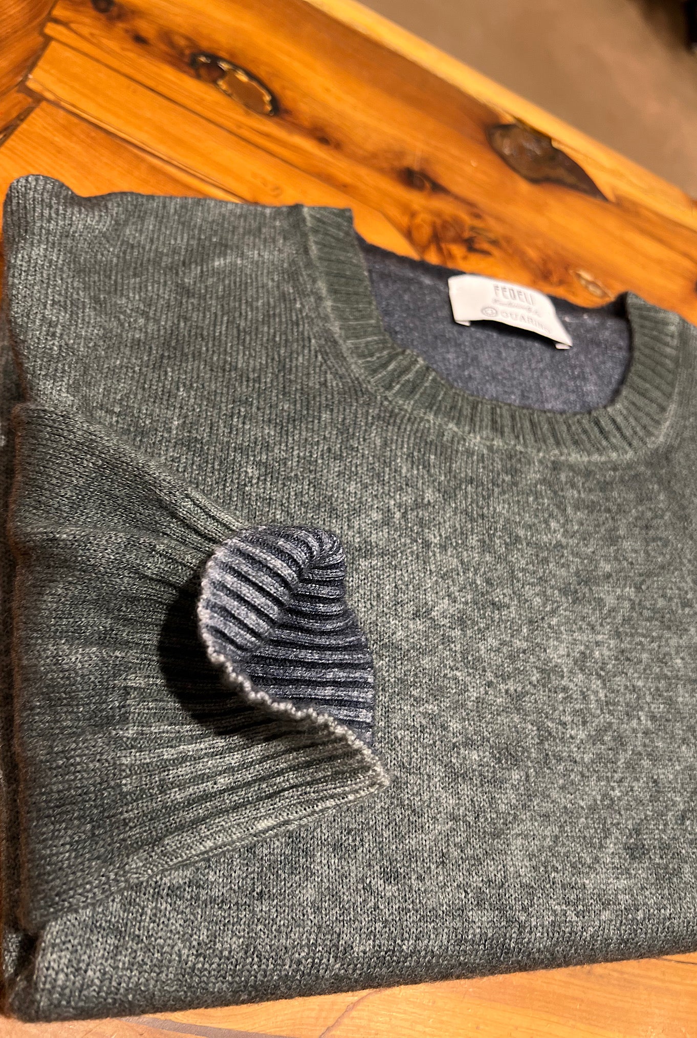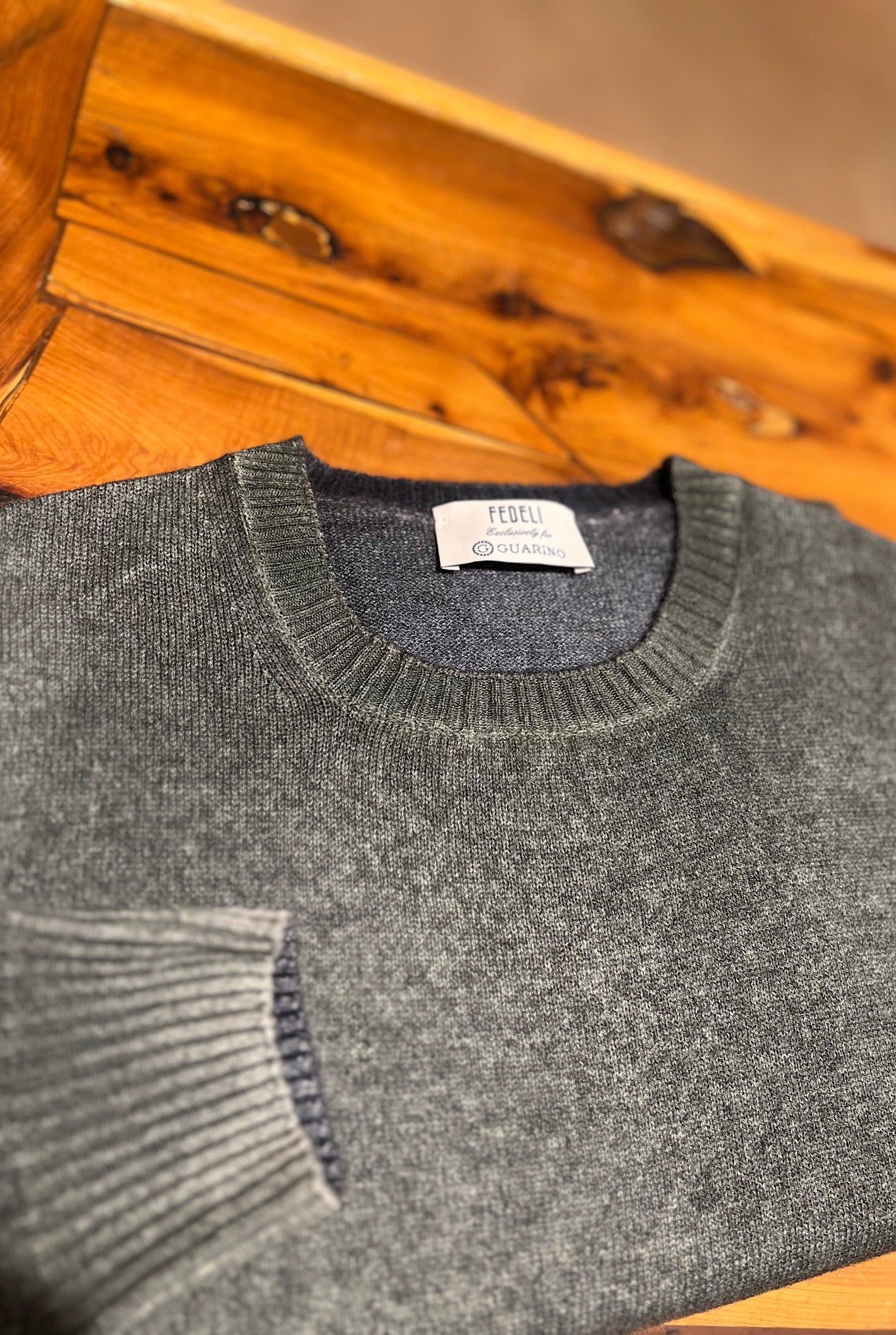 FEDELI Green "Sprayed" Cashmere Crewneck