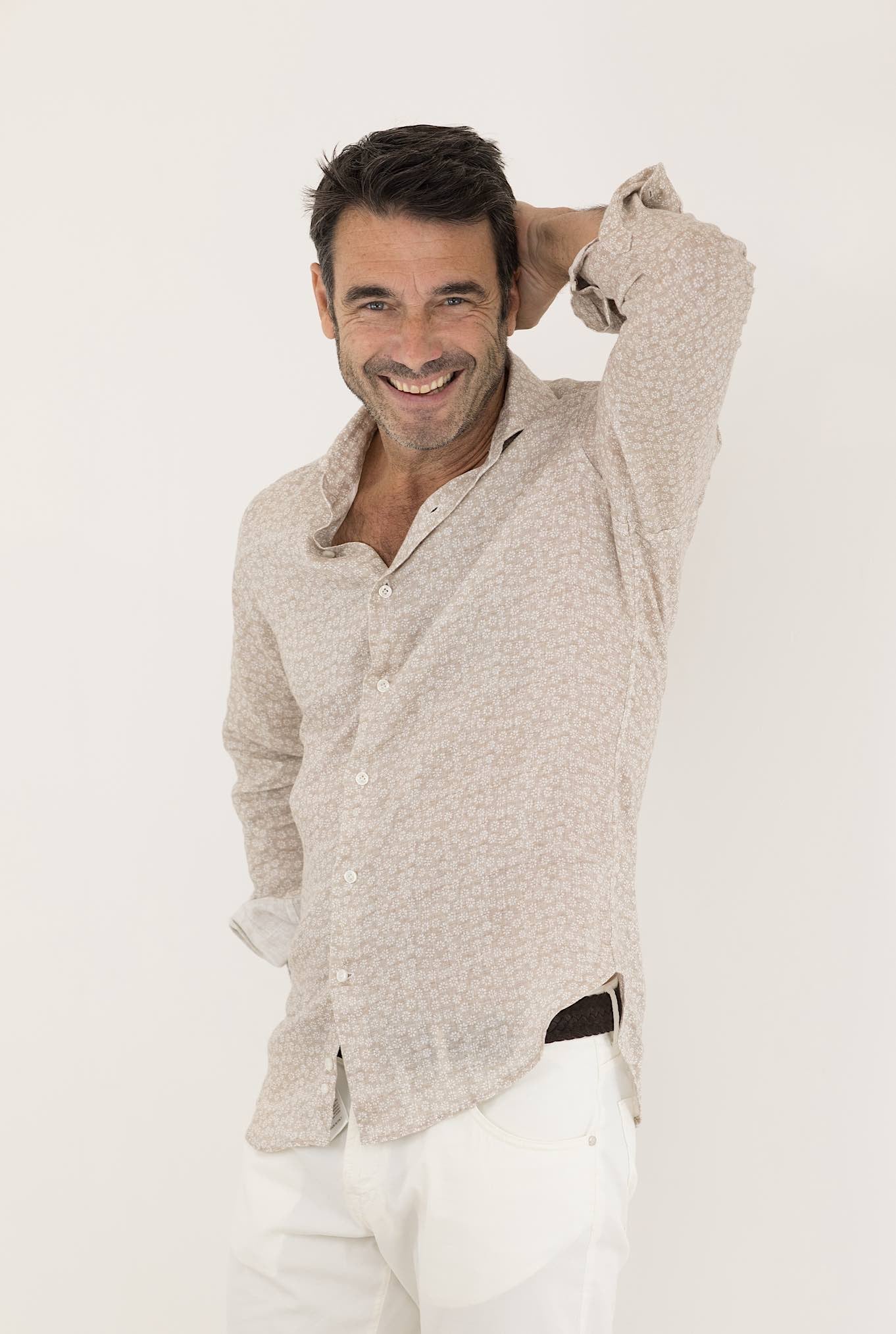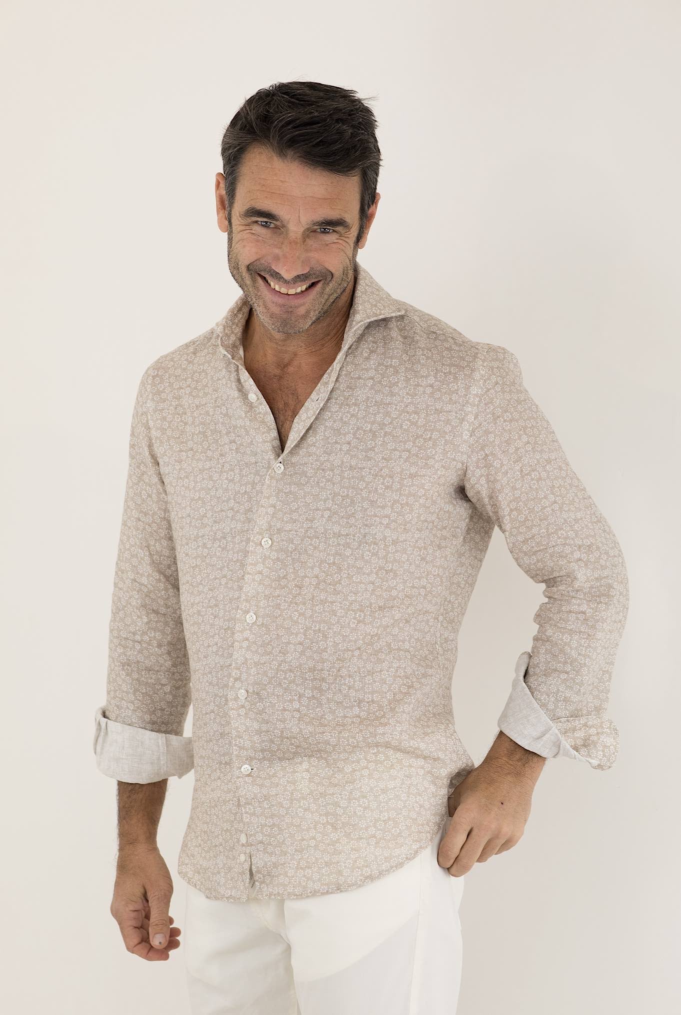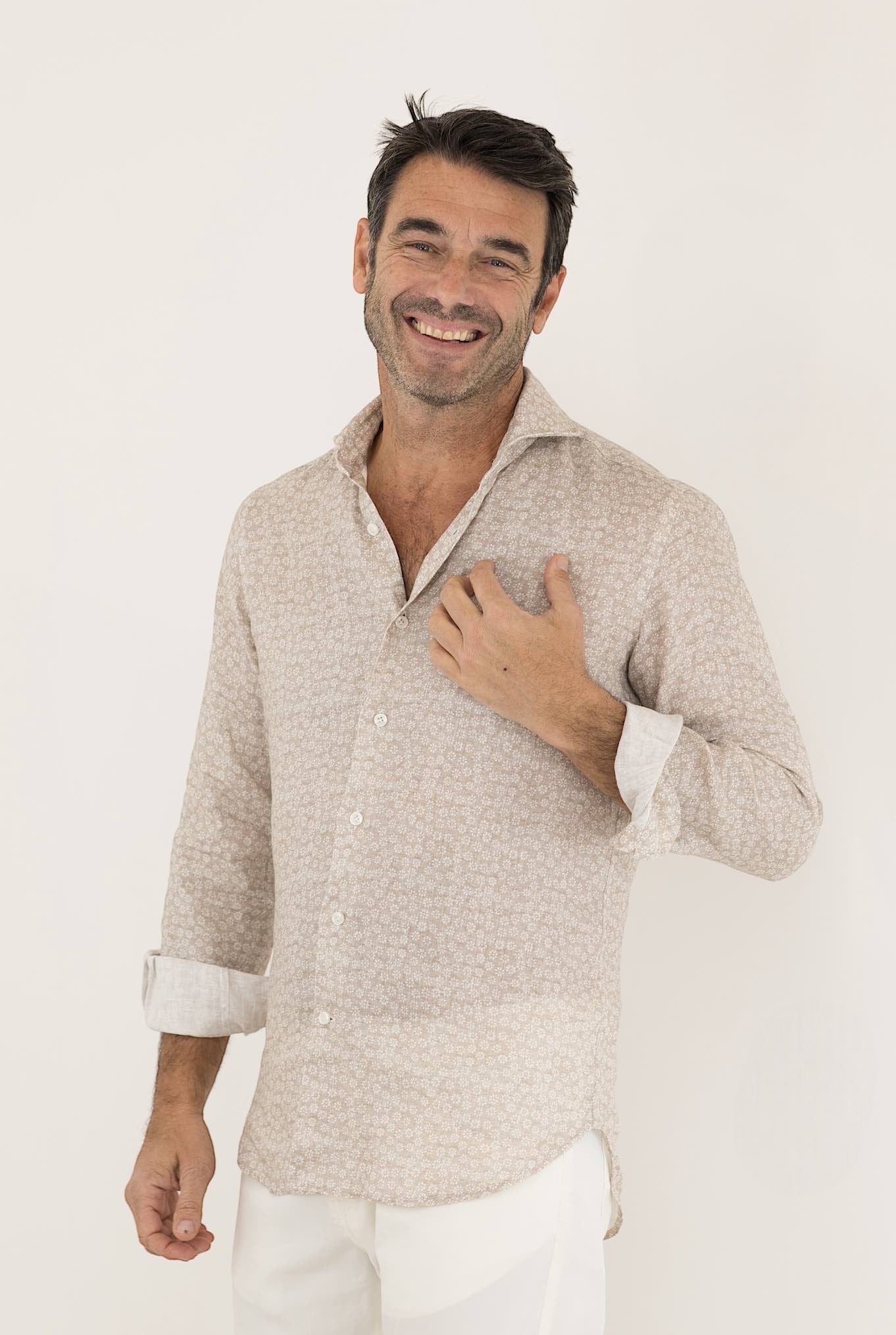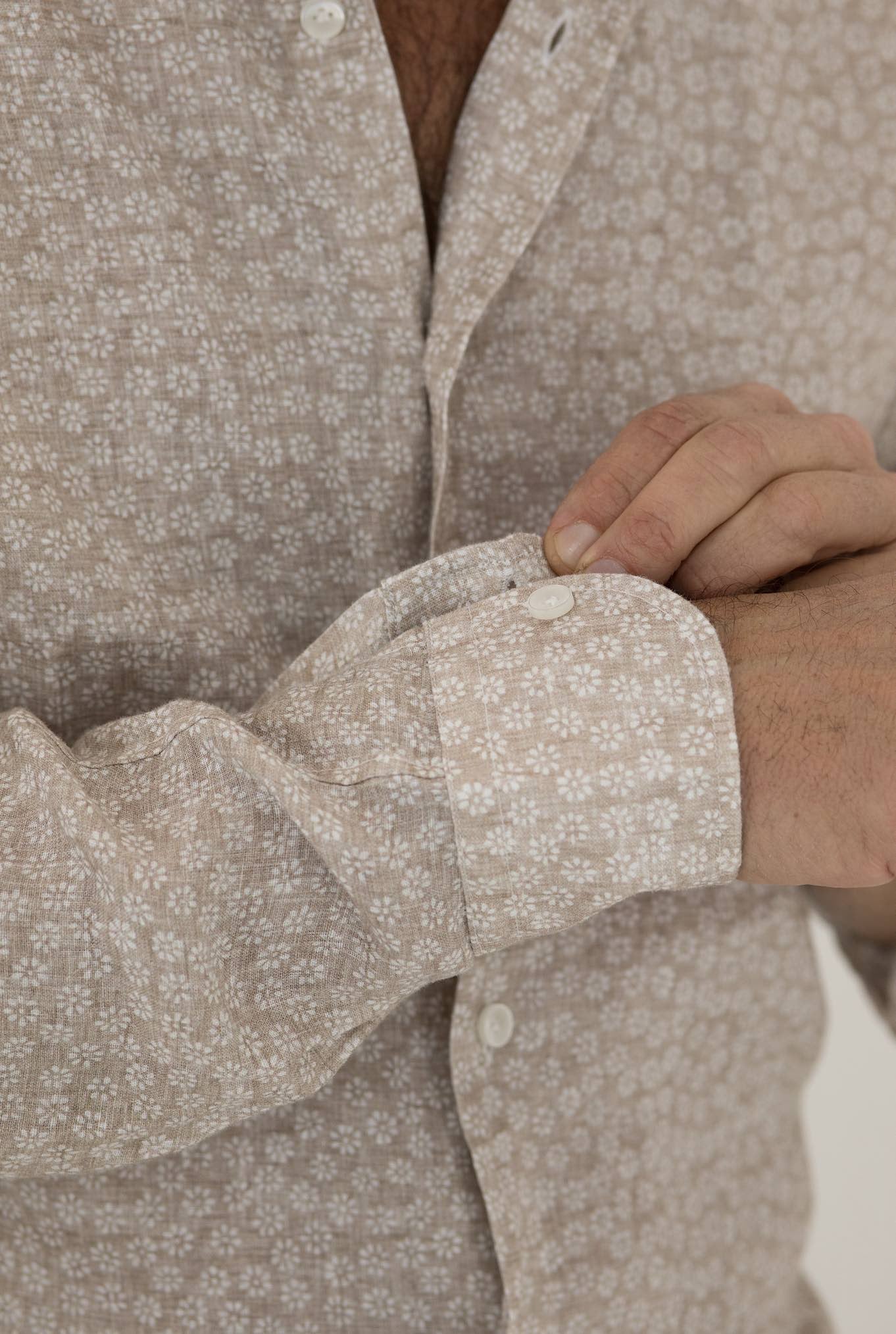 The beige printed linen shirt by 4FF is a light and fresh item of clothing, perfect for summer days. Made of linen, it offers comfort and breathability.
