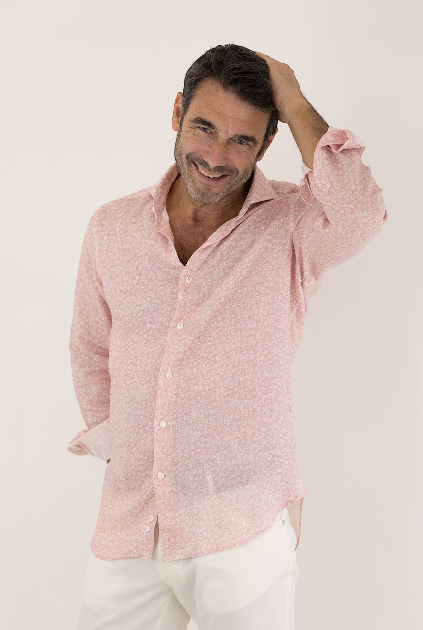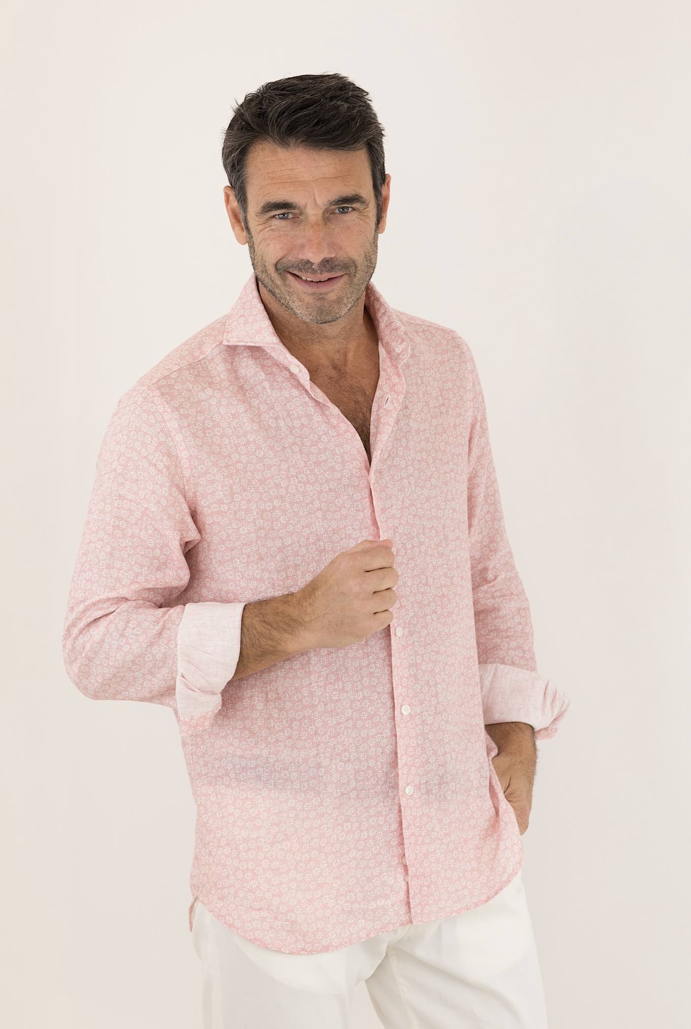 The pink printed linen shirt by 4FF is a light and fresh item of clothing, perfect for summer days. Made of linen, it offers comfort and breathability.