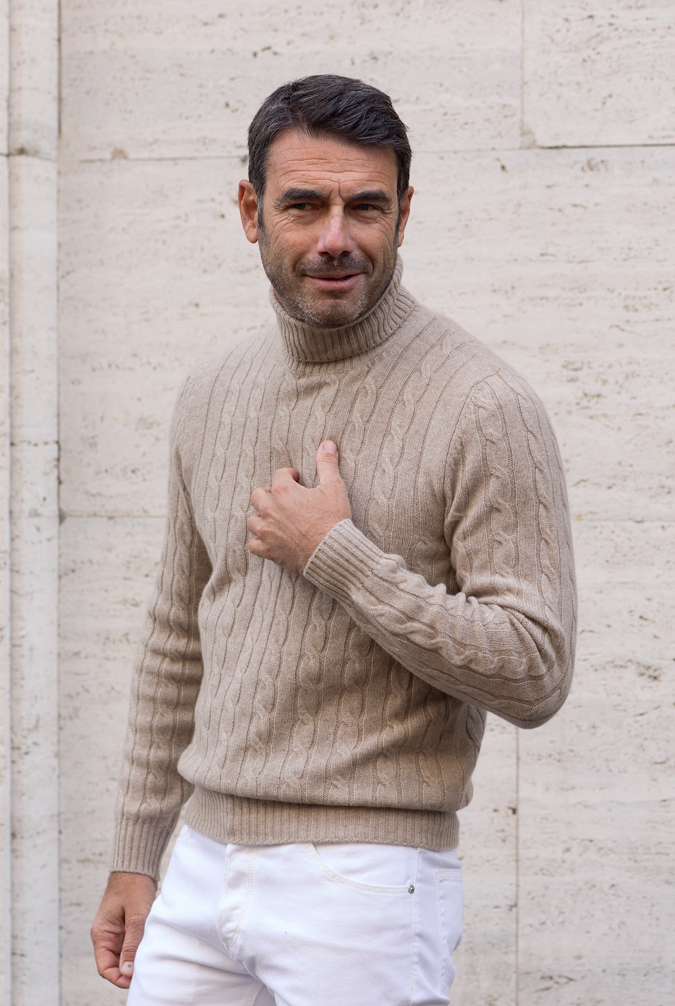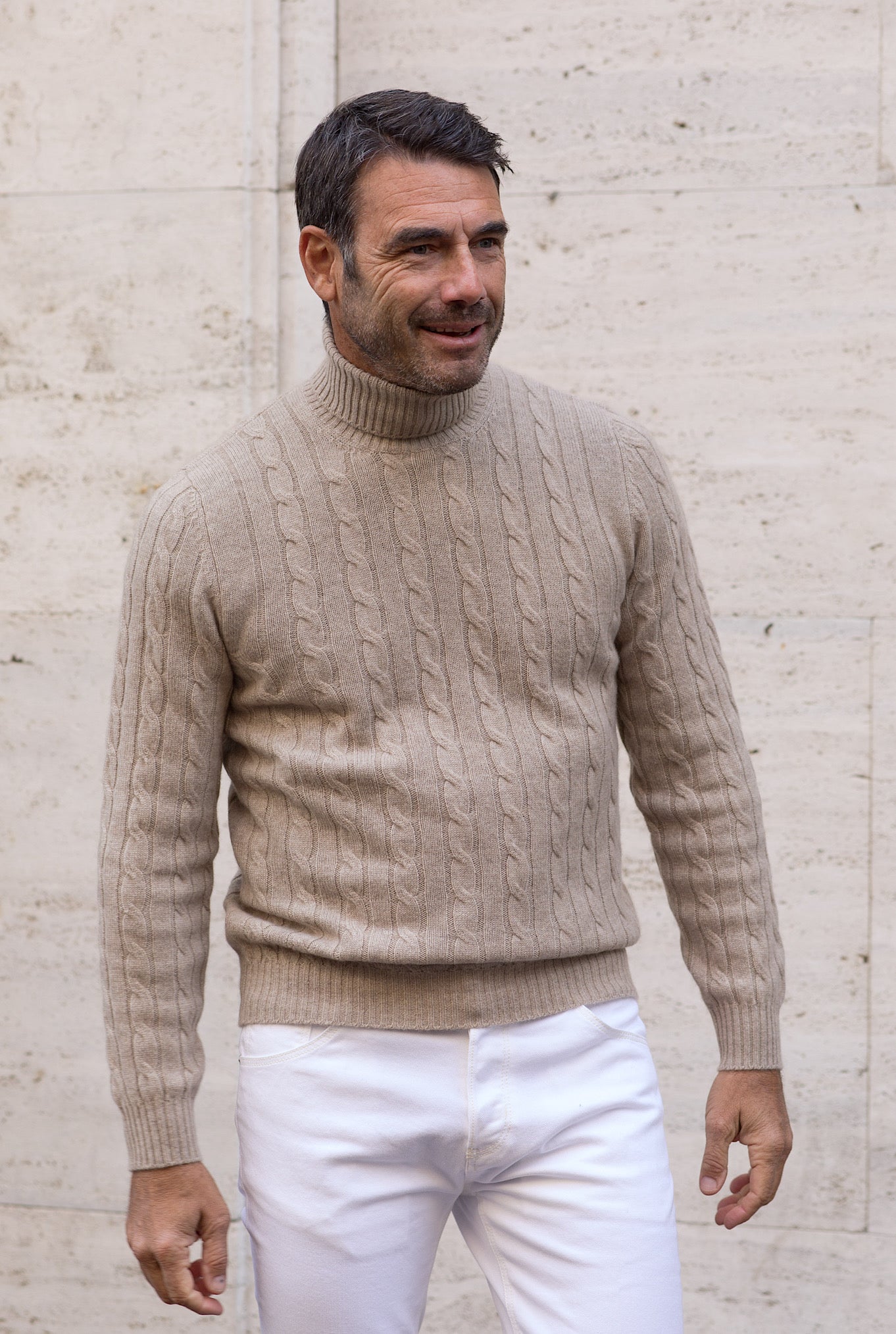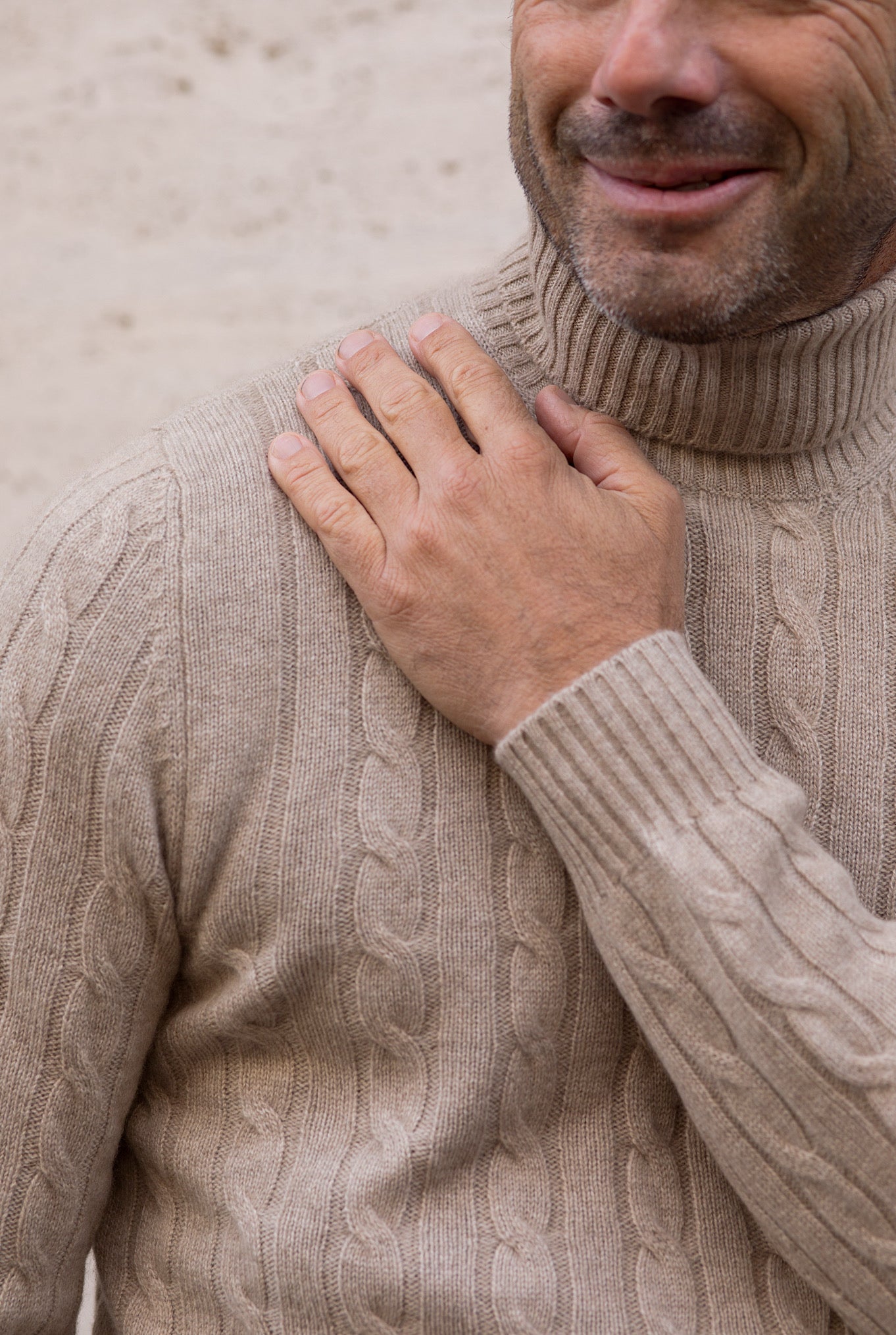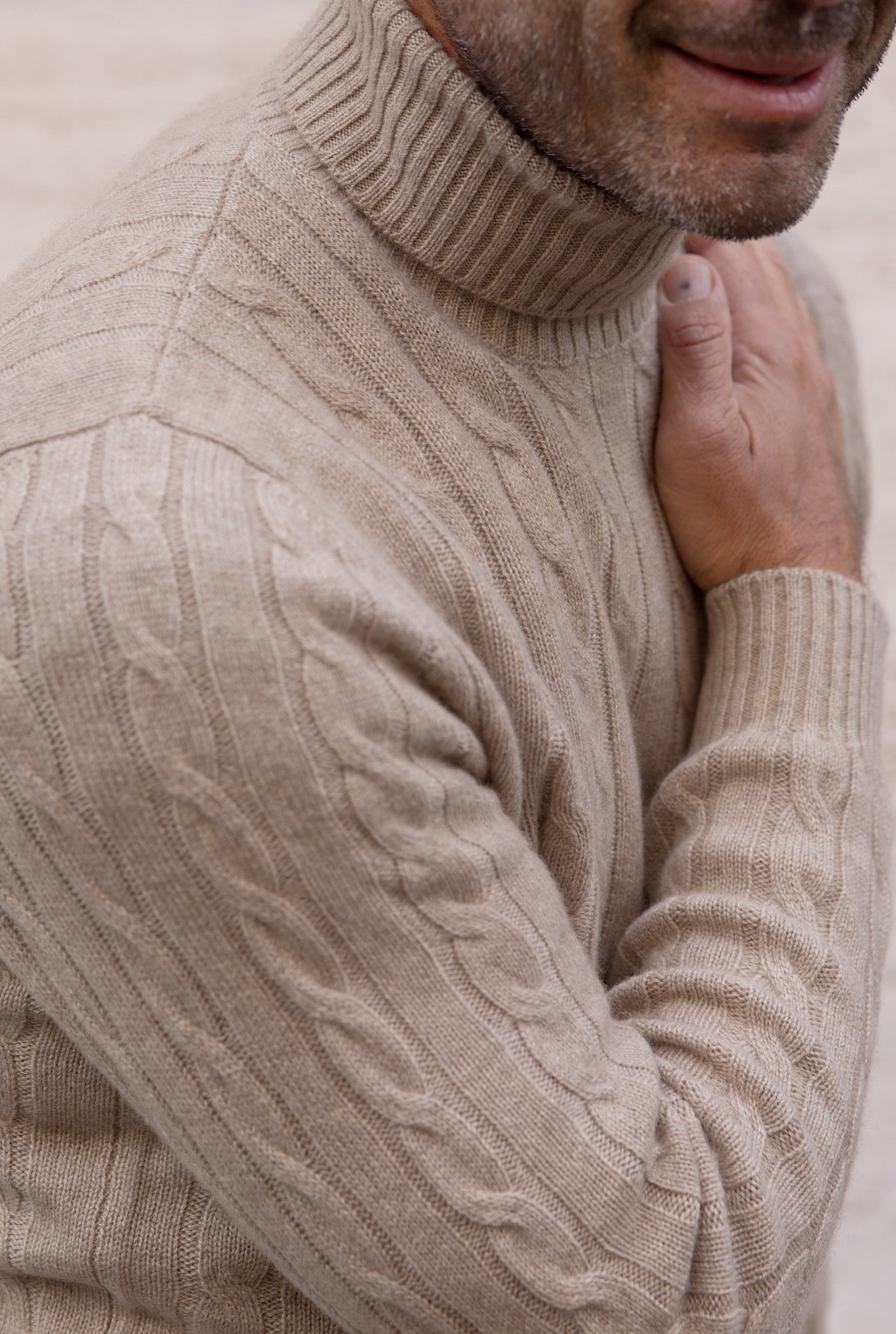 Beige Cashmere Cable Knit Turtleneck