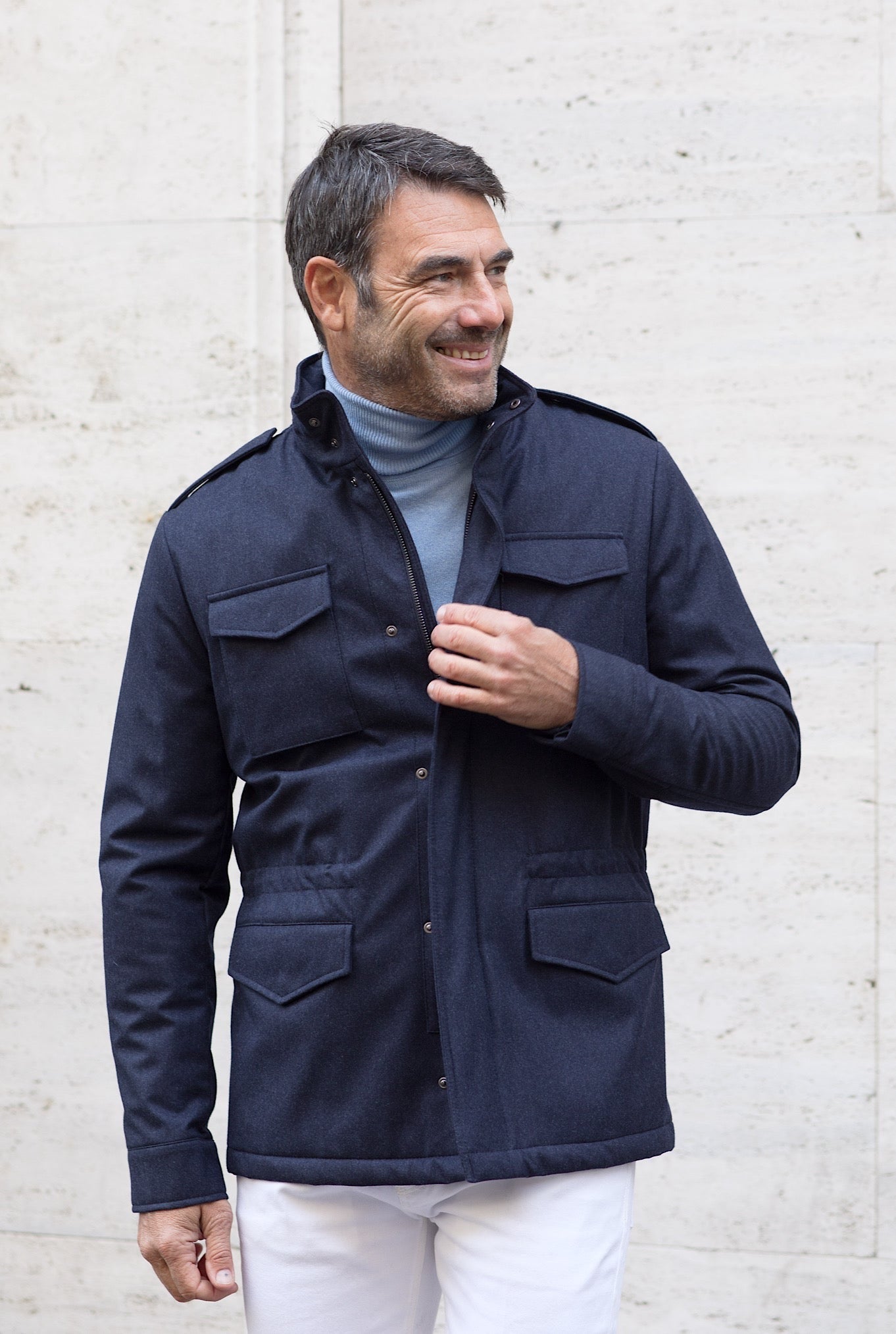 Field Jacket Vitale Fabric Barberis Canonico Blue