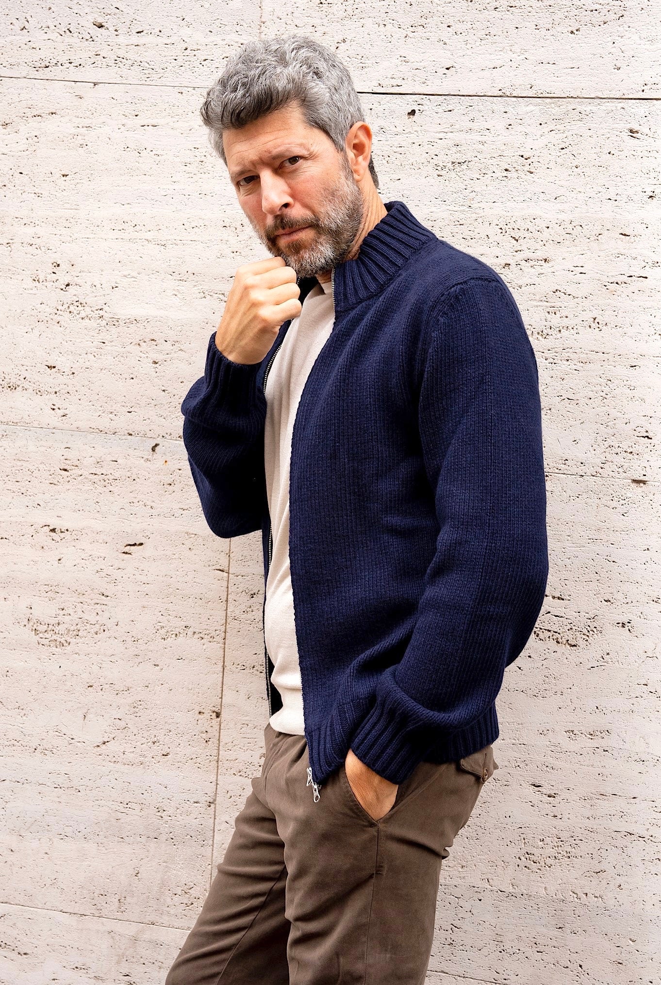 or 3 interest-free installments from €270,0 EUR 🛈Navy Blue Cashmere Bomber Sweater