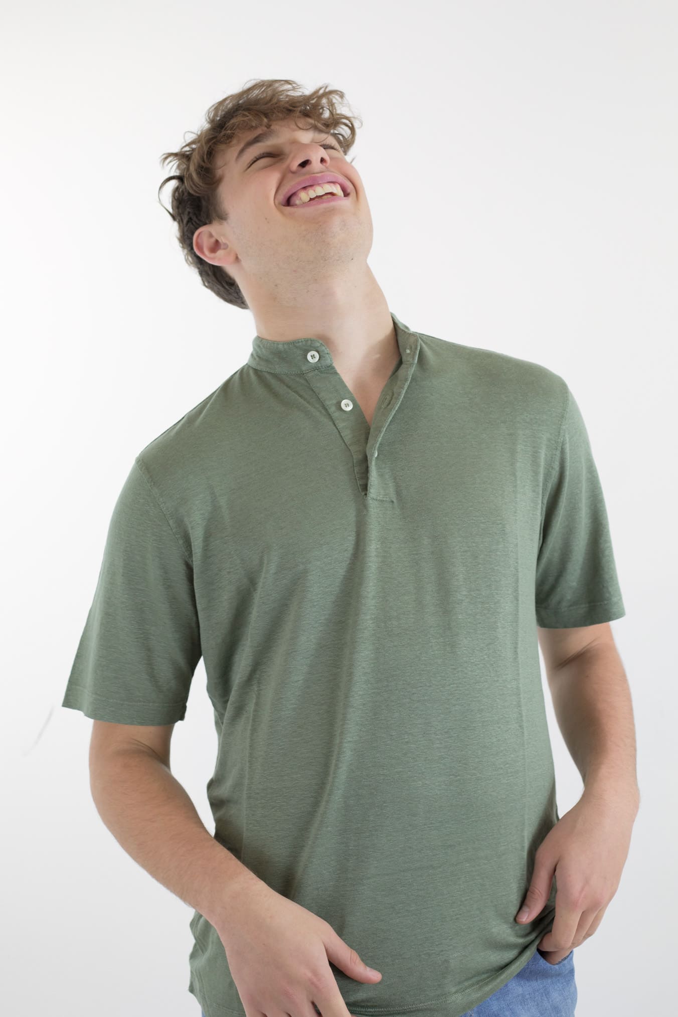 GUARINO Korean Polo Shirt MC Jersey Green Linen