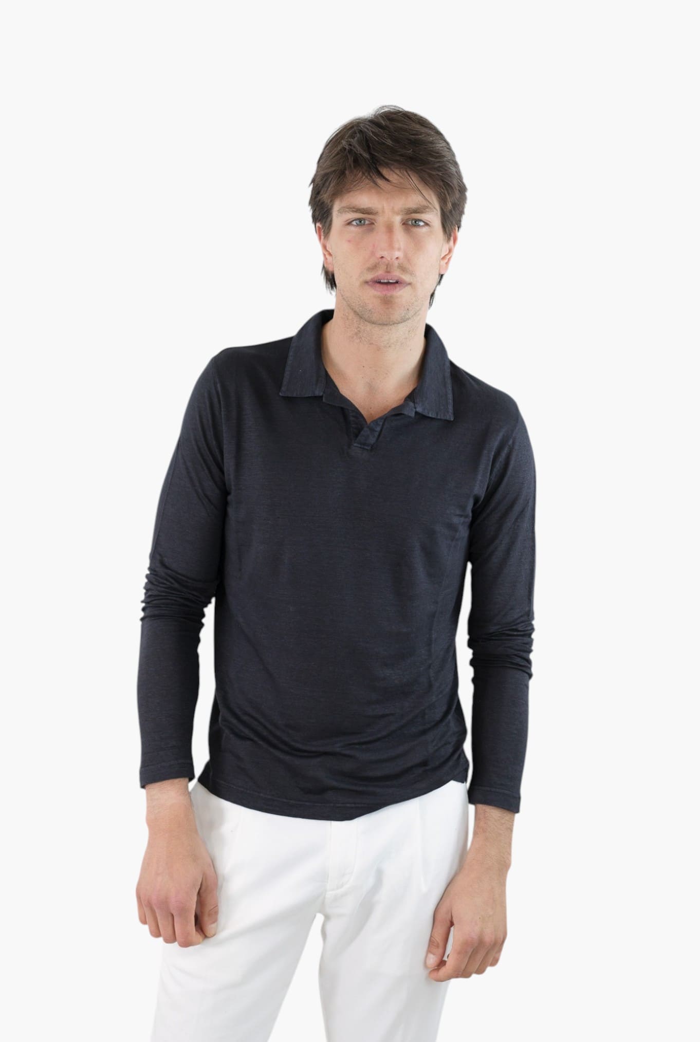 The deep and versatile blue shade makes this polo extremely easy to match: perfect with linen trousers, light chinos or soft denim. Designed for the man who loves spontaneous and material elegance, it is an essential piece in any Mediterranean-inspired summer wardrobe. Made in Italy.Composition 97% Linen 3% Elastane