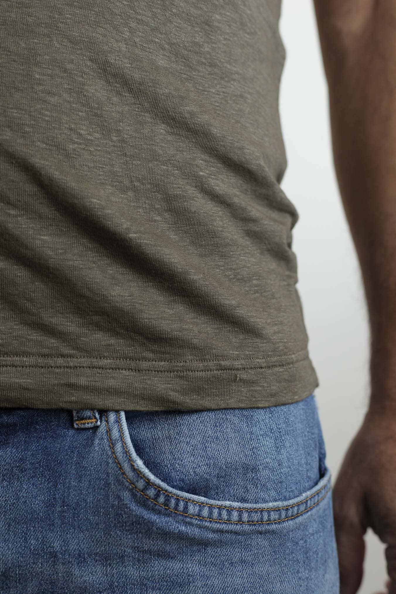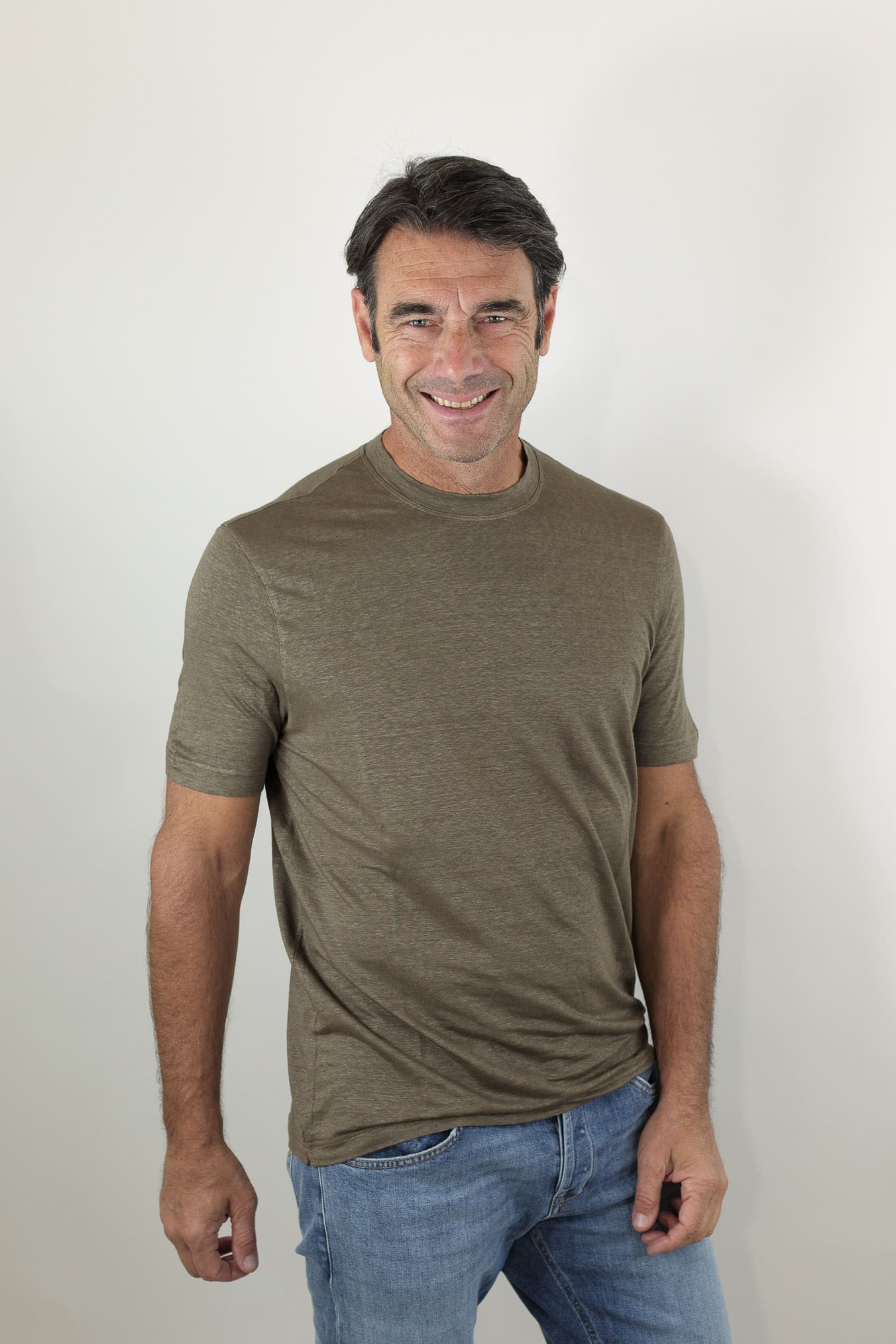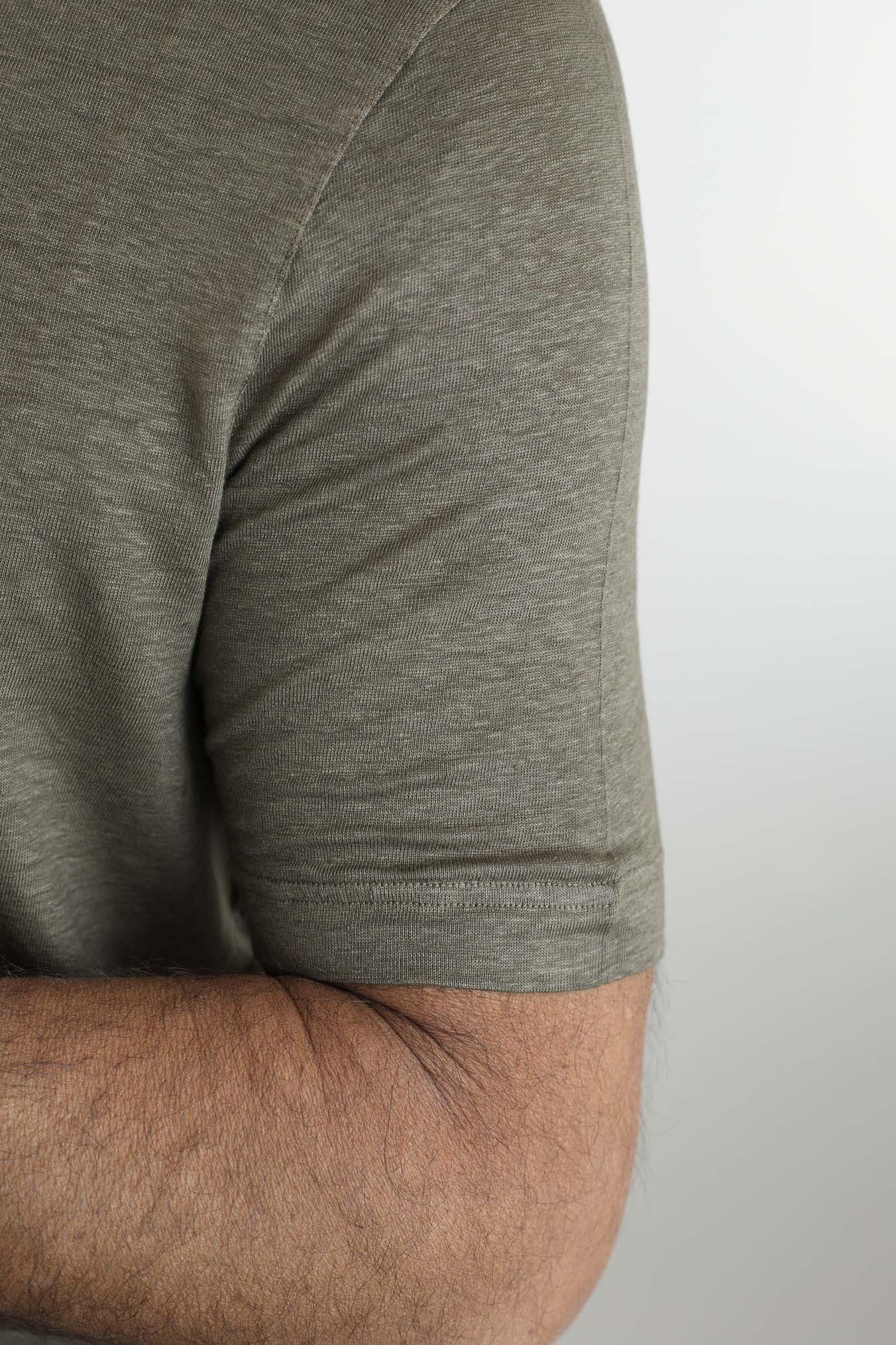 The sober and refined dove grey shade makes this t-shirt perfect to pair with chinos, light denim or Bermuda shorts for casual, sporty but refined looks. An ideal garment for the man who wants to combine functionality, lightness and refinement on every summer occasion. Made in Italy. Composition 97% Linen 3% Elastane