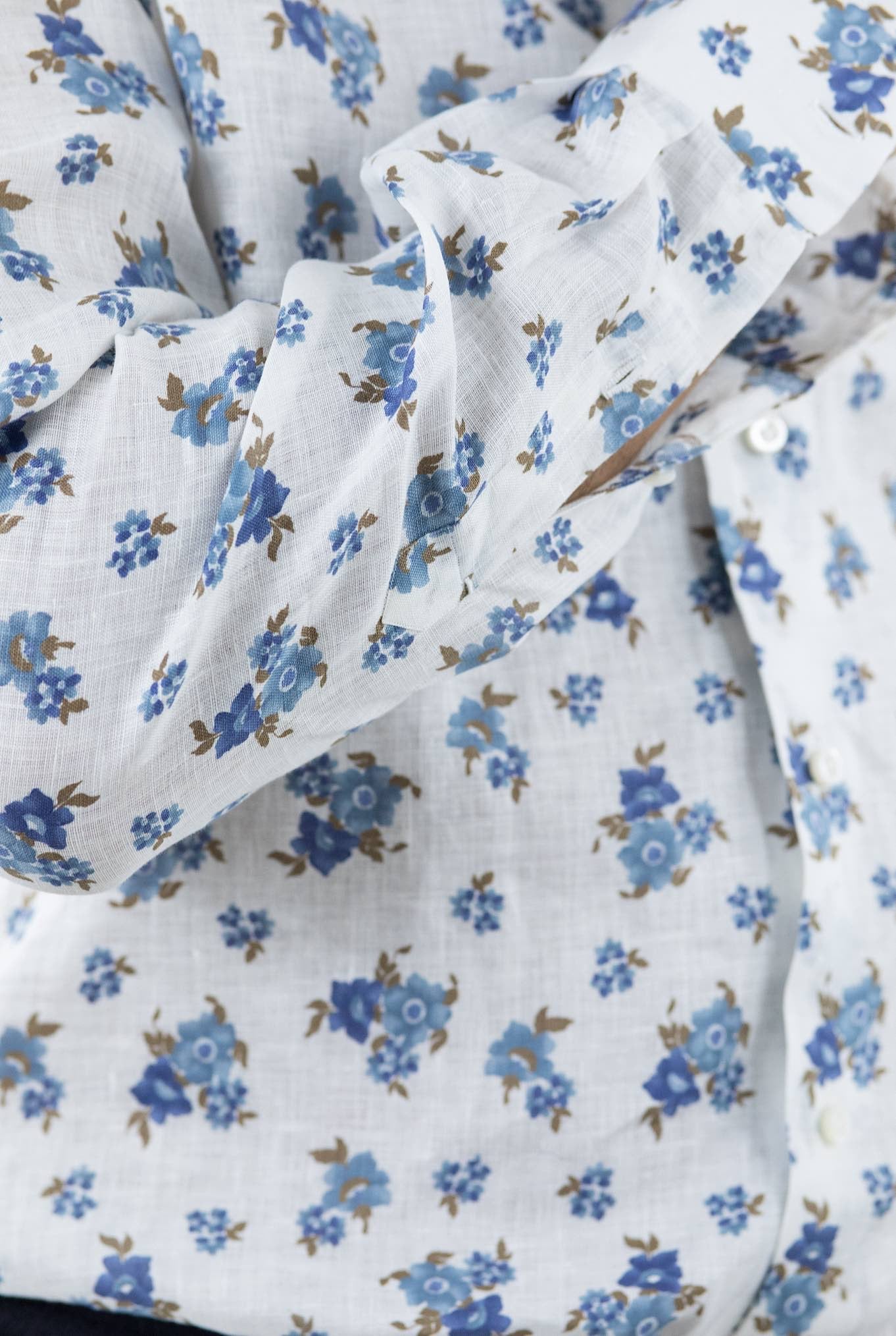 ISAIA Linen Patterned Shirt White/Blue/Brown