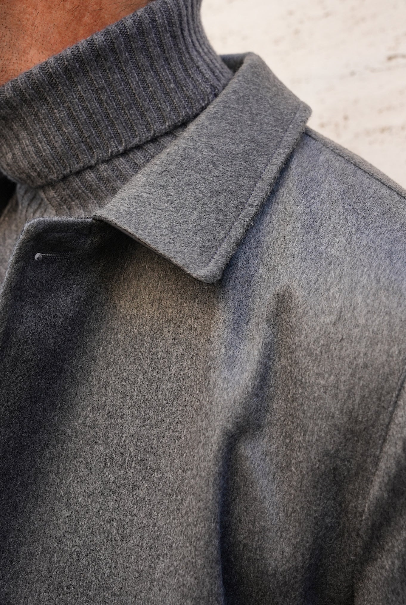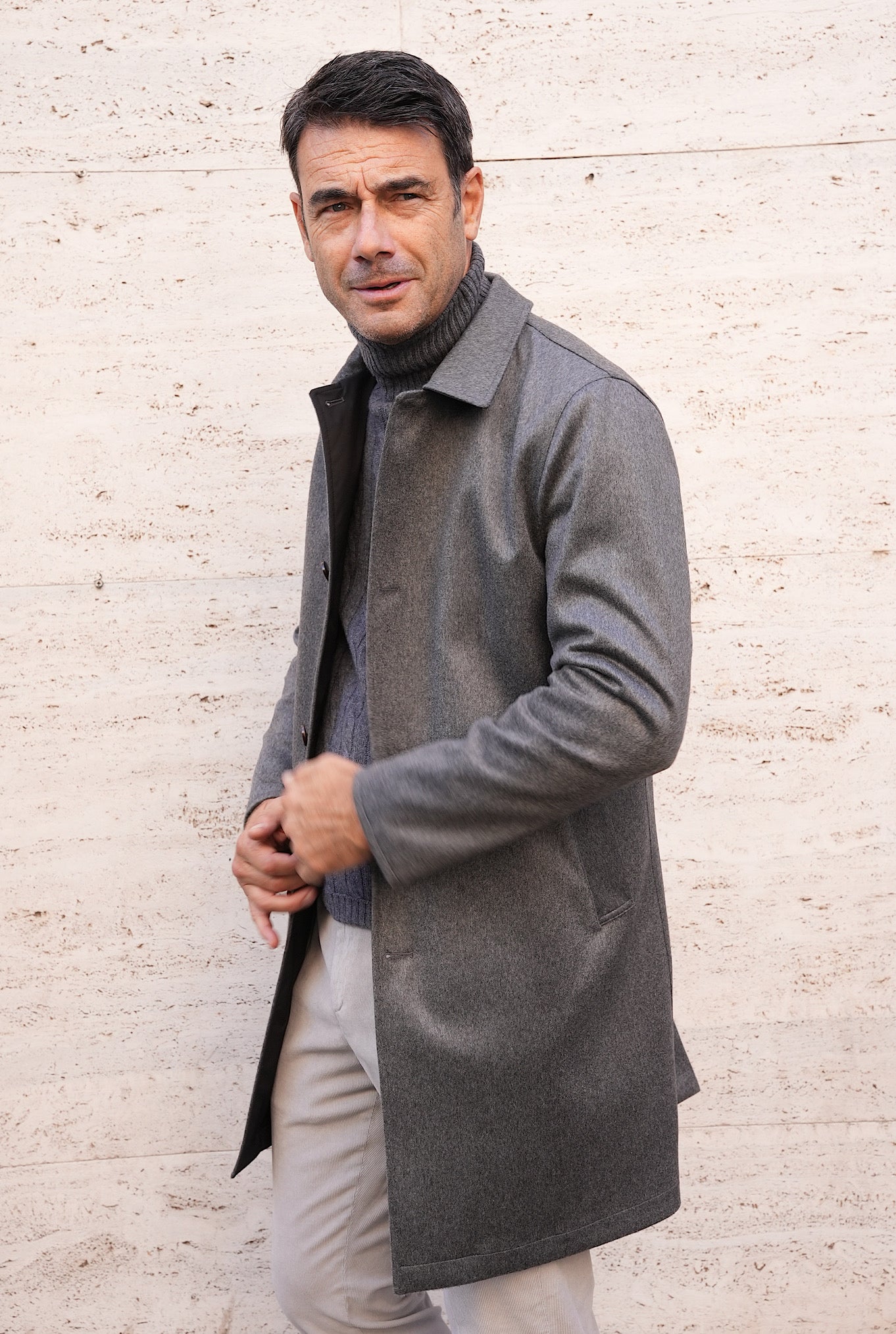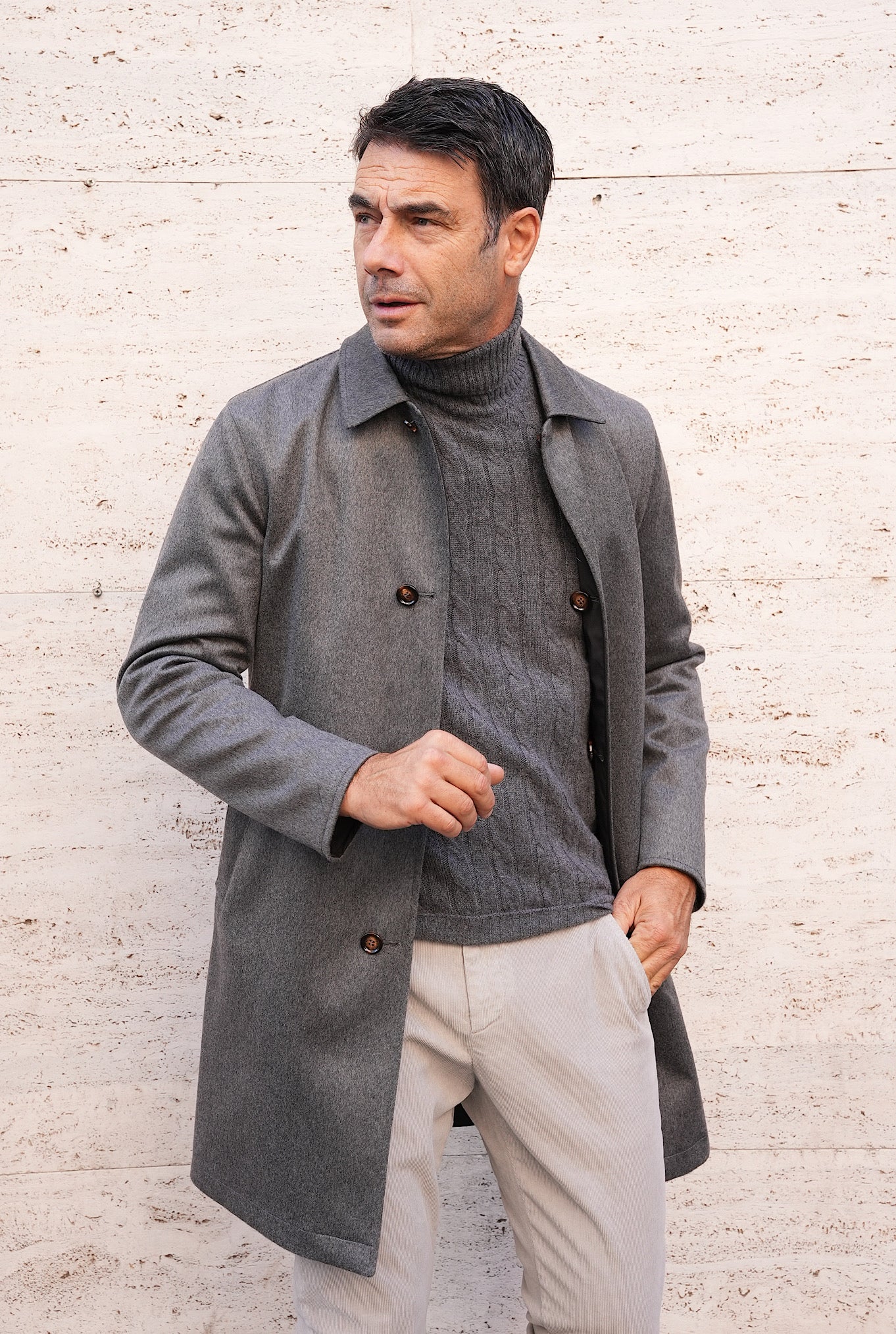 Storm System protects from external agents and keeps the body in conditions of absolute well-being. The hydrophilic membrane, applied to the back of the fabric, through a lamination process designed and created by Loro Piana, is micromolecular, without pores. It is water resistant yet perfectly breathable, light, elastic and resistant.