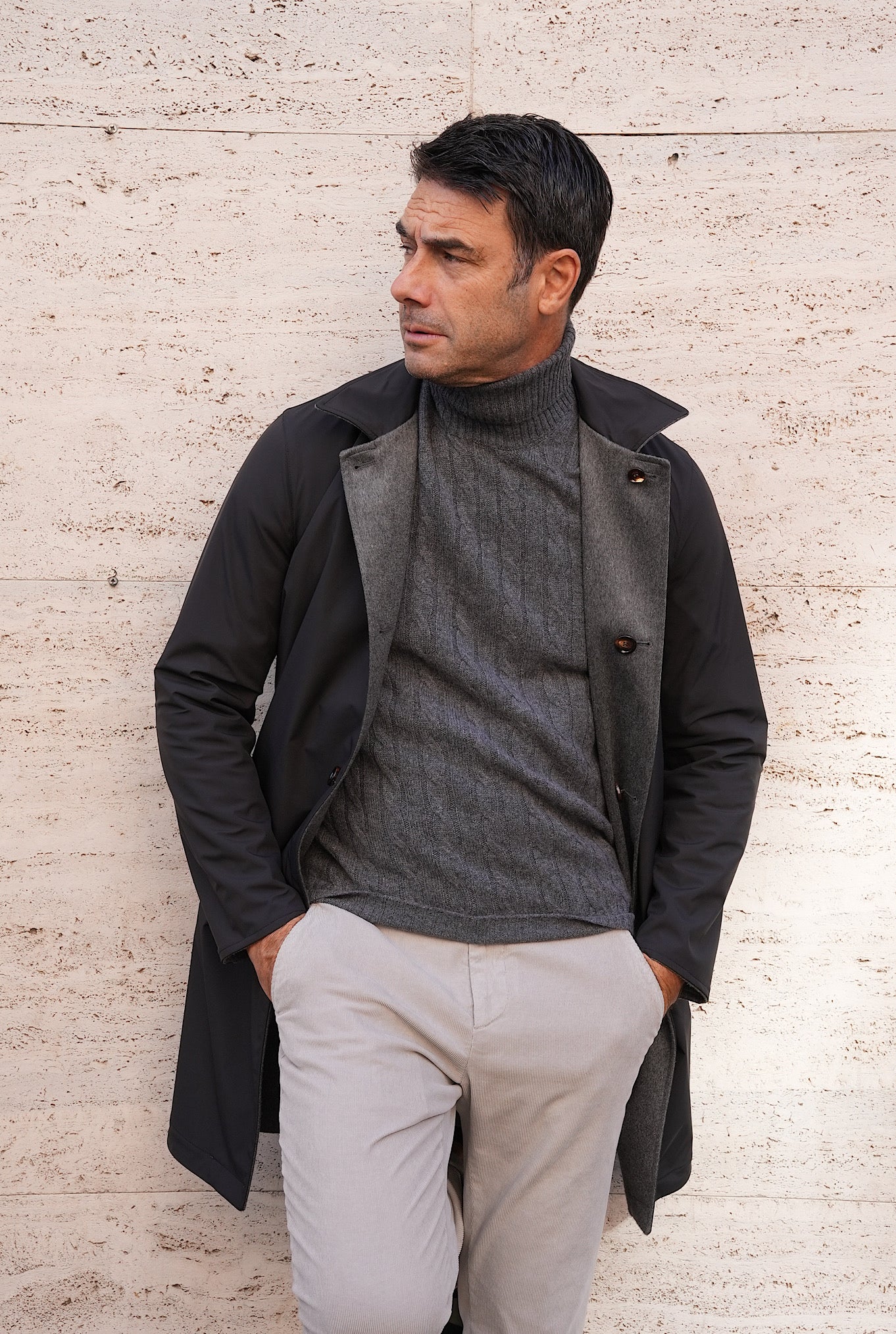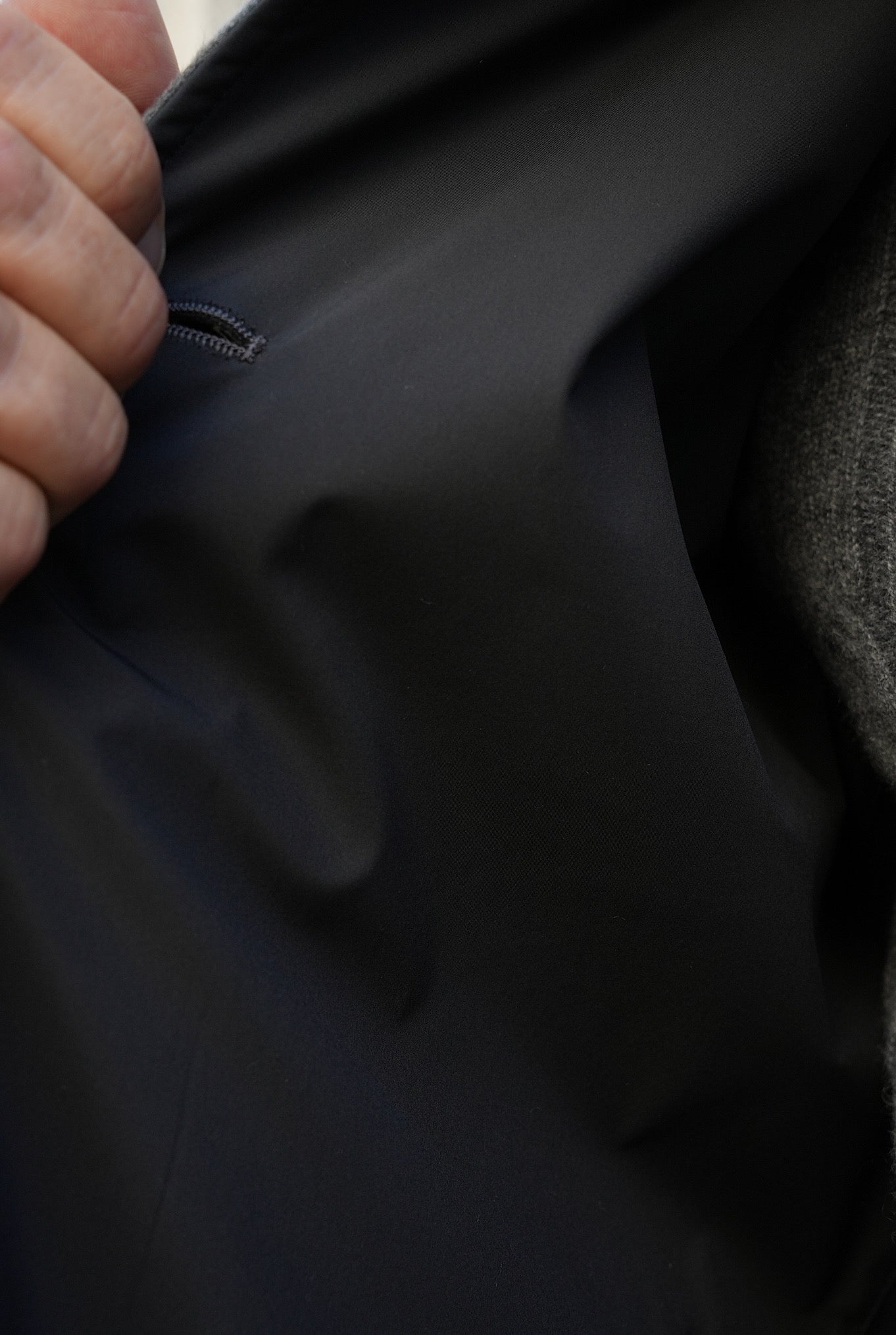 Storm System is an extraordinary generation of fabrics that combines the insulating and thermal properties of cashmere with protection from rain and wind.