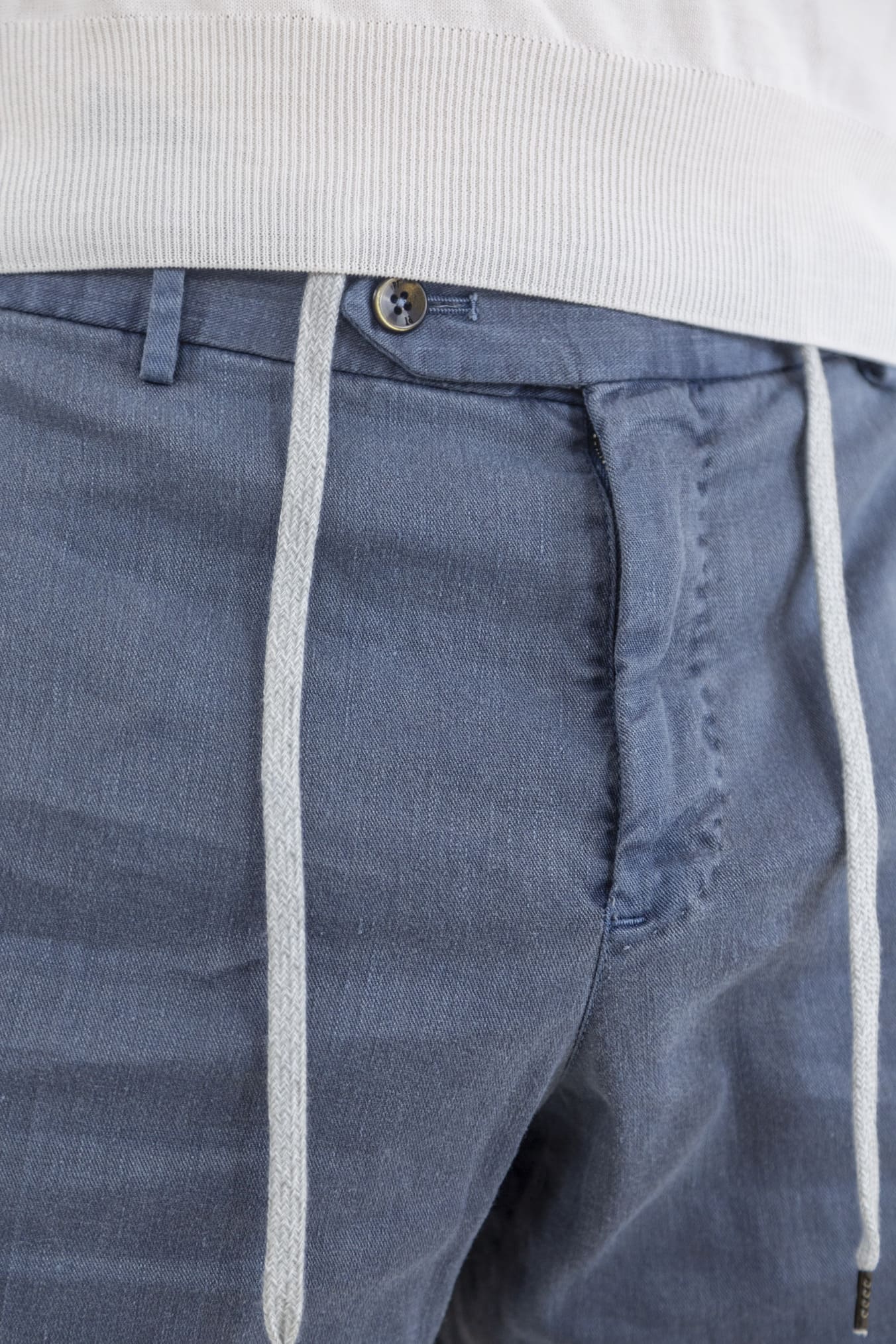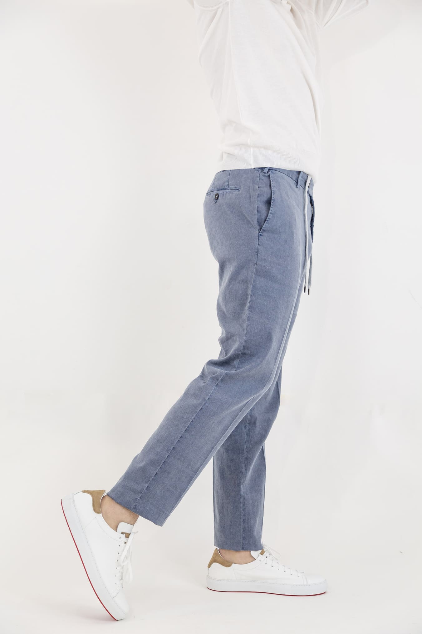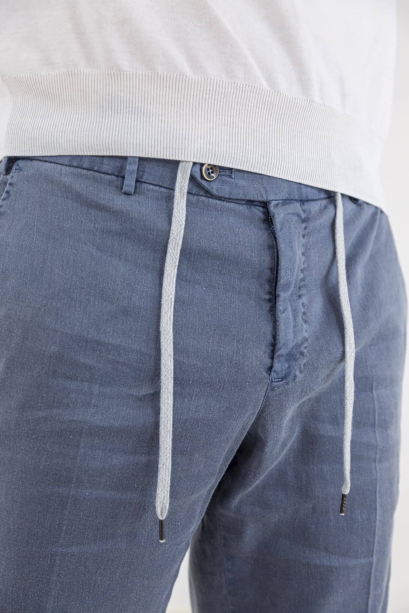 PT Denim Blue Linen and Cotton Trousers with Removable Drawstring