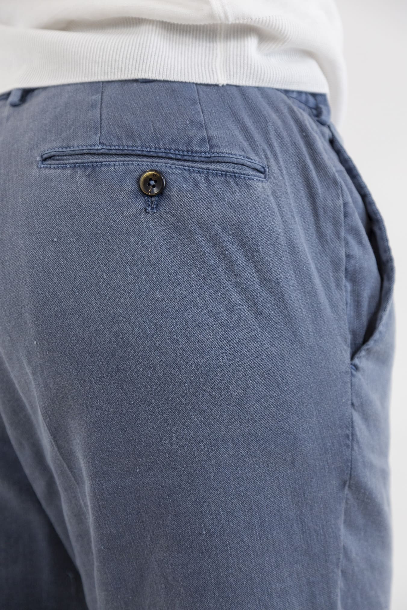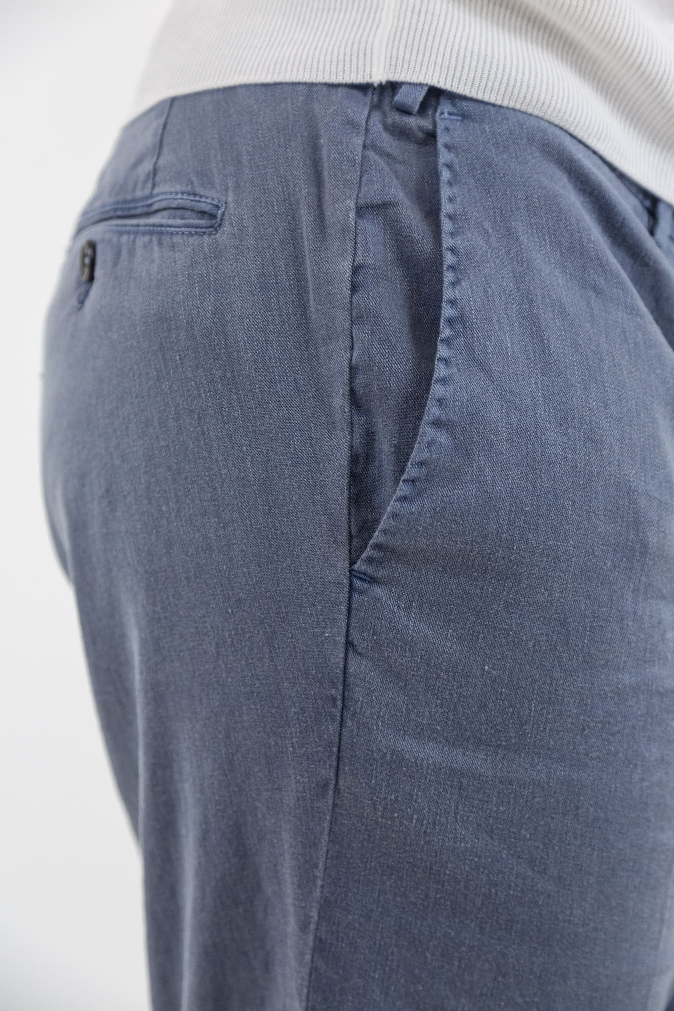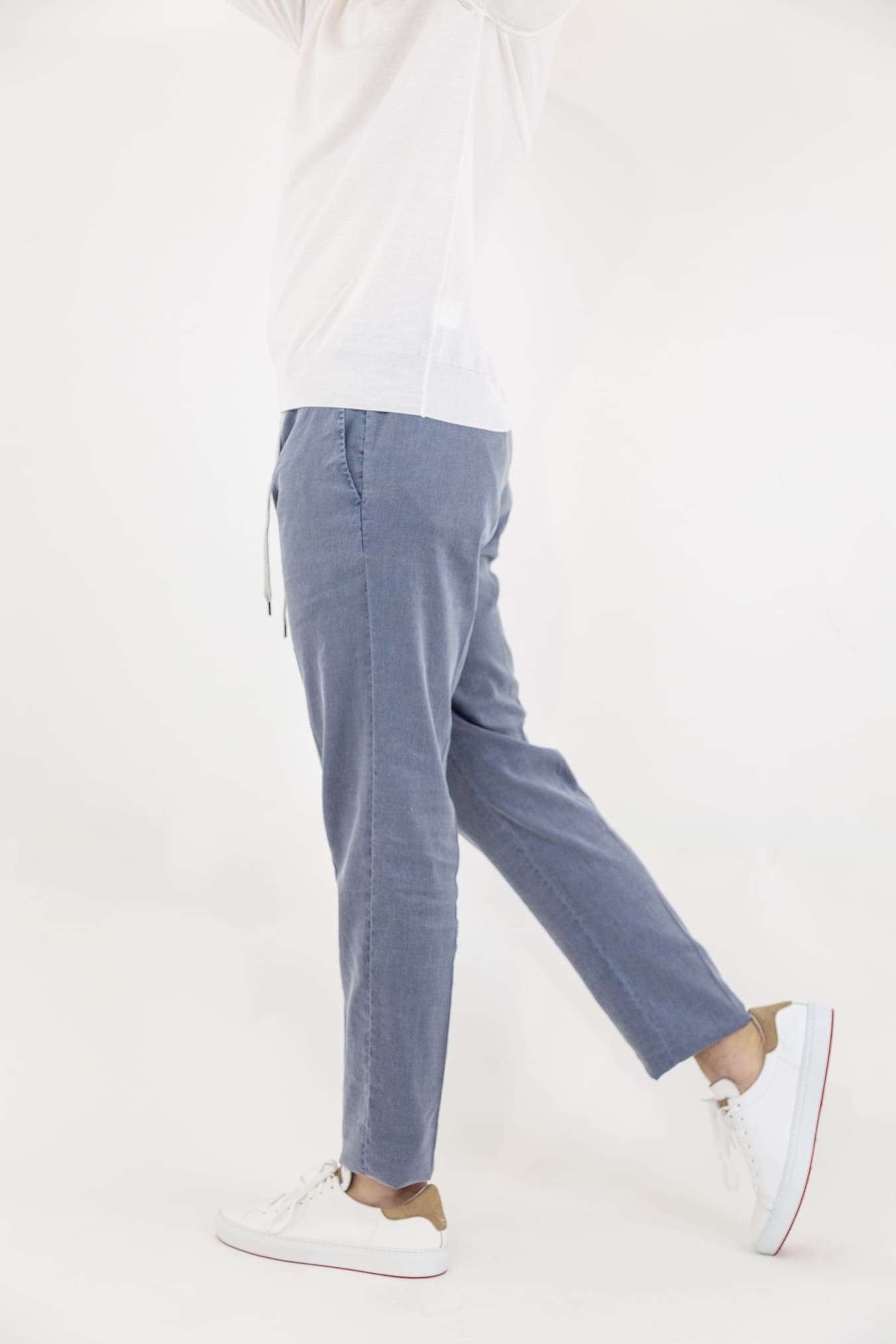 PT Denim Blue Linen and Cotton Trousers with Removable Drawstring
