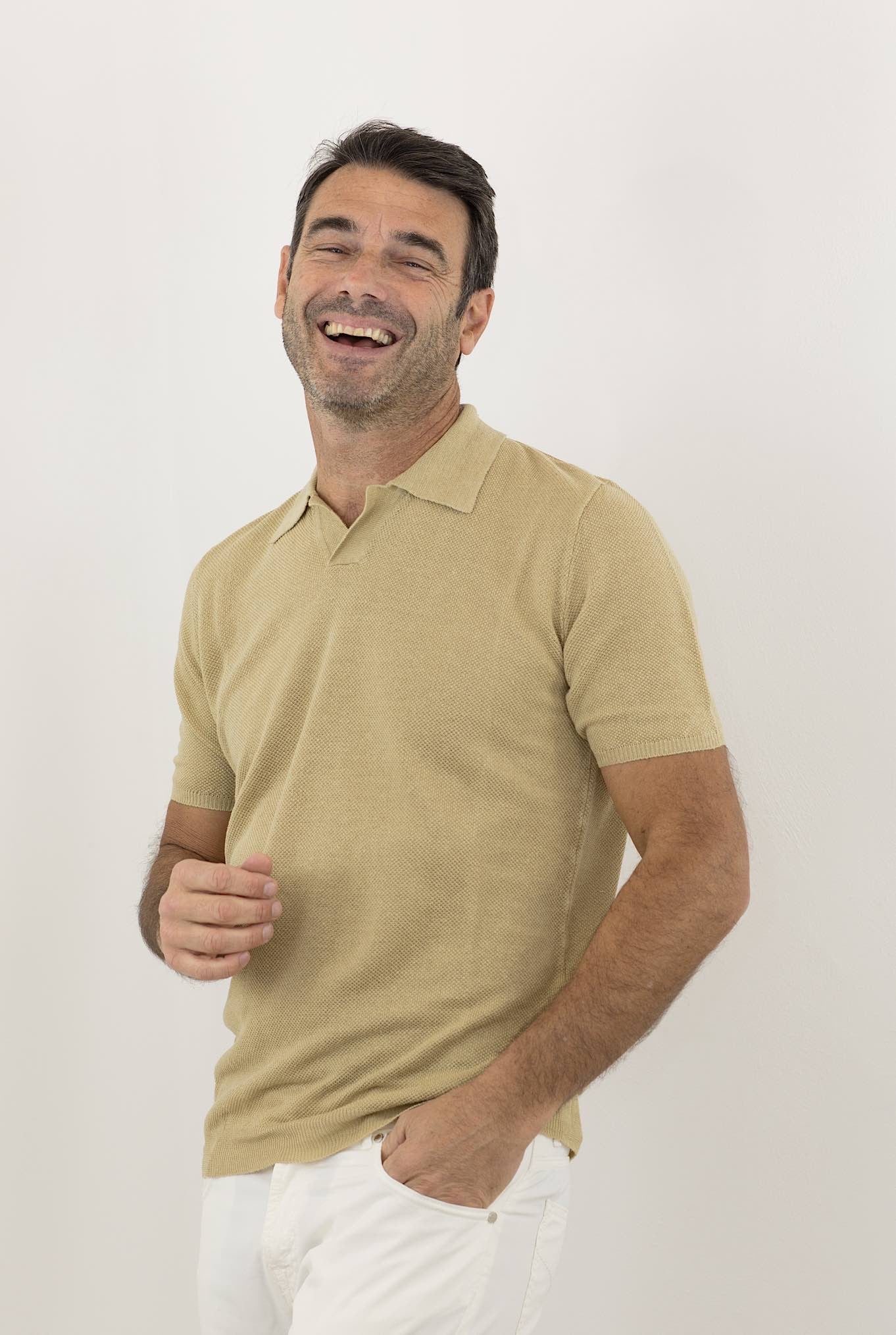 or 3 interest-free installments from €93,33 EUR 🛈ROBERTO COLLINA Short Sleeve Polo Shirt Linen Honeycomb Beige
