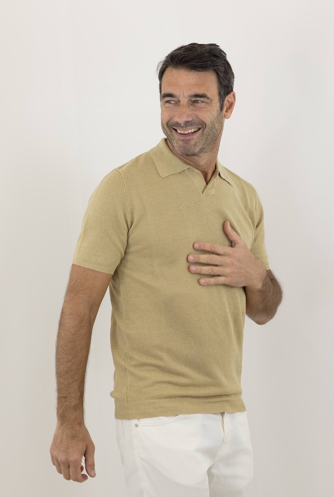 ROBERTO COLLINA Short Sleeve Polo Shirt Linen Honeycomb Beige