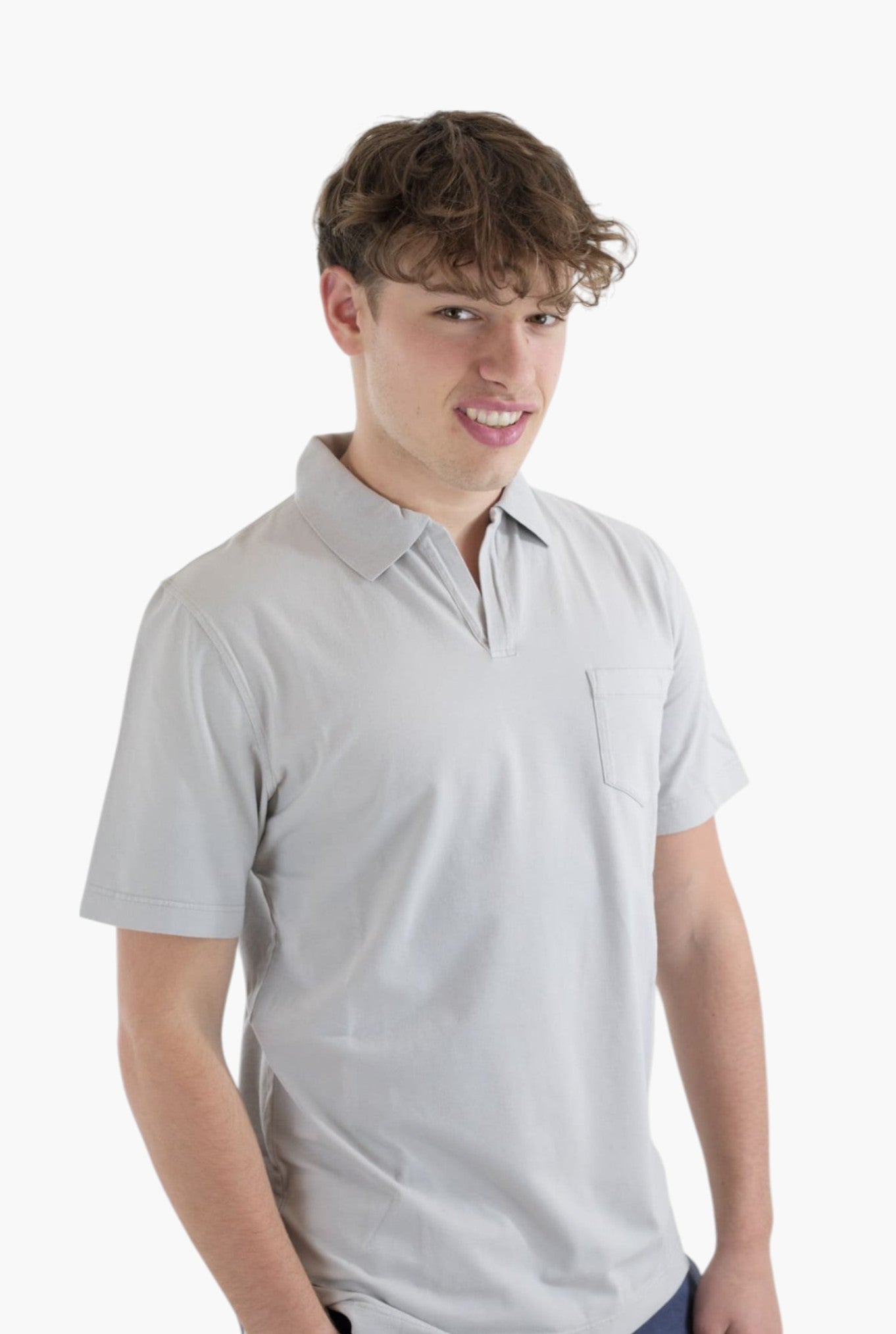 • Ribbed polo-style collar.