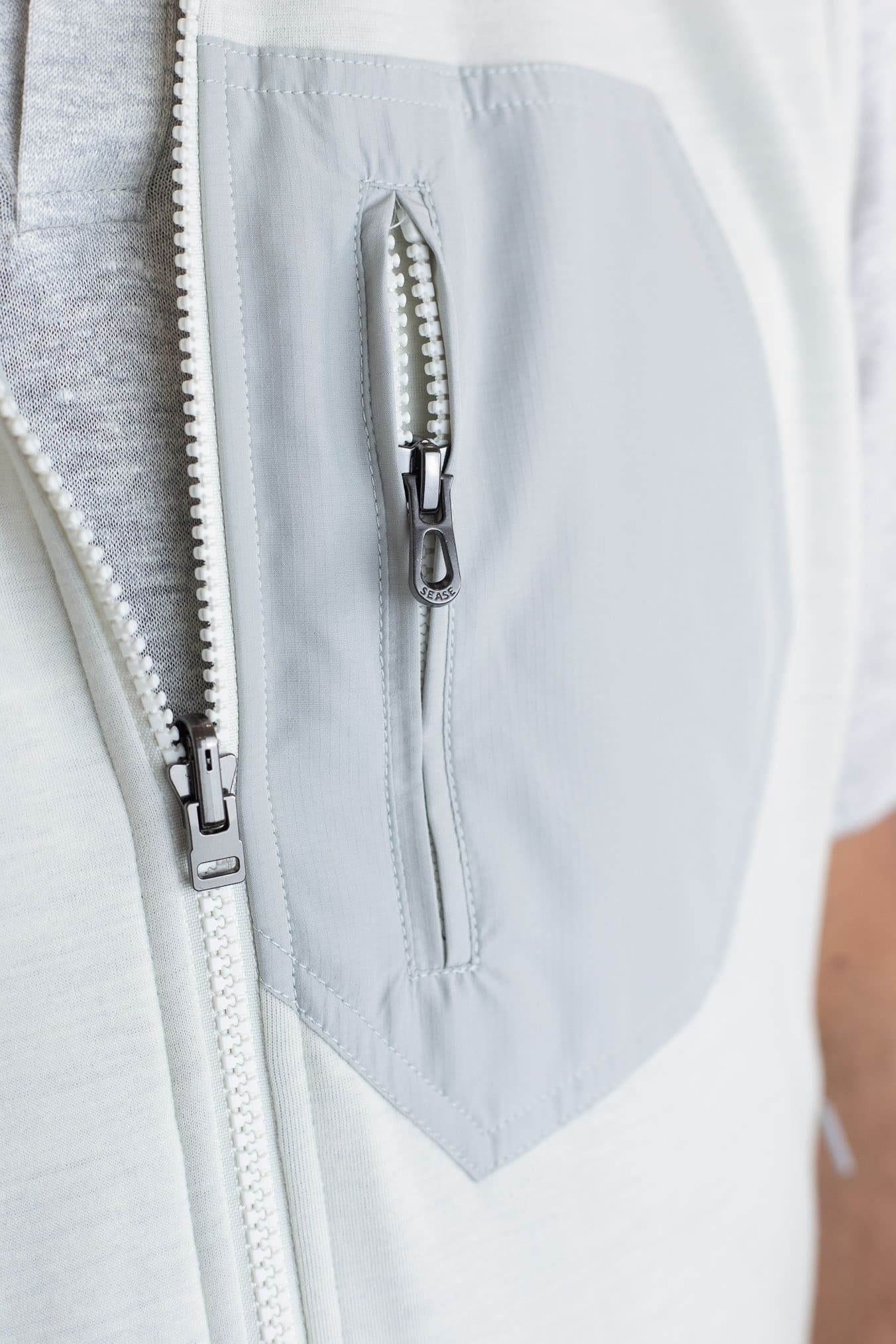 The Reversible Padded Explorer Vest White by Sease was created for those looking for functionality, versatility and style in a single garment. Its reversible construction allows it to be adapted to different contexts: on one side the technical wool and nylon jersey, on the other the recycled polyester ripstop fabric, designed to guarantee protection and resistance.Thermal comfort and dynamic style
