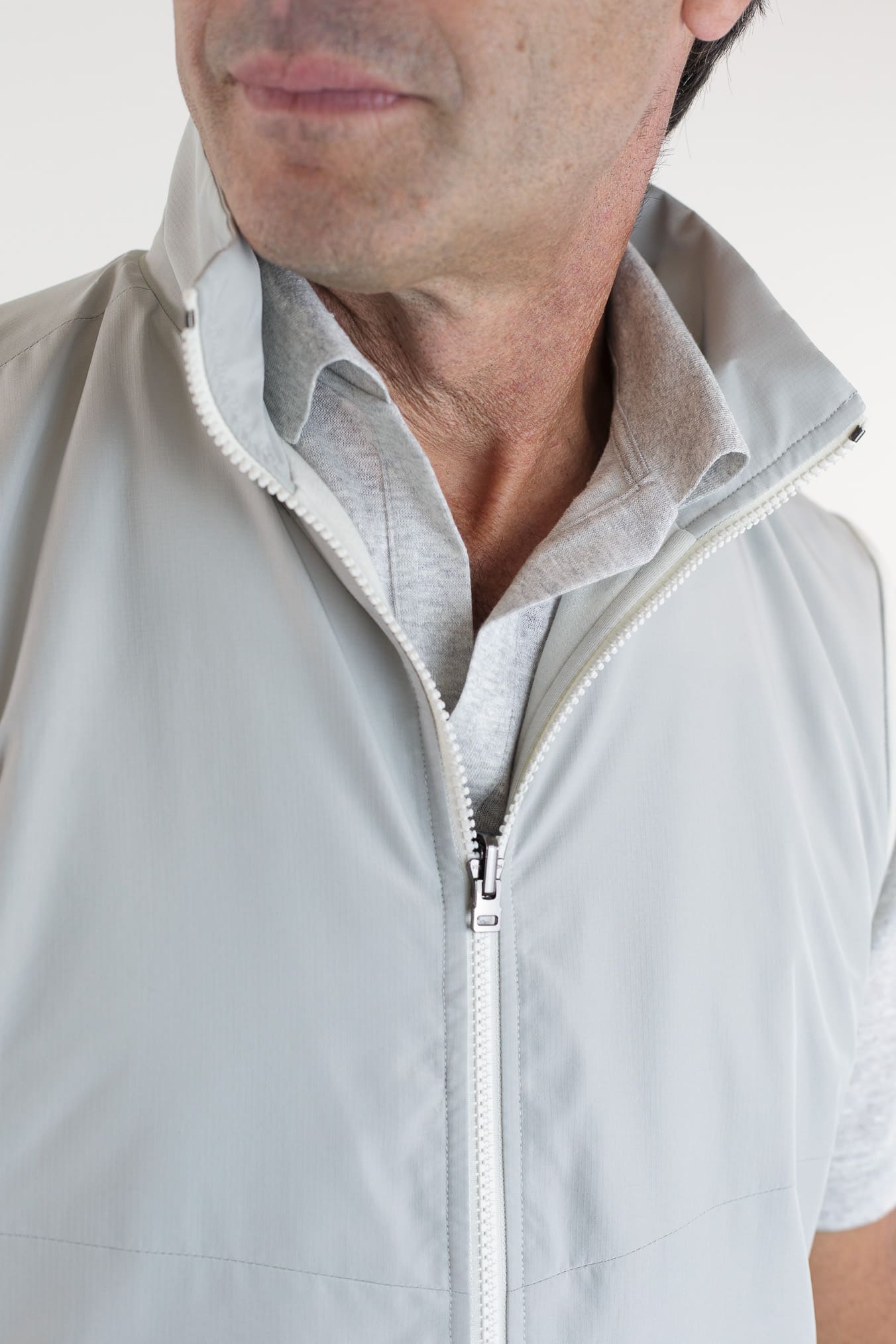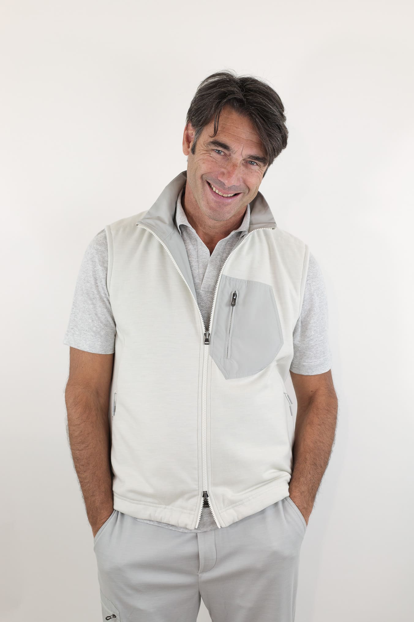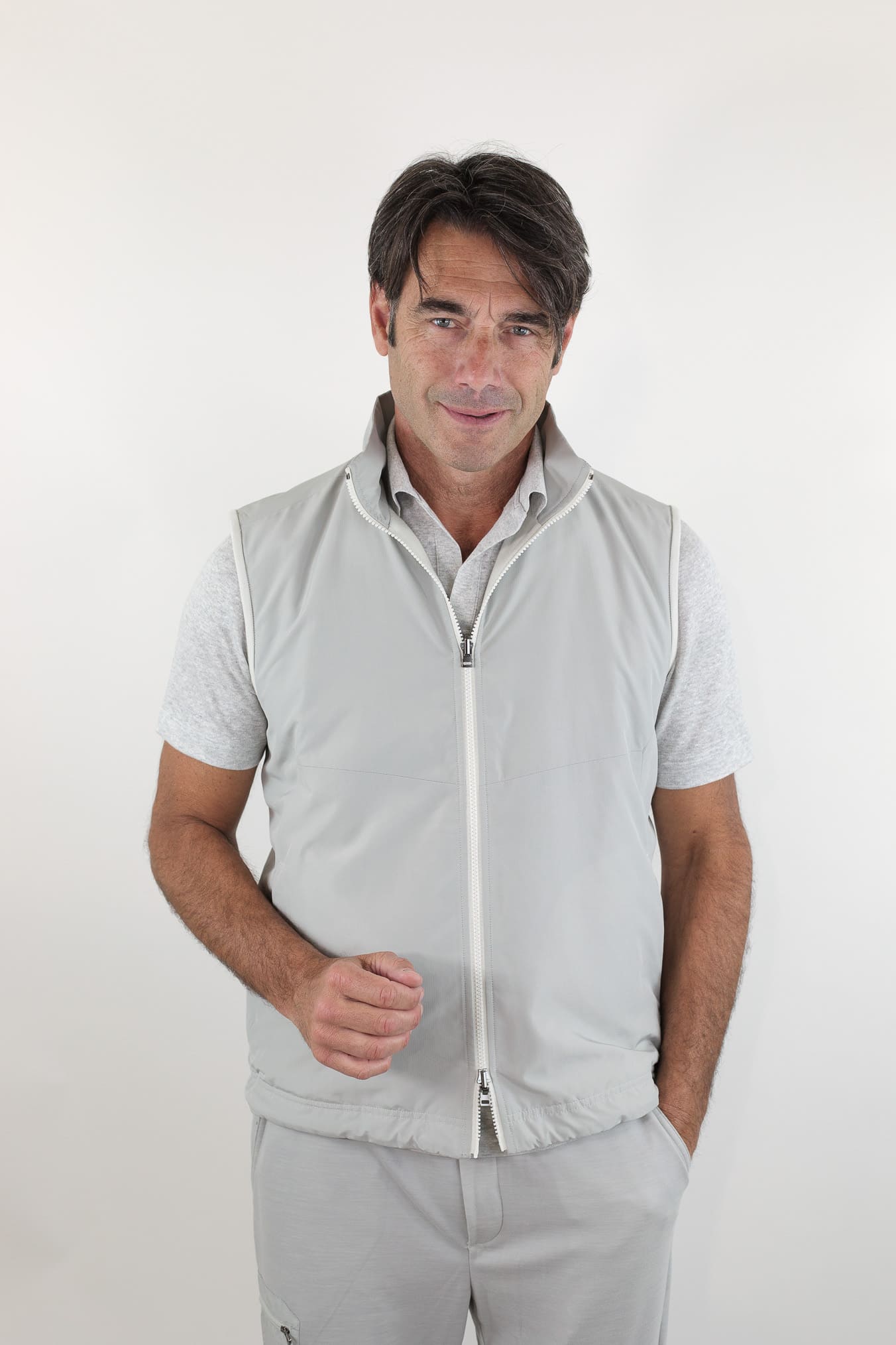 The polyester wadding padding offers warmth without weighing you down, making this gilet perfect for accompanying daily movements or weekend adventures. The high collar protects from the wind, while the front closure with reversible zip and the internal and external pockets with invisible zip ensure practicality and formal cleanliness. With a regular fit and a minimal aesthetic, it is designed for the contemporary man who loves to live in style between nature and the city. Made in Italy.