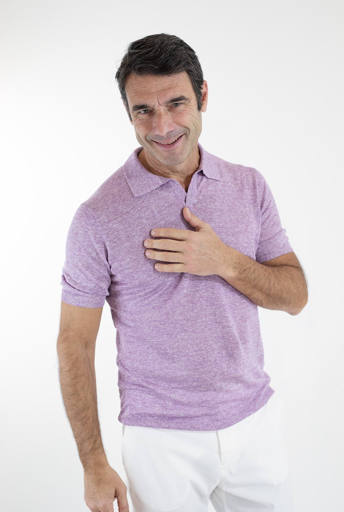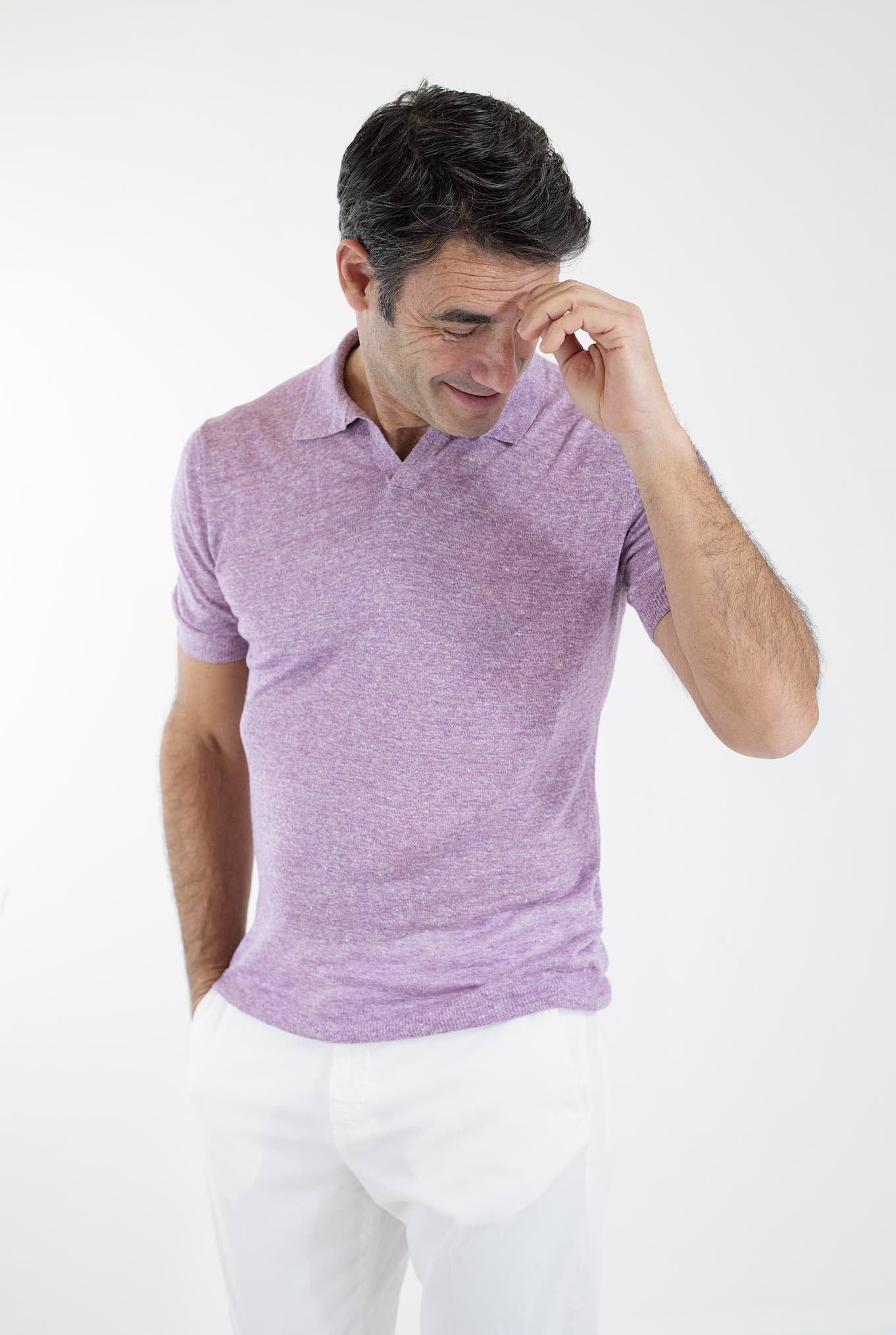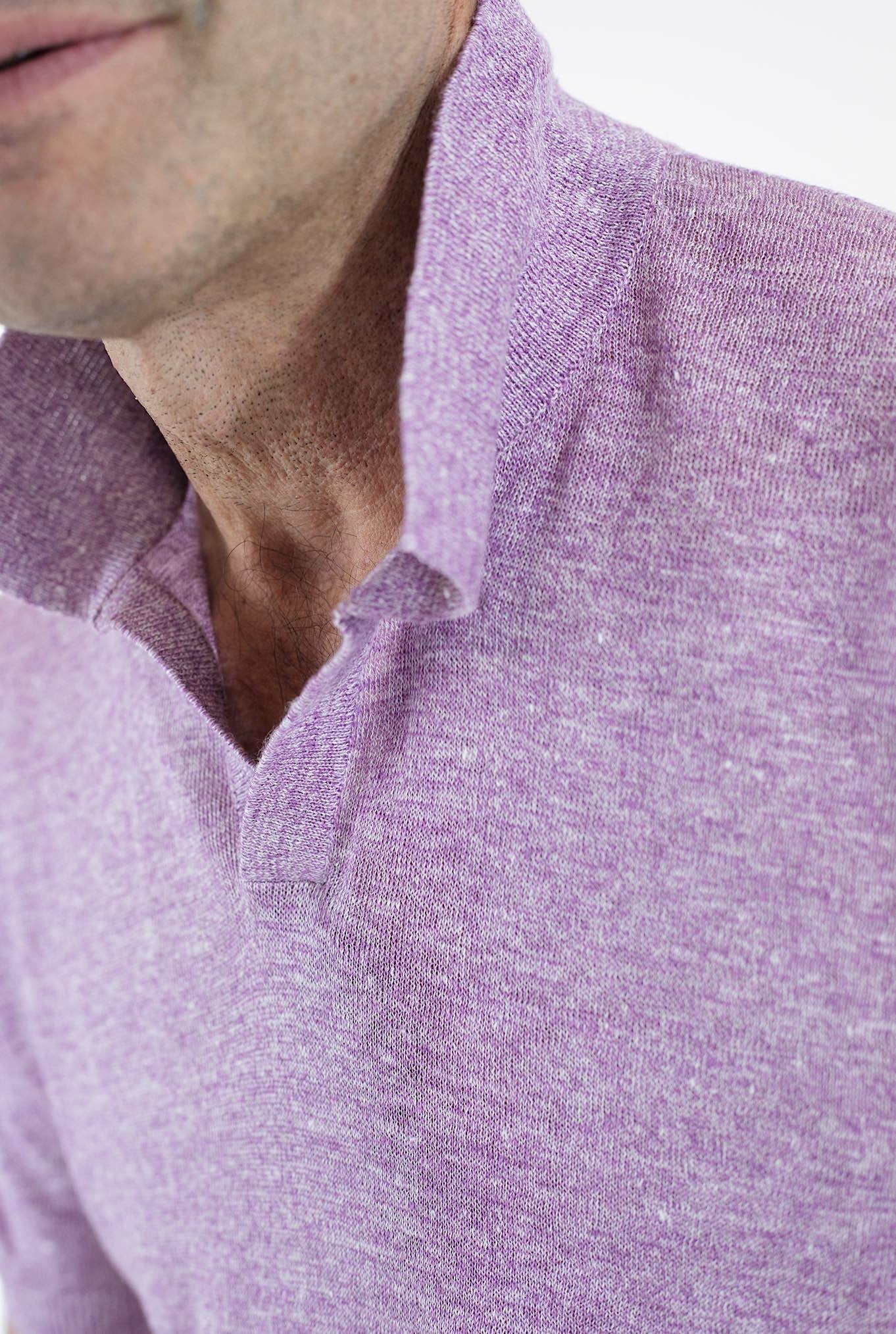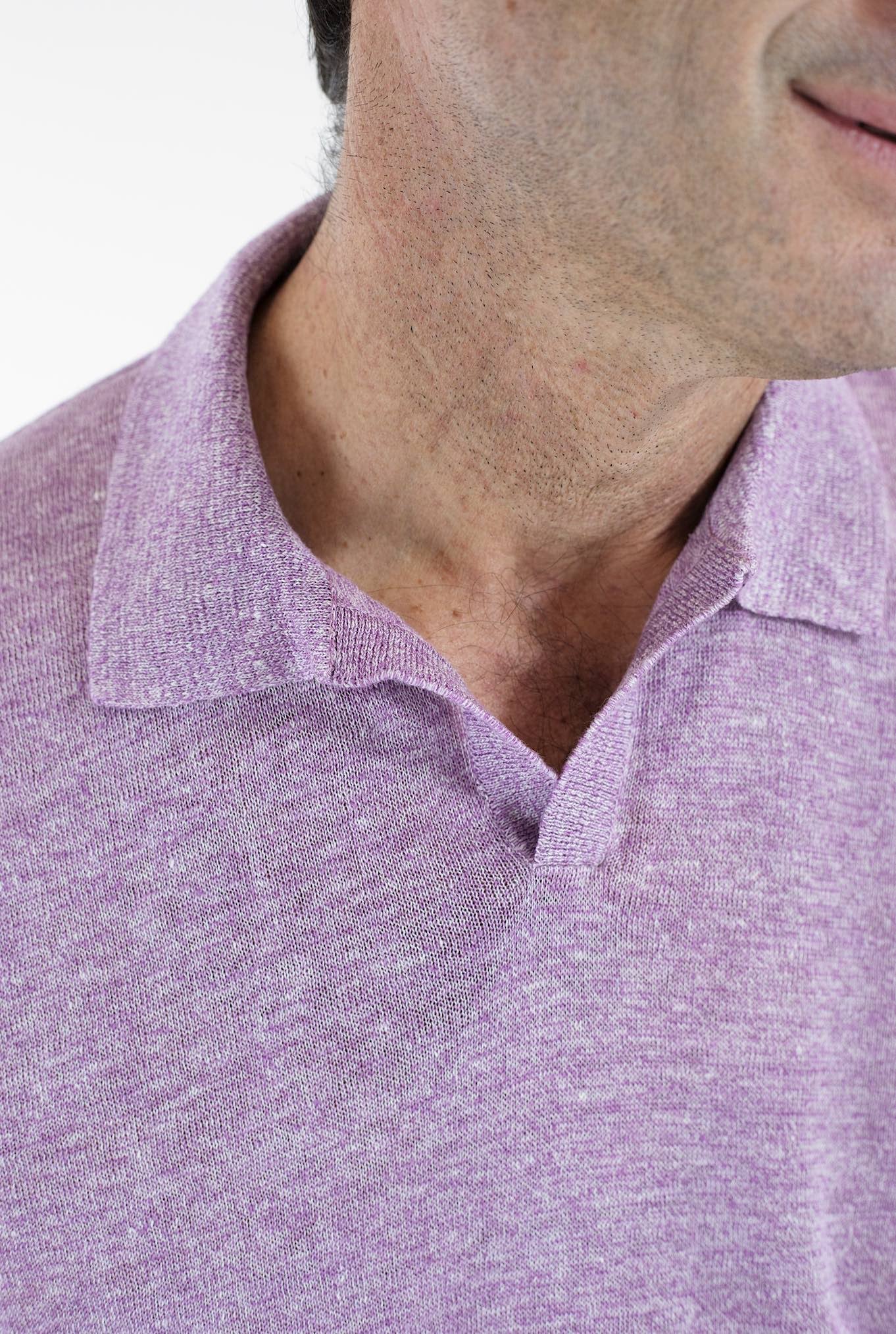 BARBA Polo Lino Senza Bottoni Lilla Mélange