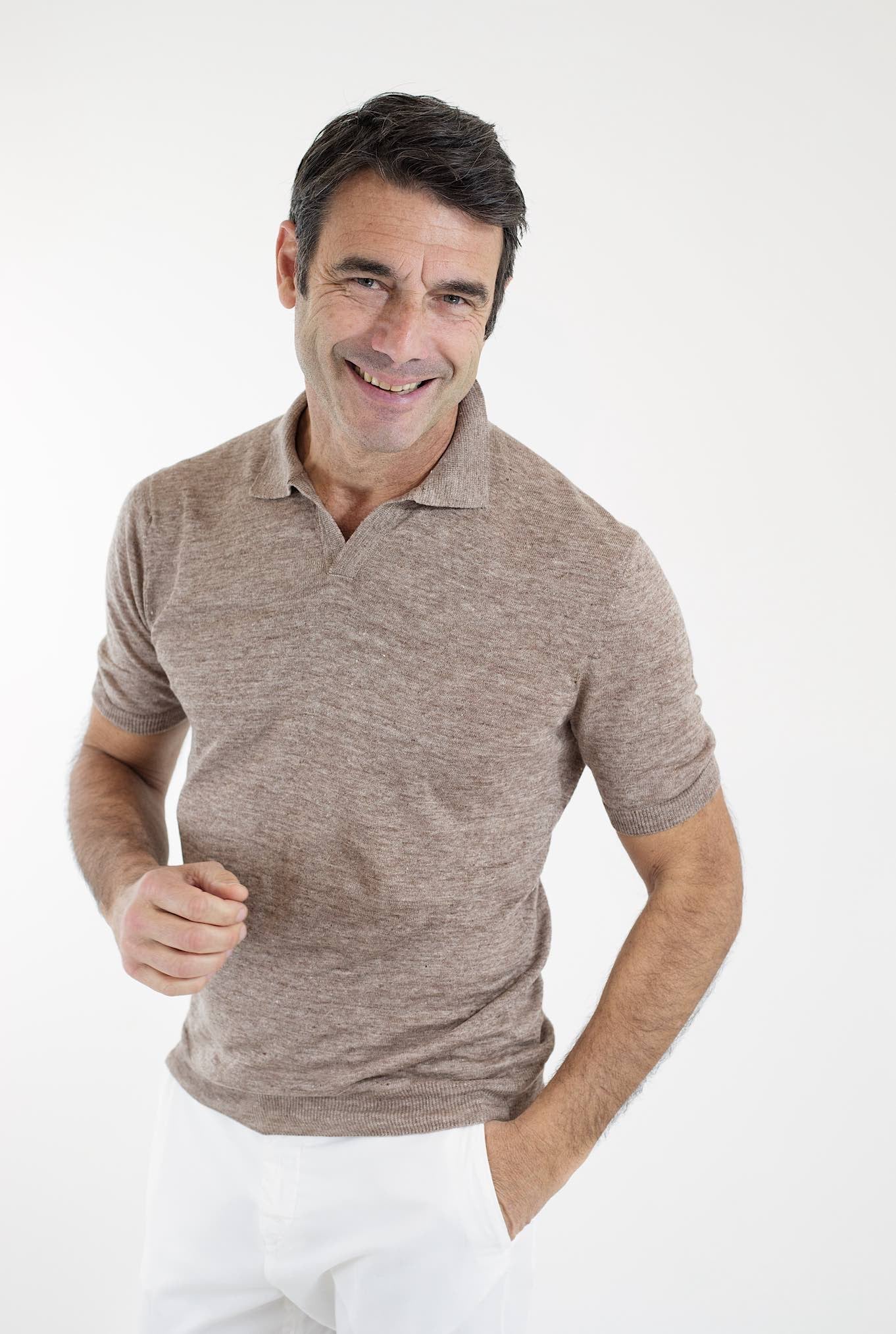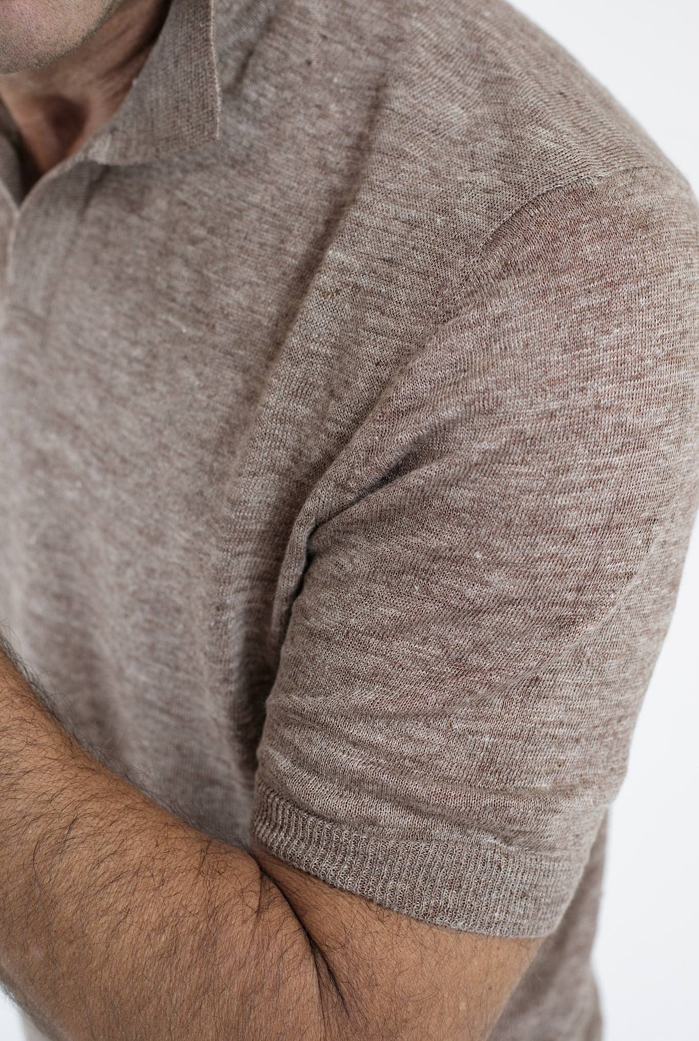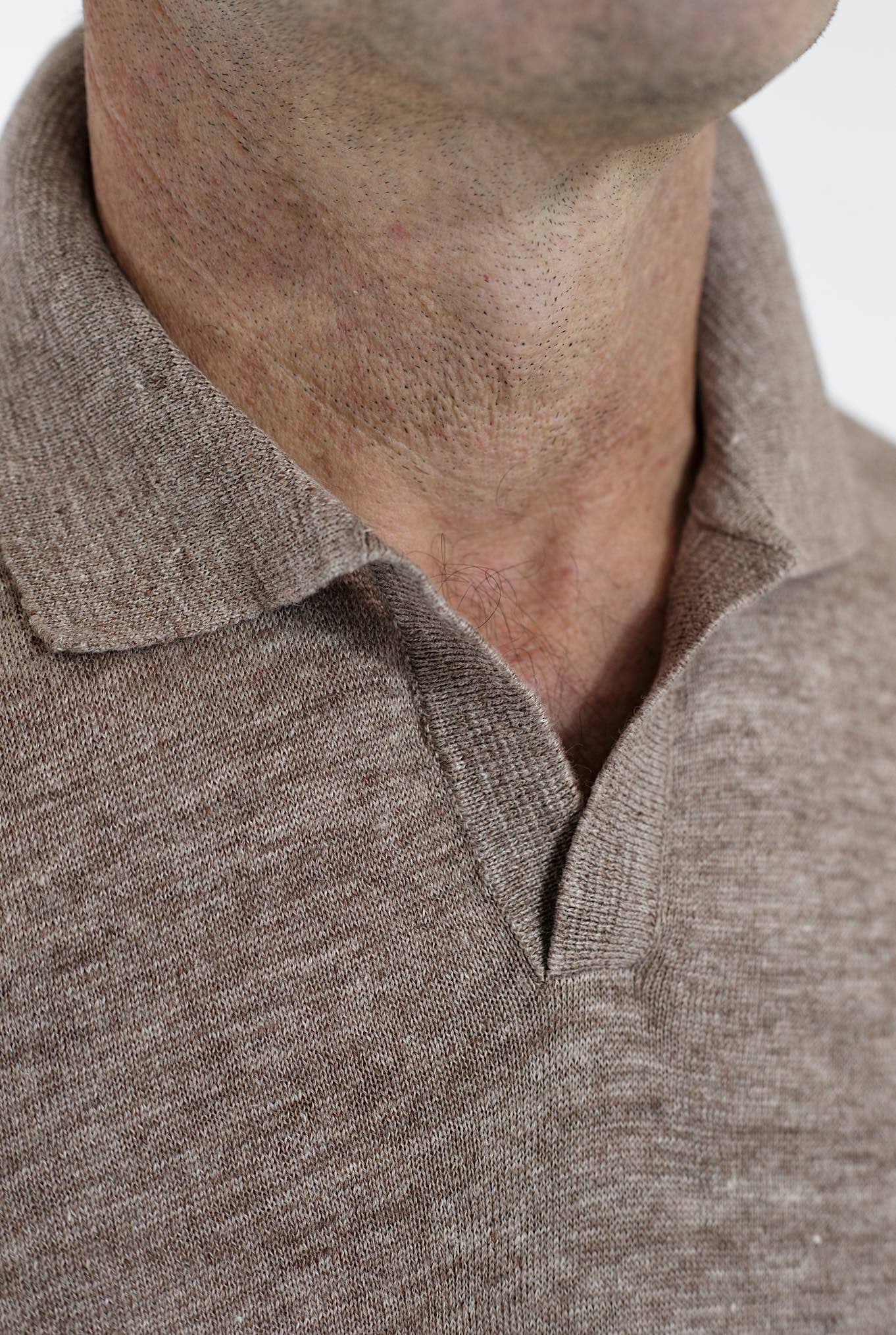 BARBA Polo Lino MM Senza Bottoni Marrone Mélange