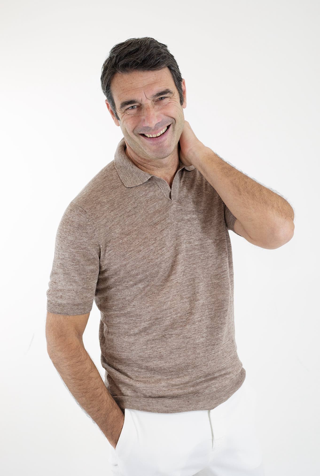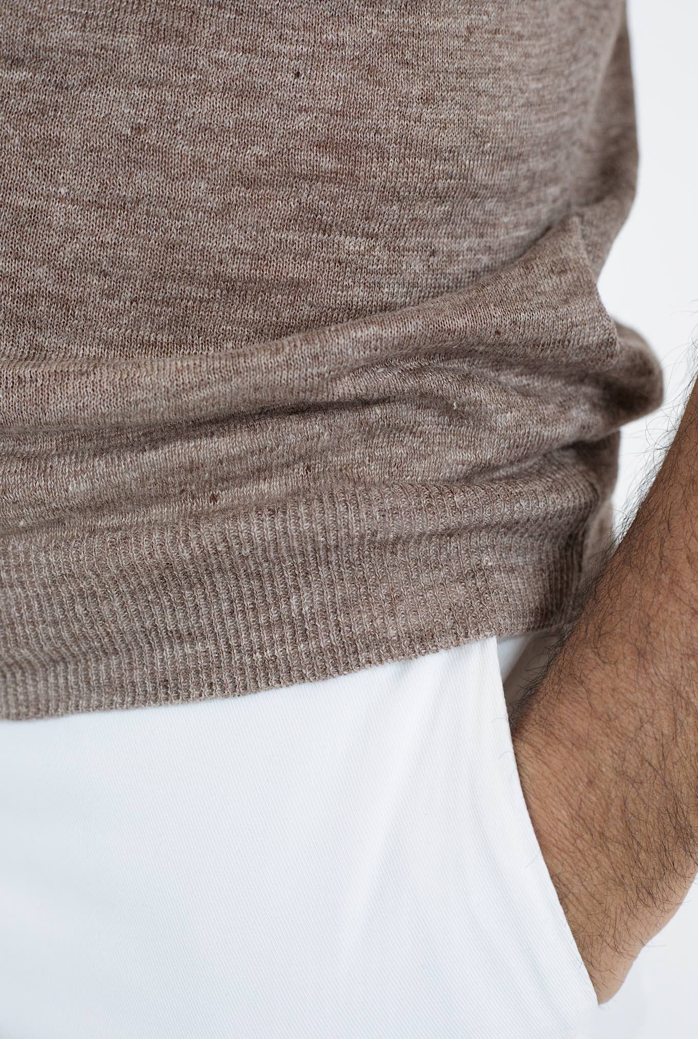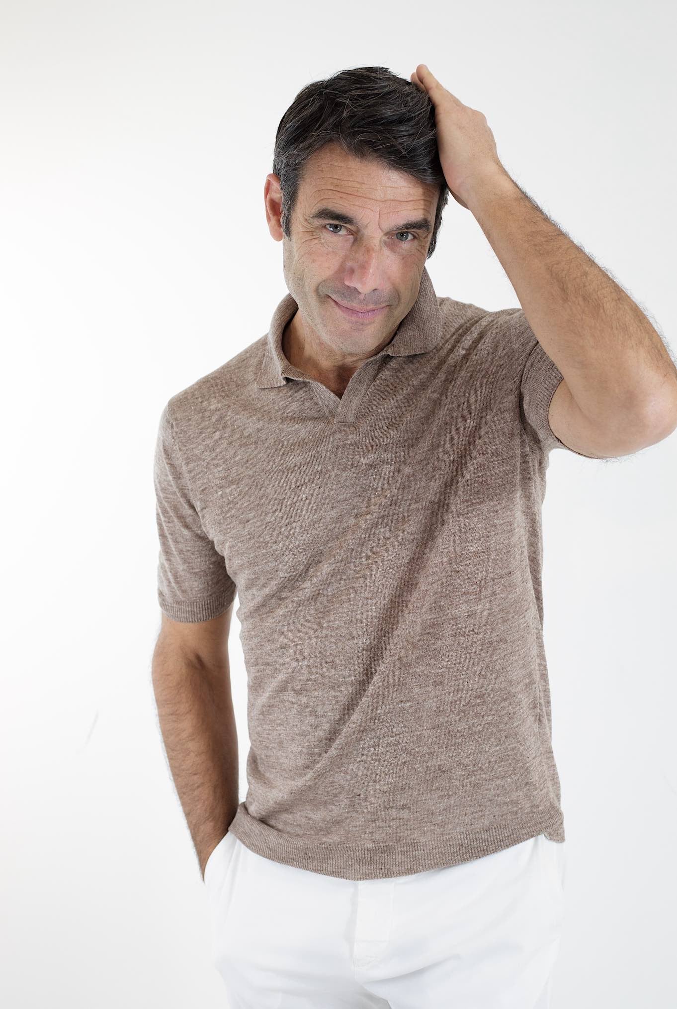 BARBA Polo Lino MM Senza Bottoni Marrone Mélange