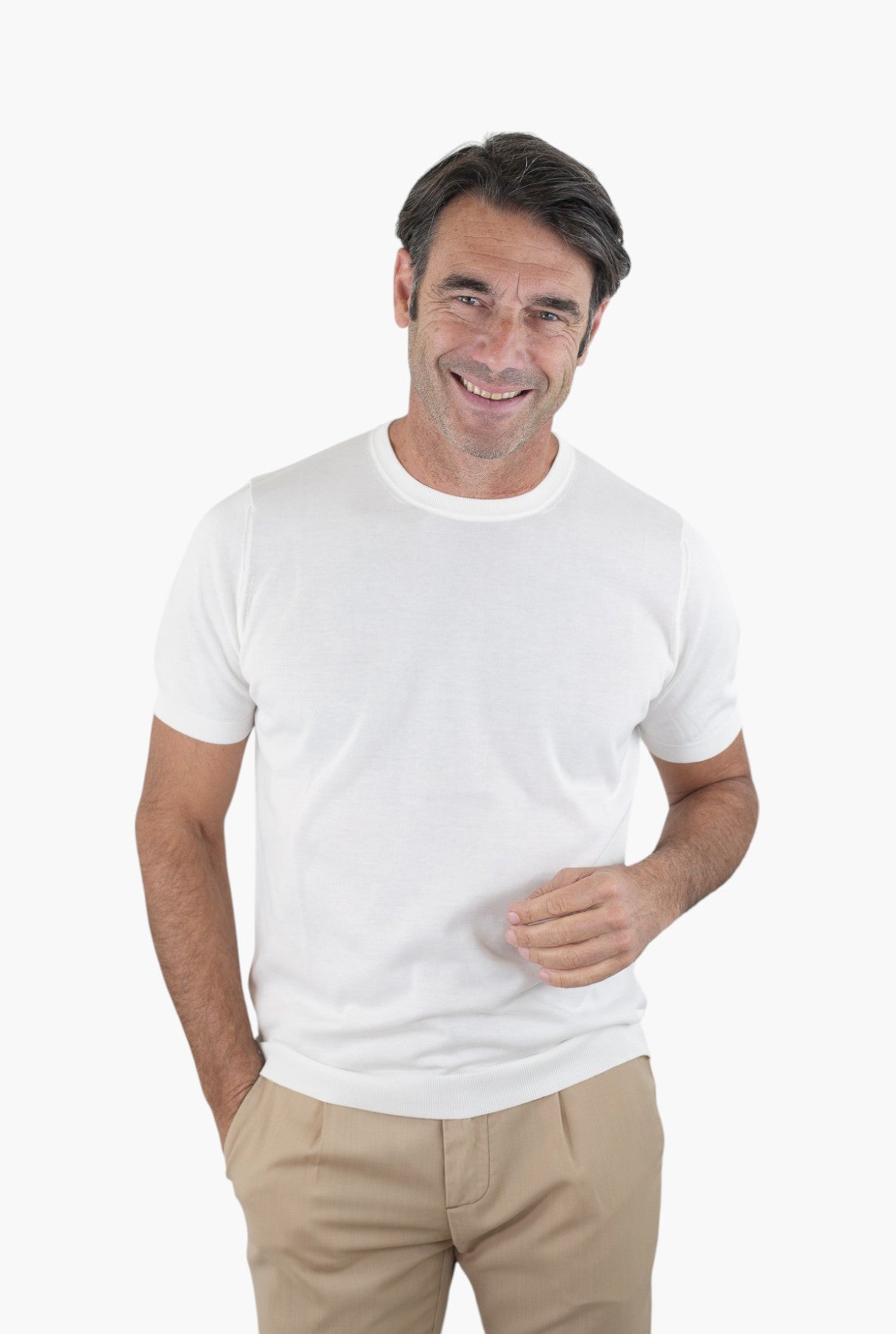 Drumohr firma un girocollo a maniche corte essenziale e raffinato, pensato per chi ricerca leggerezza ed eleganza quotidiana. Realizzato in cotone superlight e traspirante, garantisce una straordinaria freschezza anche nelle giornate più calde.La costruzione a telaio esalta la qualità artigianale, mentre la vestibilità slim avvolge il corpo con naturalezza, offrendo comfort e una linea impeccabile. Il design minimalista lo rende estremamente versatile: perfetto con chino, denim o bermuda, per un look sofisticato e rilassato che incarna lo spirito autentico del luxury menswear.