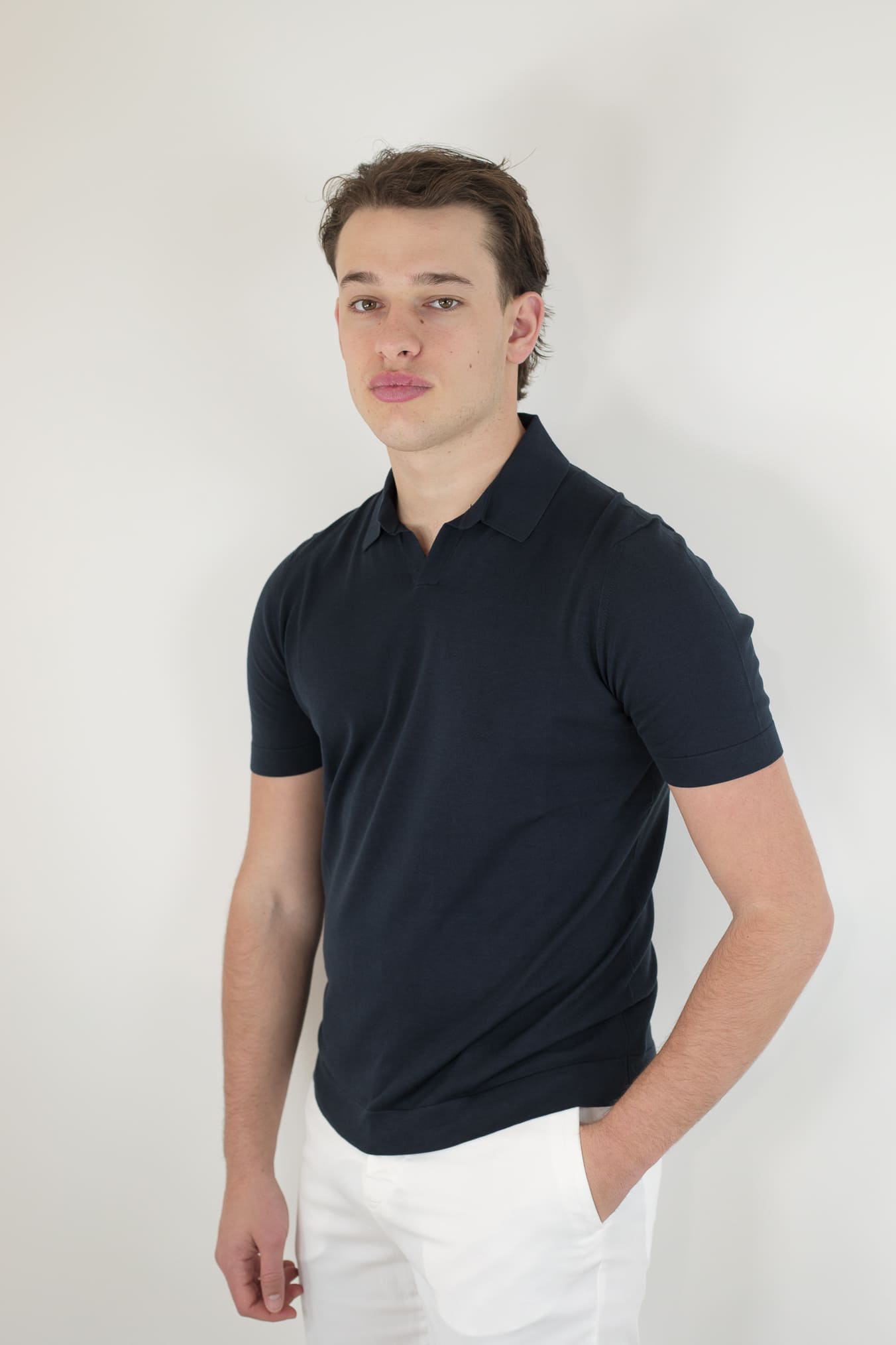 La polo Drumohr a maniche corte esprime un'eleganza essenziale e contemporanea. Realizzata in cotone frosted, un tessuto straordinariamente leggero e traspirante, è progettata per offrire una freschezza assoluta anche nelle giornate più calde. La lavorazione a telaio esalta la qualità artigianale, mentre il collo senza bottoni aggiunge un tocco di modernità e minimalismo.La vestibilità slim segue la silhouette con naturalezza, garantendo comfort e un look impeccabile. Perfetta con chino, denim o bermuda, è un capo versatile che incarna l'essenza del luxury menswear, ideale per chi cerca stile e funzionalità senza compromessi.