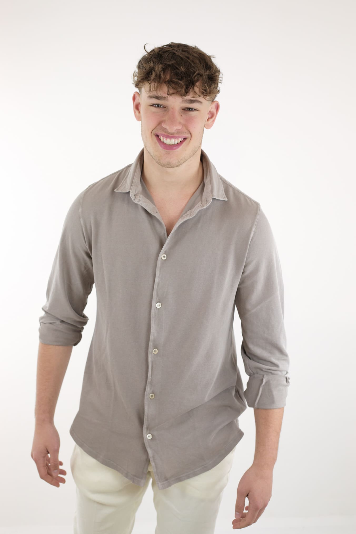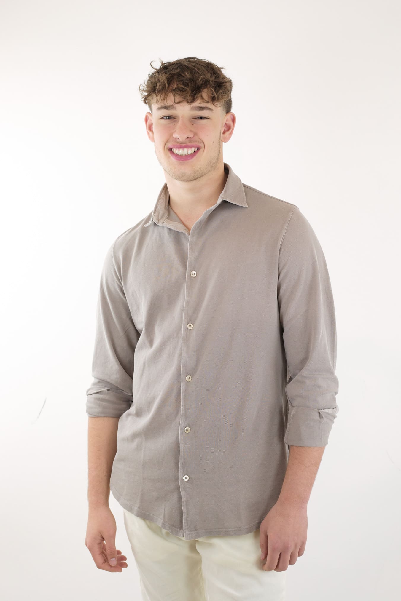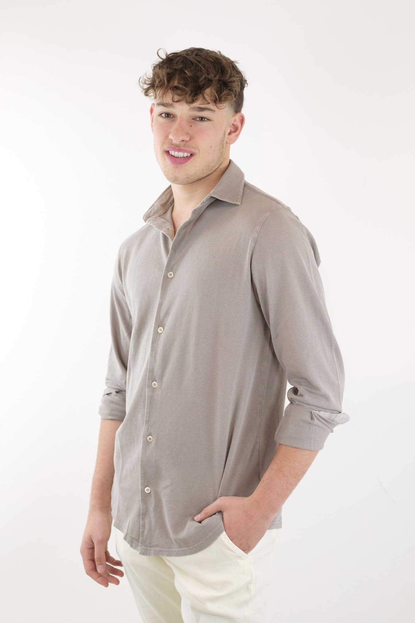 FEDELI Camicia Cotone Piquet Frosted Beige