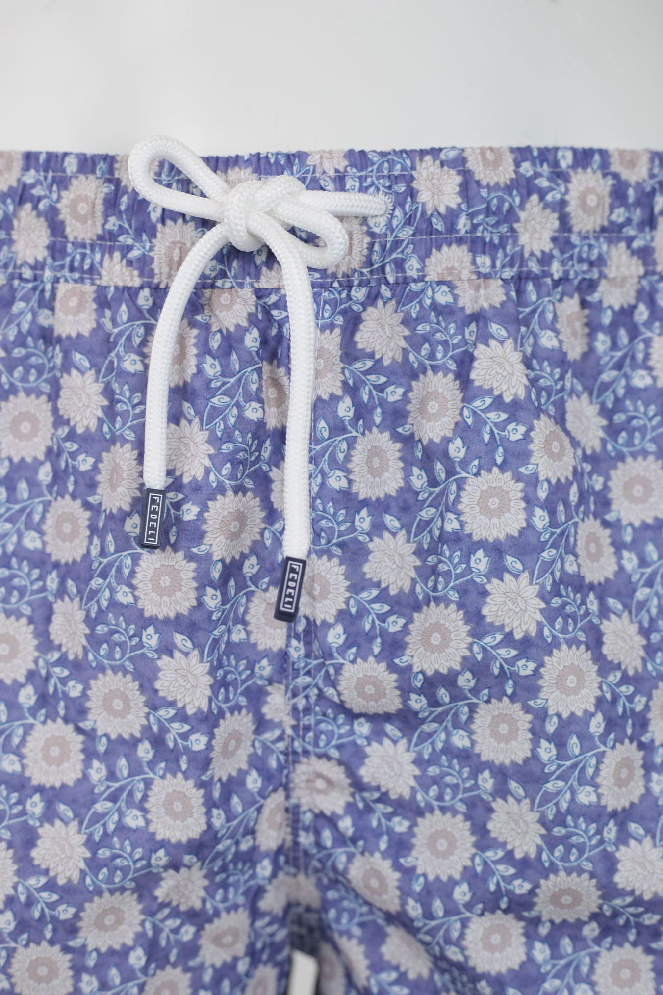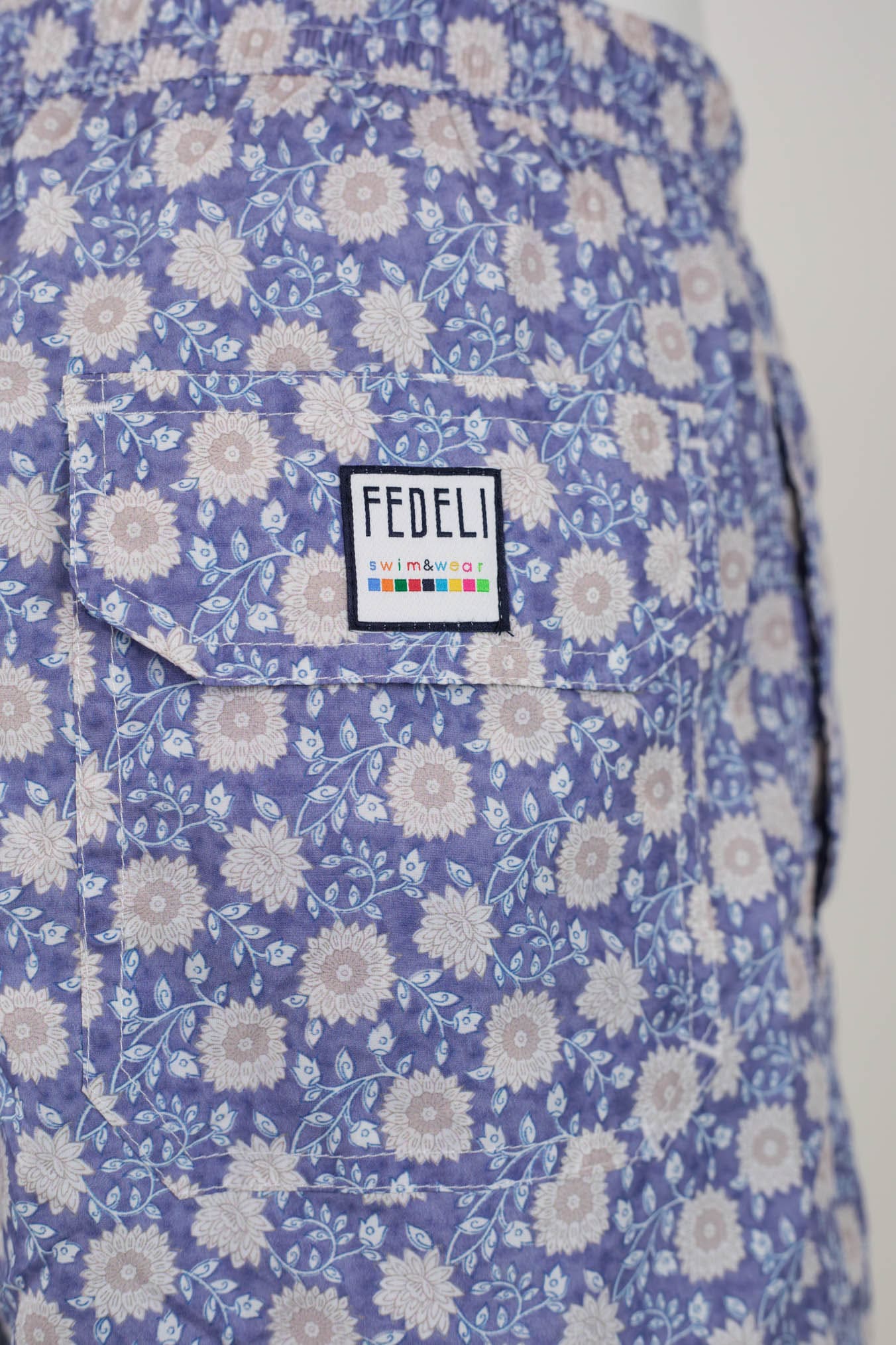 FEDELI Costume da Bagno Fiori Blu e Beige