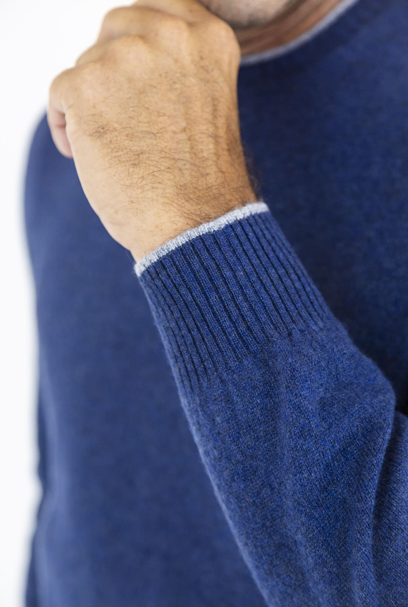 Maglia Girocollo Cashmere Bicolore Azzurro
