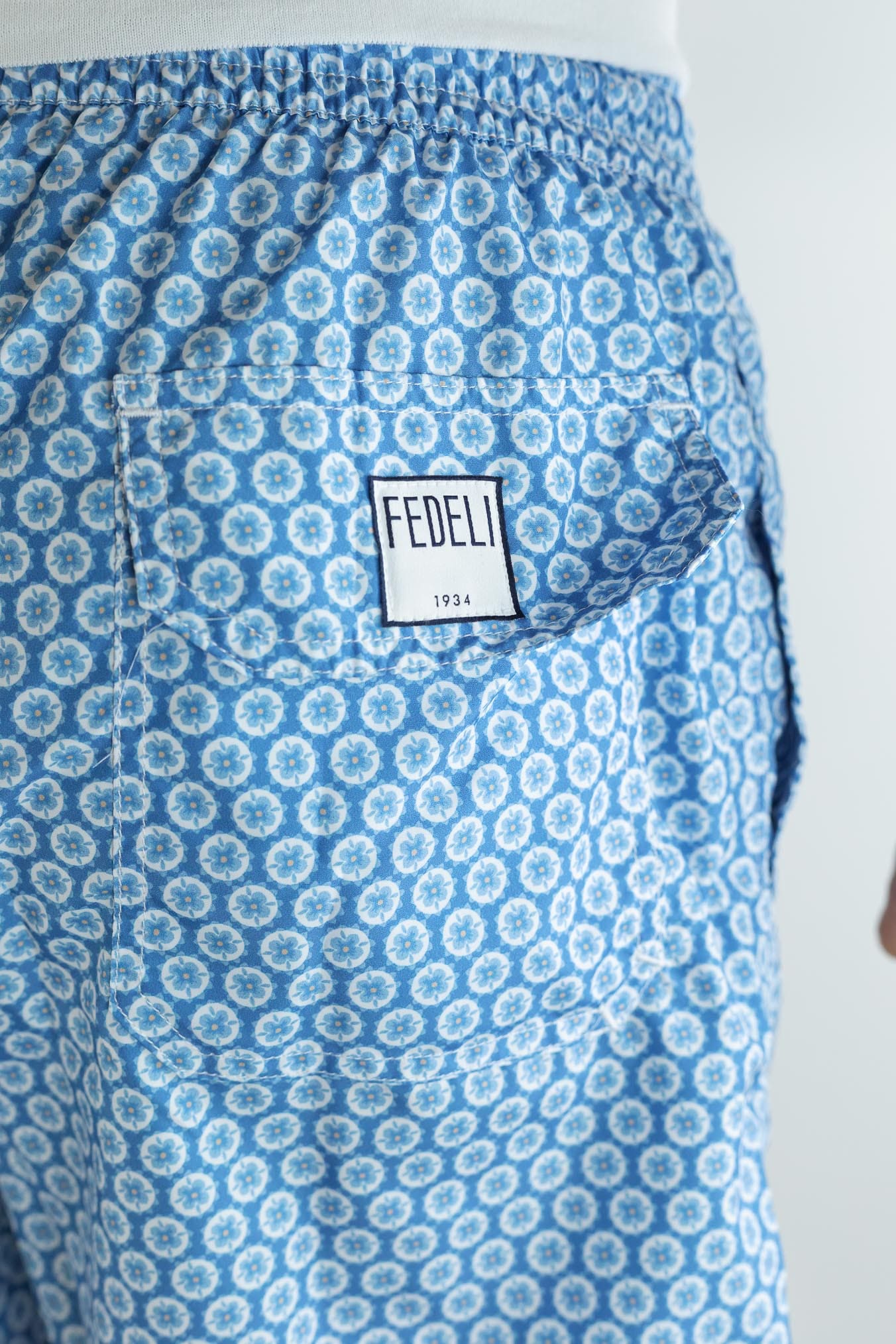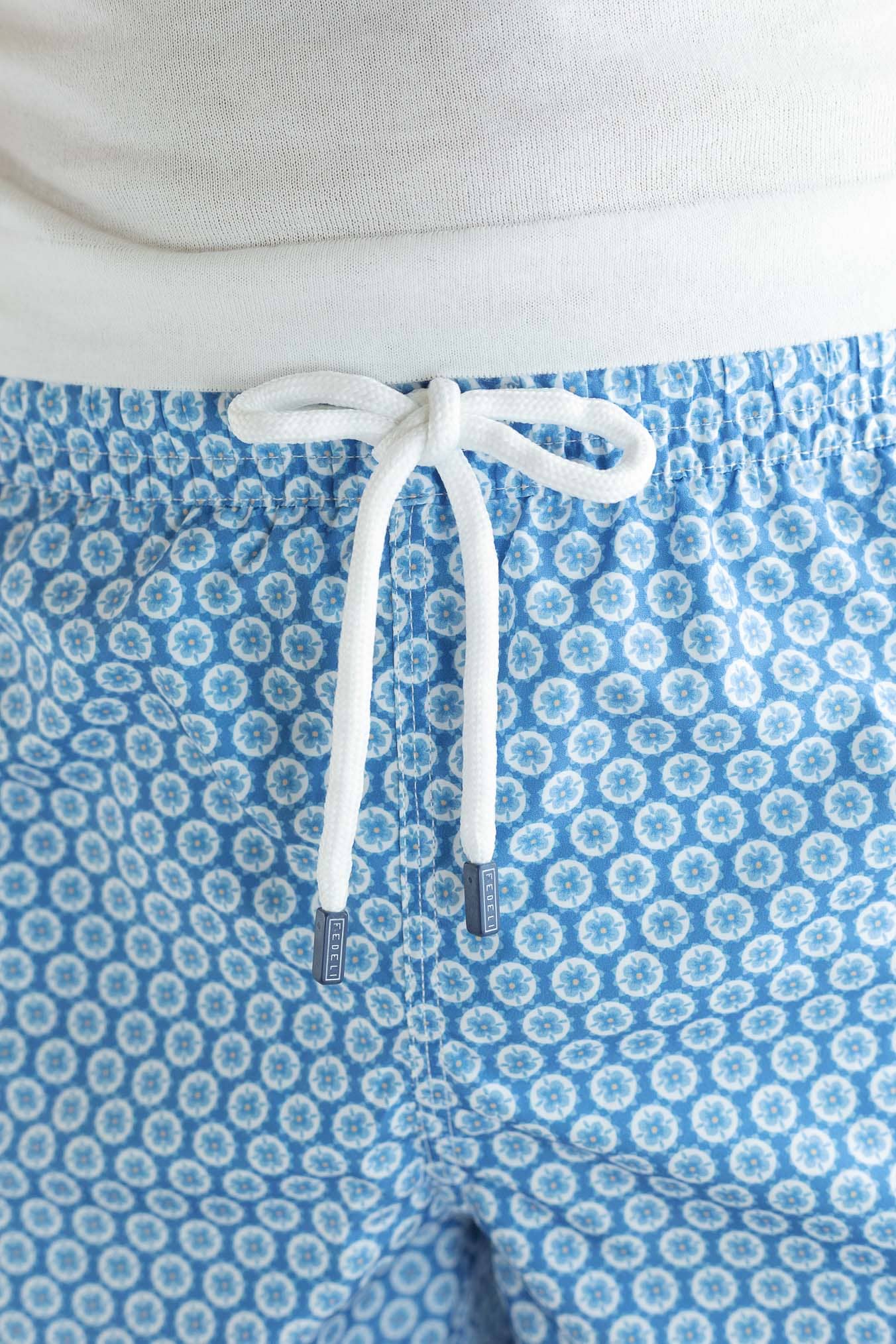 Il Costume da Bagno Madeira Fantasia Celeste Azzurro di Fedeli rappresenta l'eccellenza dello swimwear maschile, unendo performance tecniche e raffinatezza estetica. Realizzato in 100% poliestere riciclato, è incredibilmente leggero e si asciuga in soli 90 secondi, garantendo comfort immediato dopo ogni bagno. La vita con elastico e lacci regolabili assicura una vestibilità comoda e stabile, completata da due pratiche tasche laterali, una posteriore con bottone e un gancio laterale funzionale.Stile distintivo, funzionalità avanzata