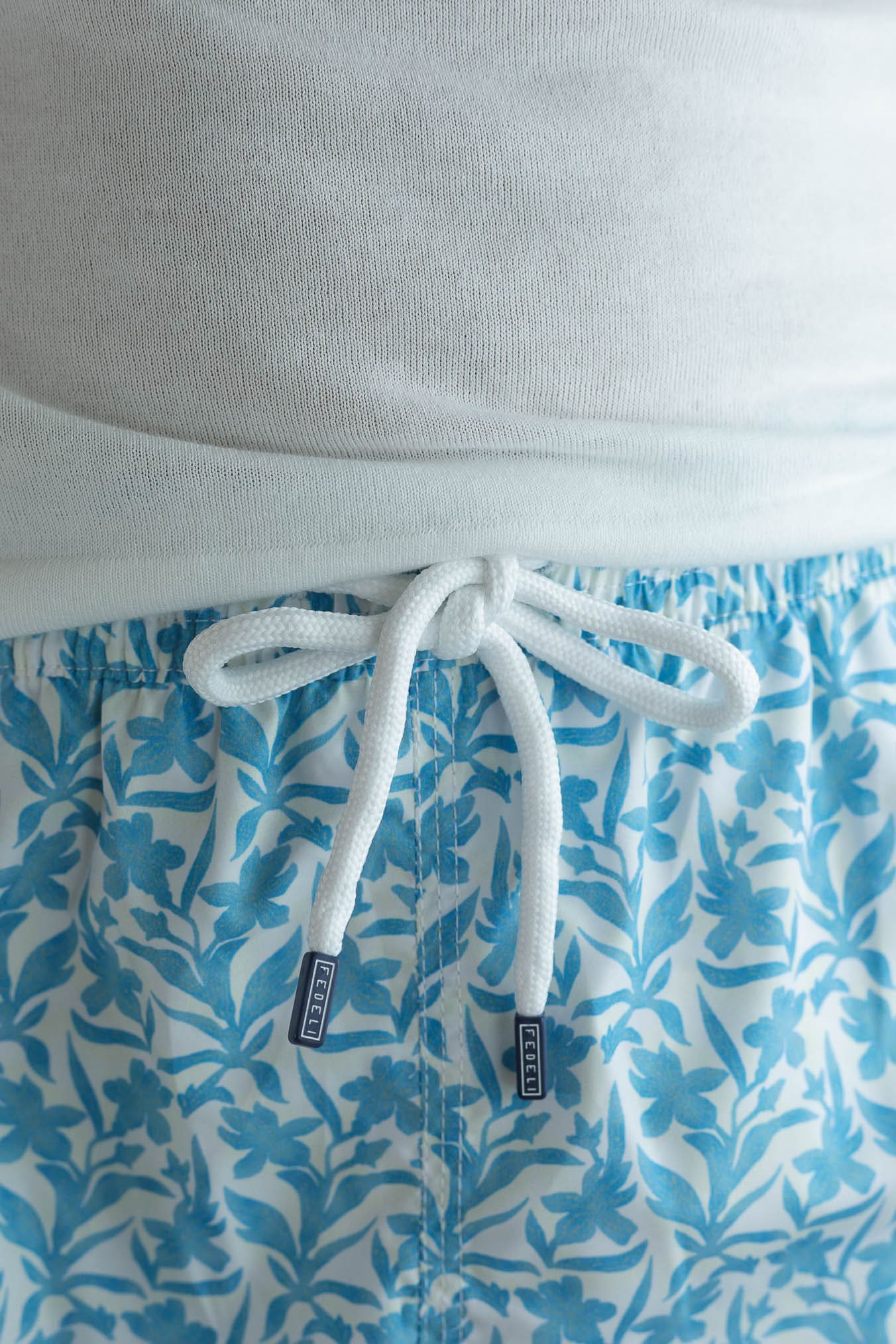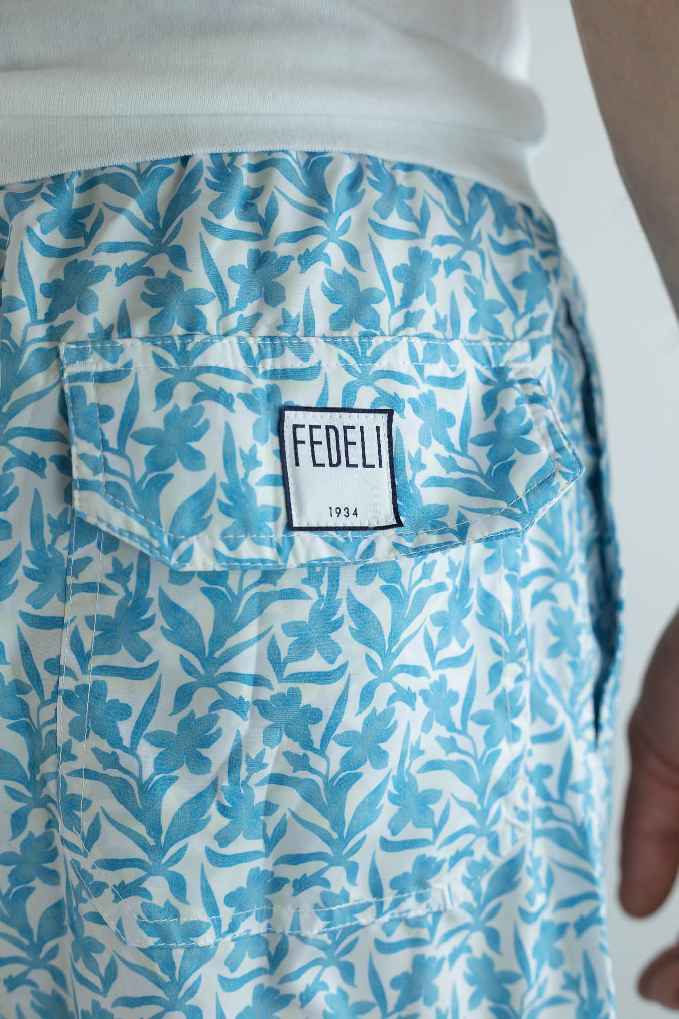 Il Costume da Bagno Madeira Fiori Azzurri di Fedeli rappresenta l'eccellenza dello swimwear italiano, unendo estetica raffinata e performance tecniche. Realizzato in 100% poliestere riciclato, è superleggero e garantisce una rapida asciugatura in soli 90 secondi, ideale per vivere con disinvoltura ogni momento a bordo piscina o in riva al mare. Il design presenta una vita elasticizzata con lacci regolabili, due tasche laterali pratiche, una tasca posteriore e un gancio laterale funzionale.Stile sofisticato e comfort immediato per vivere l'estate