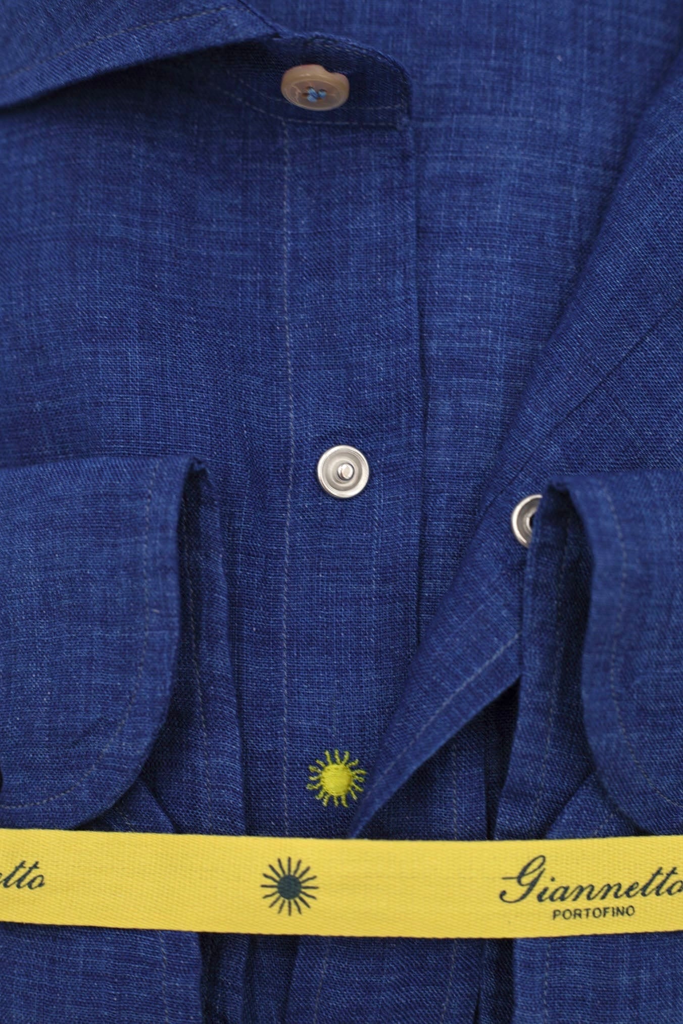 GIANNETTO PORTOFINO Camicia Lino Blu SLIM FIT