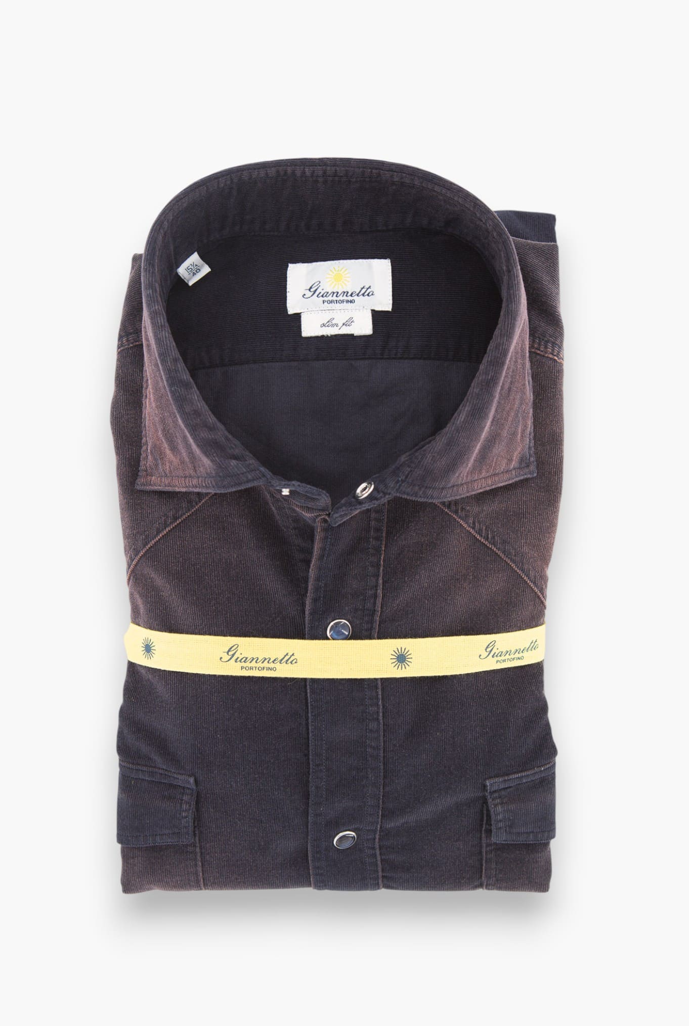 Camicia Texana Velluto Blu Scuro Giannetto Portofino, materica e vissuta