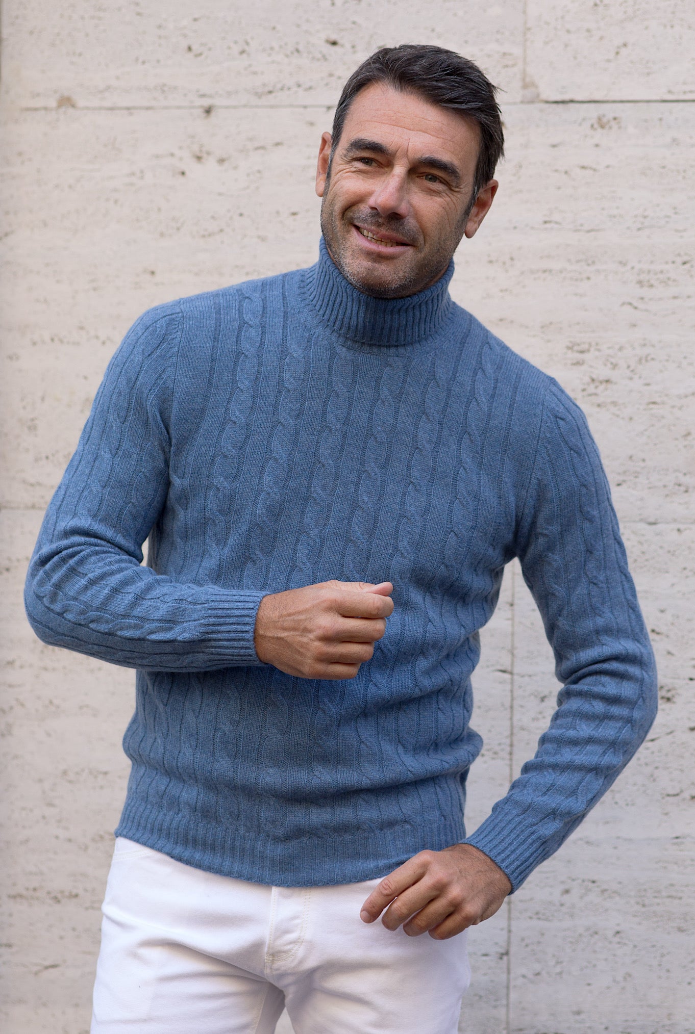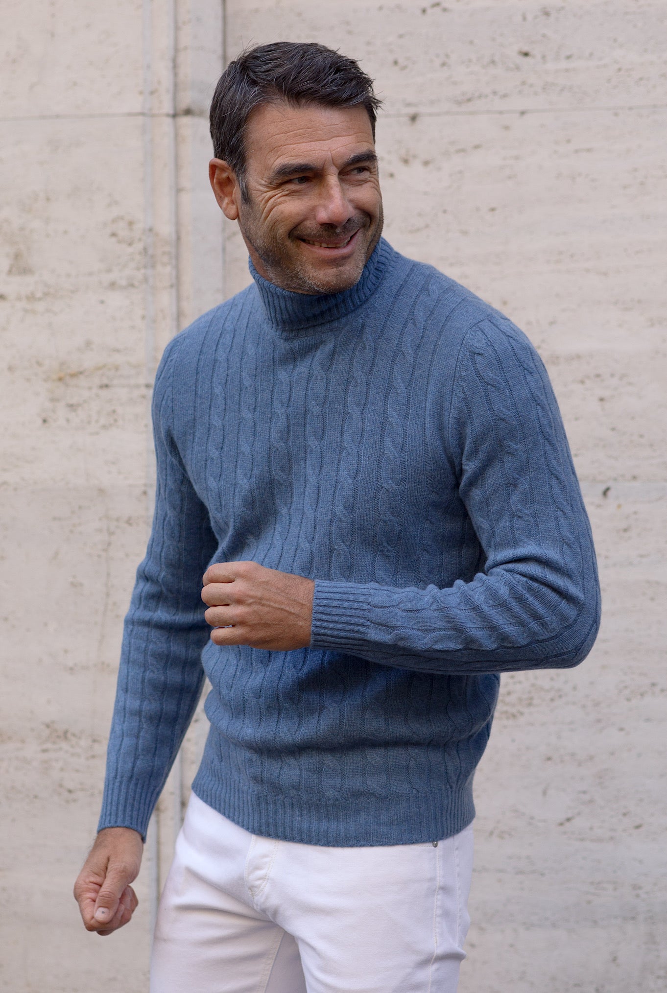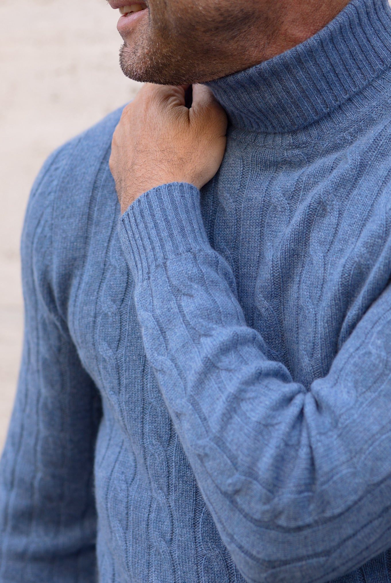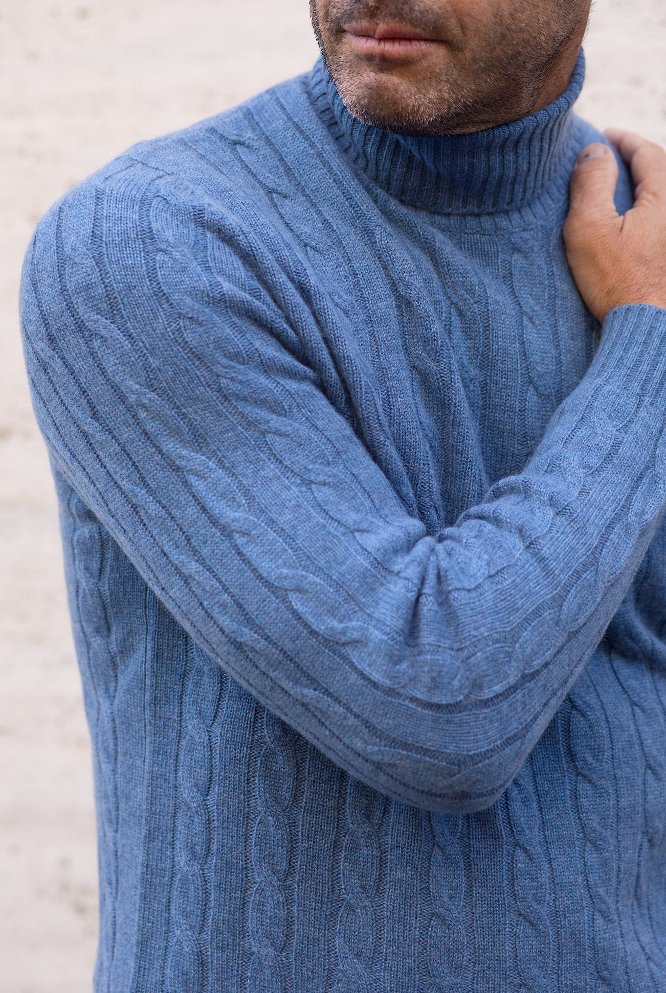 Dolcevita a Trecce in Cashmere Blu Scozia
