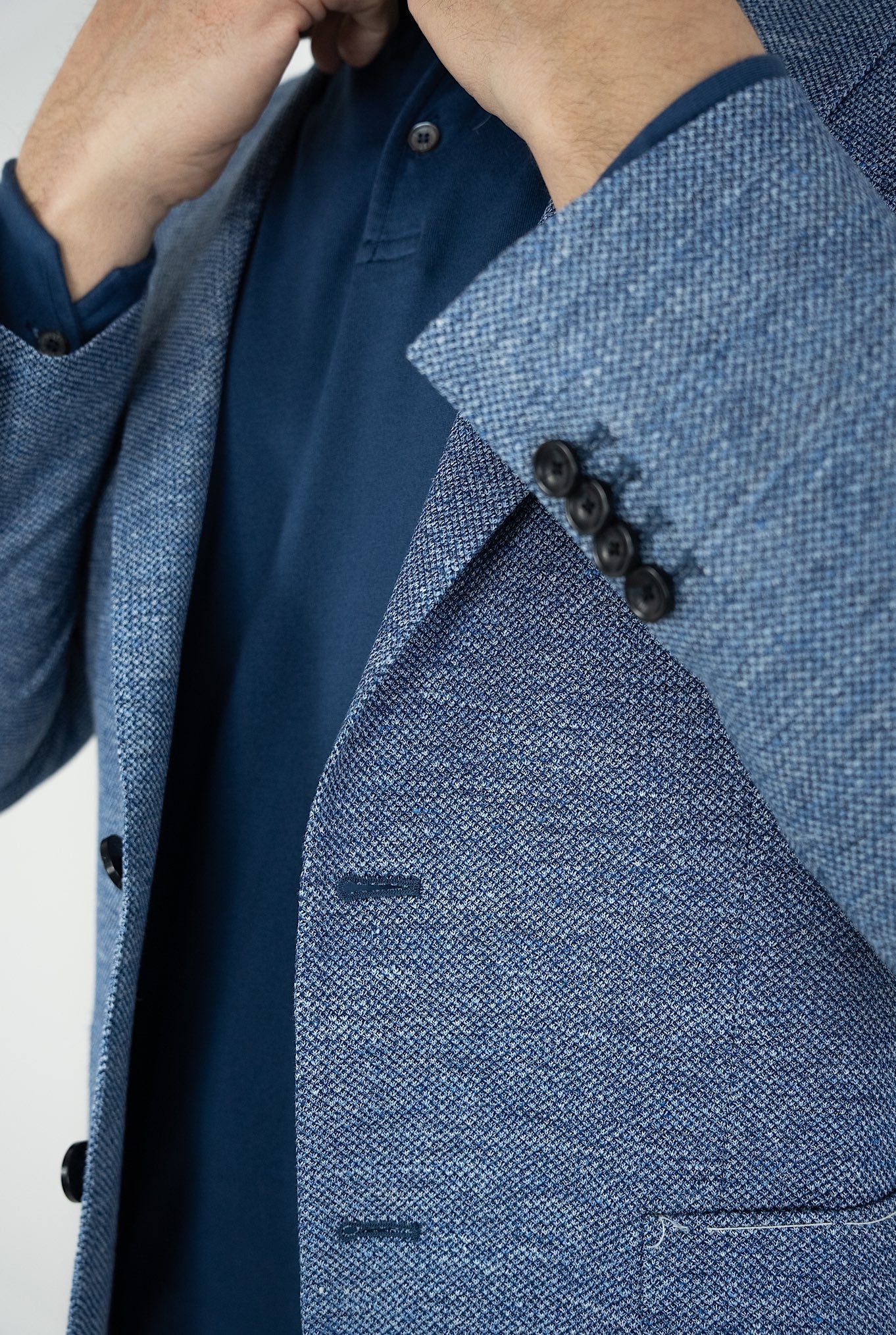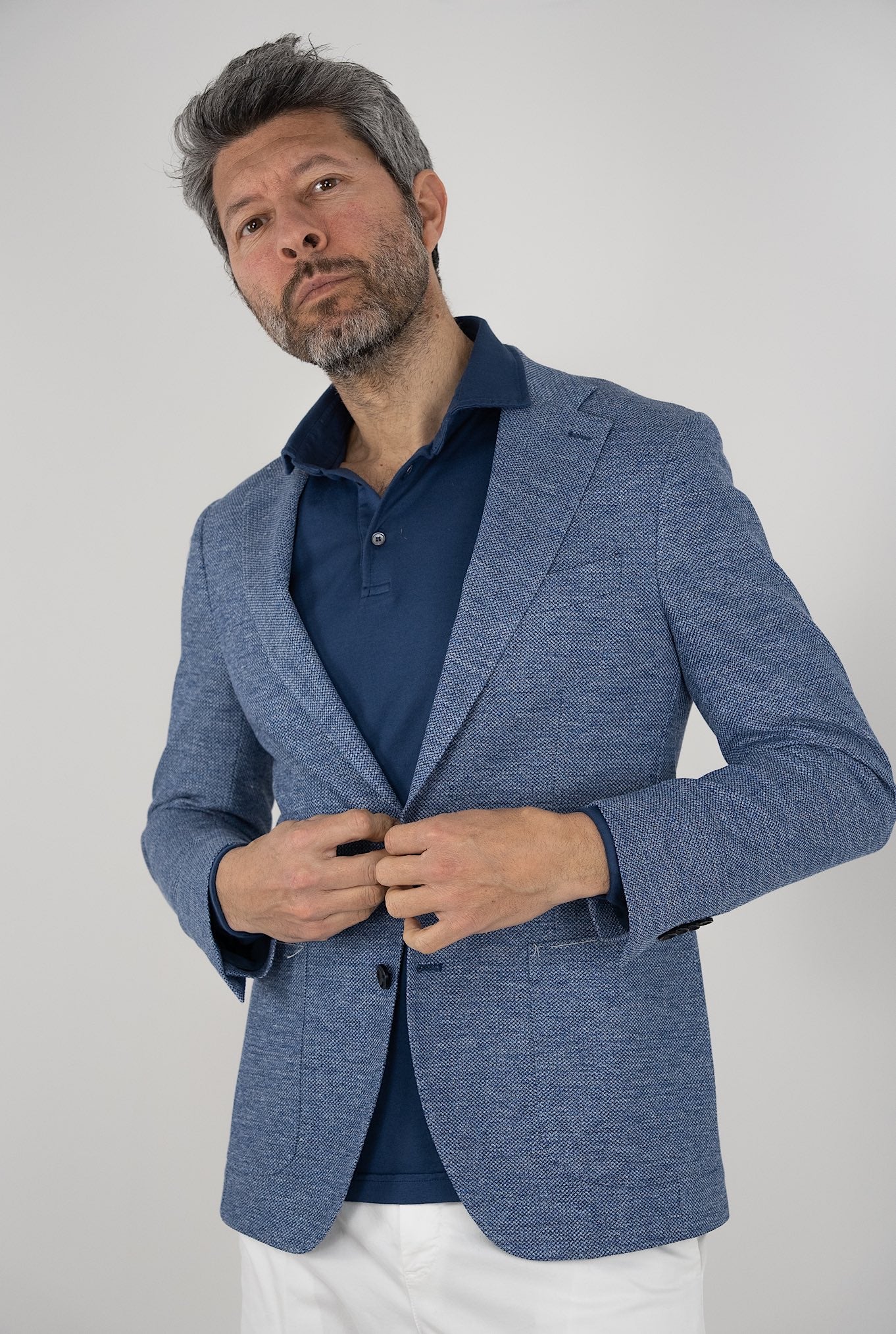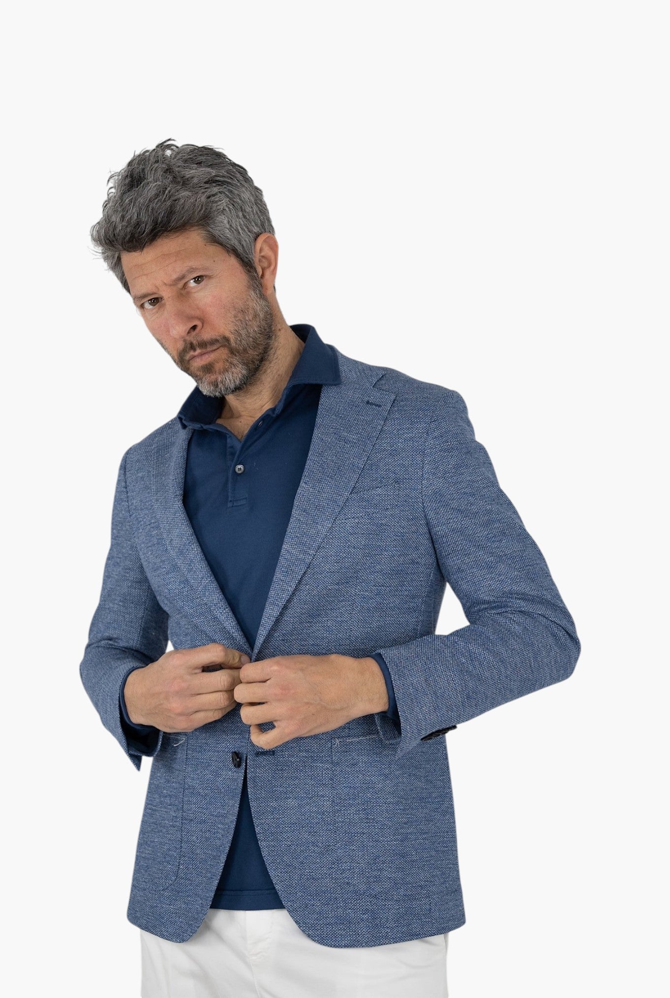 GUARINO Giacca in Jersey di Lino e Cotone Blu Mélange