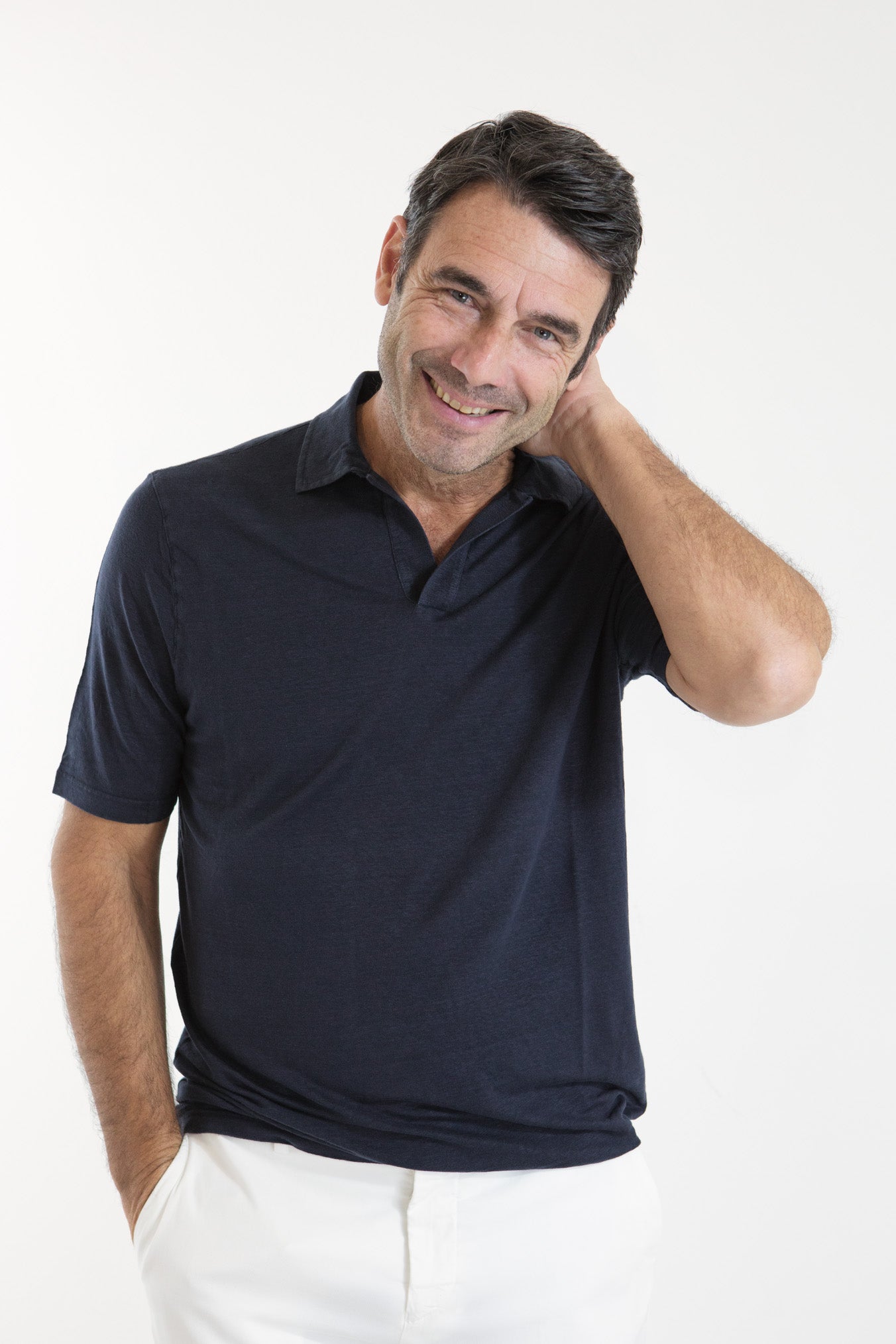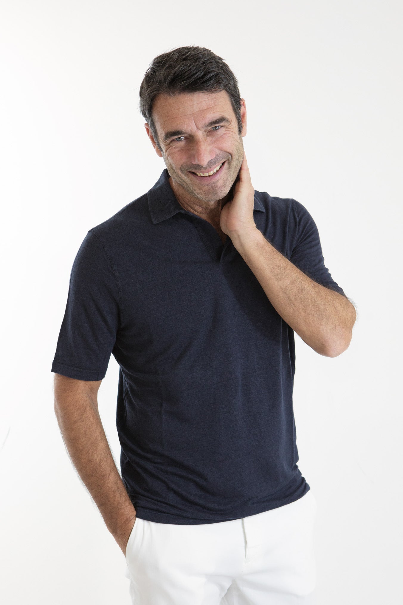 Realizzata con lino di alta qualità, offre una sensazione leggera e traspirante. Il collo senza bottoni aggiunge un tocco moderno e minimalista alla polo.