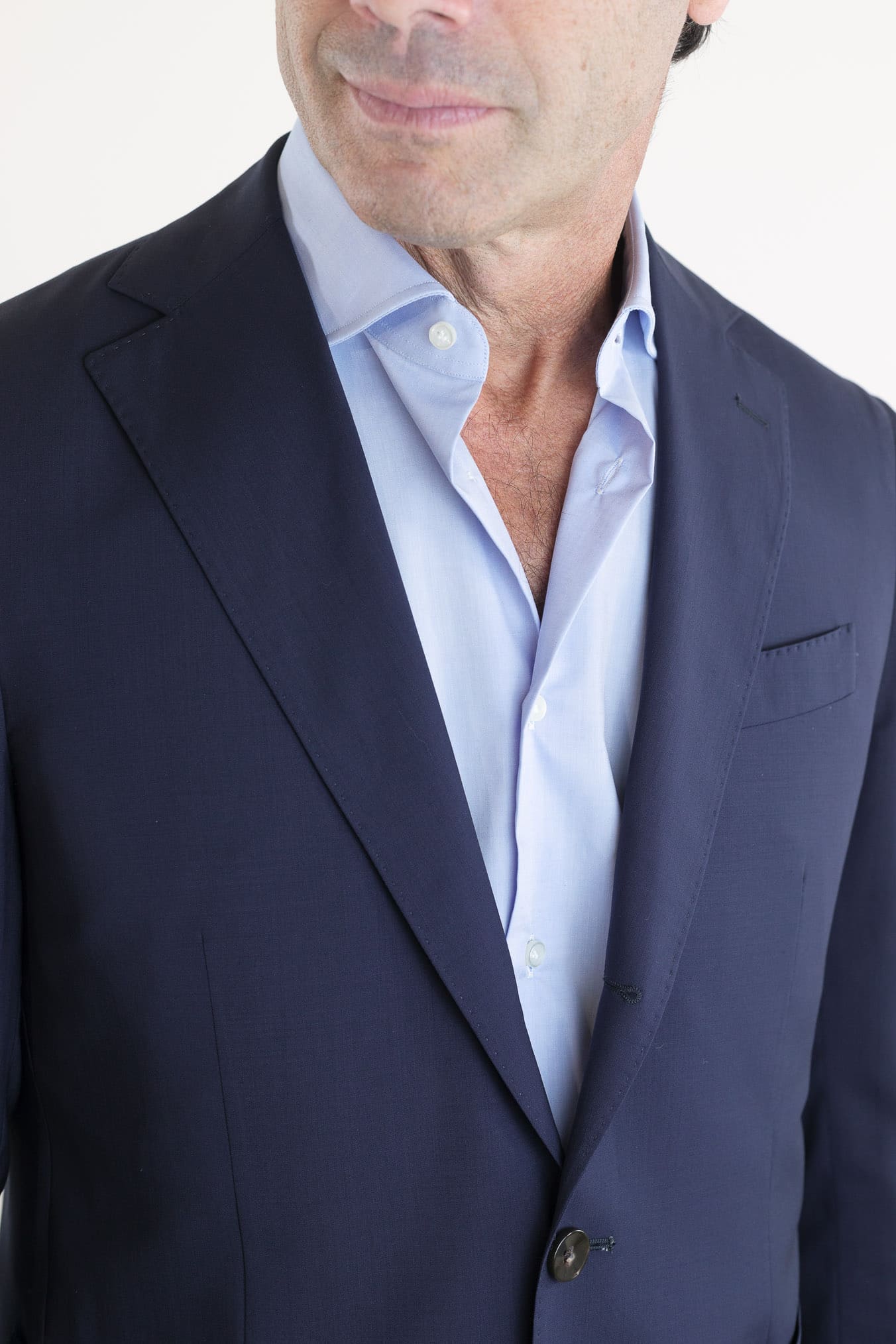 L'Abito Lana Super 130's Blu di Guarino incarna una nuova idea di eleganza contemporanea, dove la raffinatezza incontra la leggerezza. Realizzato in pregiata lana Super 130's, questo abito monopetto a 2 bottoni si distingue per la mano morbida, la naturale elasticità e la traspirabilità del tessuto superlight. La struttura è sfoderata e destrutturata, pensata per accompagnare i movimenti con naturalezza, mentre la vestibilità slim valorizza la figura con equilibrio e sobrietà.Leggerezza sartoriale e versatilità nel luxury menswear
