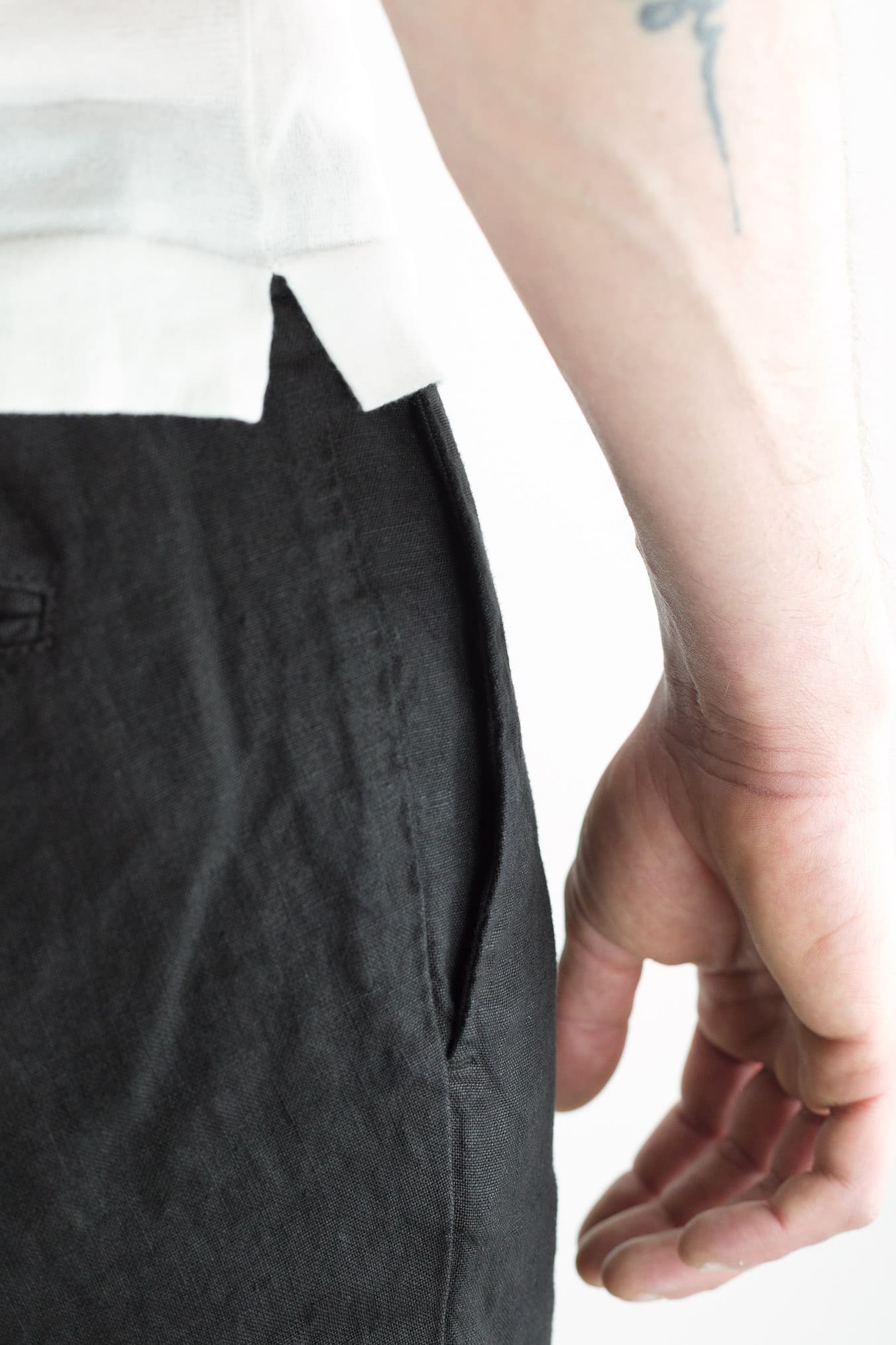 Il colore nero con finitura washed aggiunge profondità e carattere al capo, rendendolo ideale da abbinare a una camicia in lino, una t-shirt o una polo. Pensati per l'uomo che ama la semplicità autentica e il piacere di indossare tessuti naturali con un'attitudine rilassata ma curata. Made in Italy.Composizione 100% Lino
