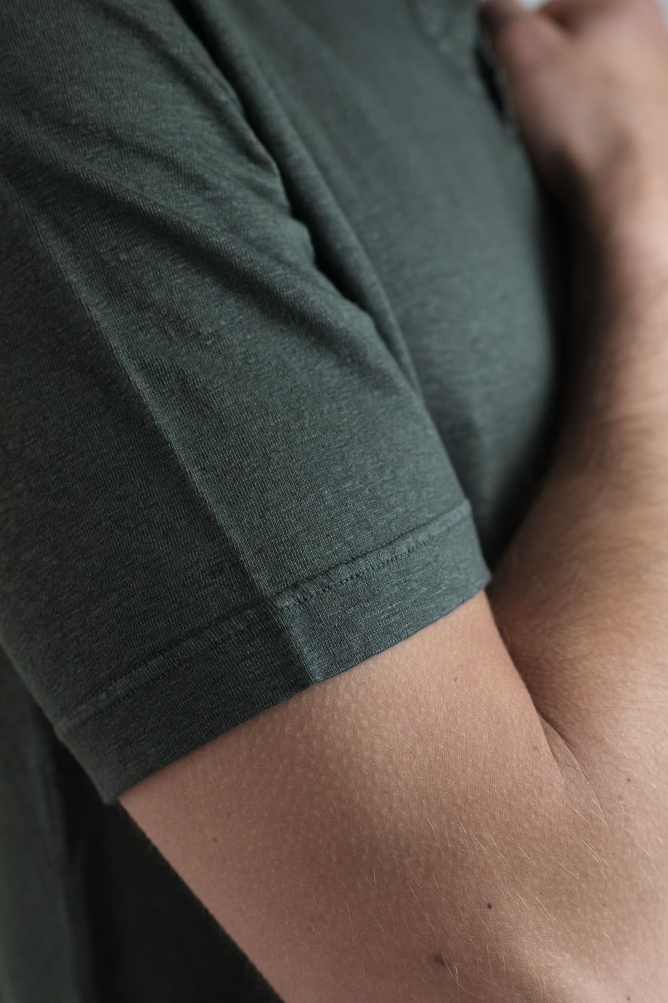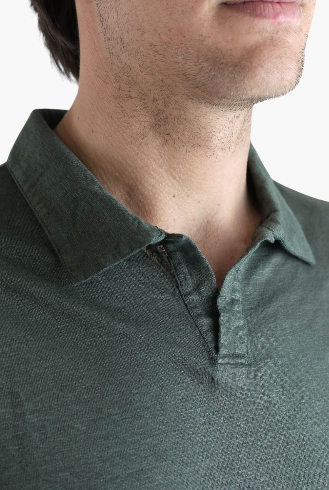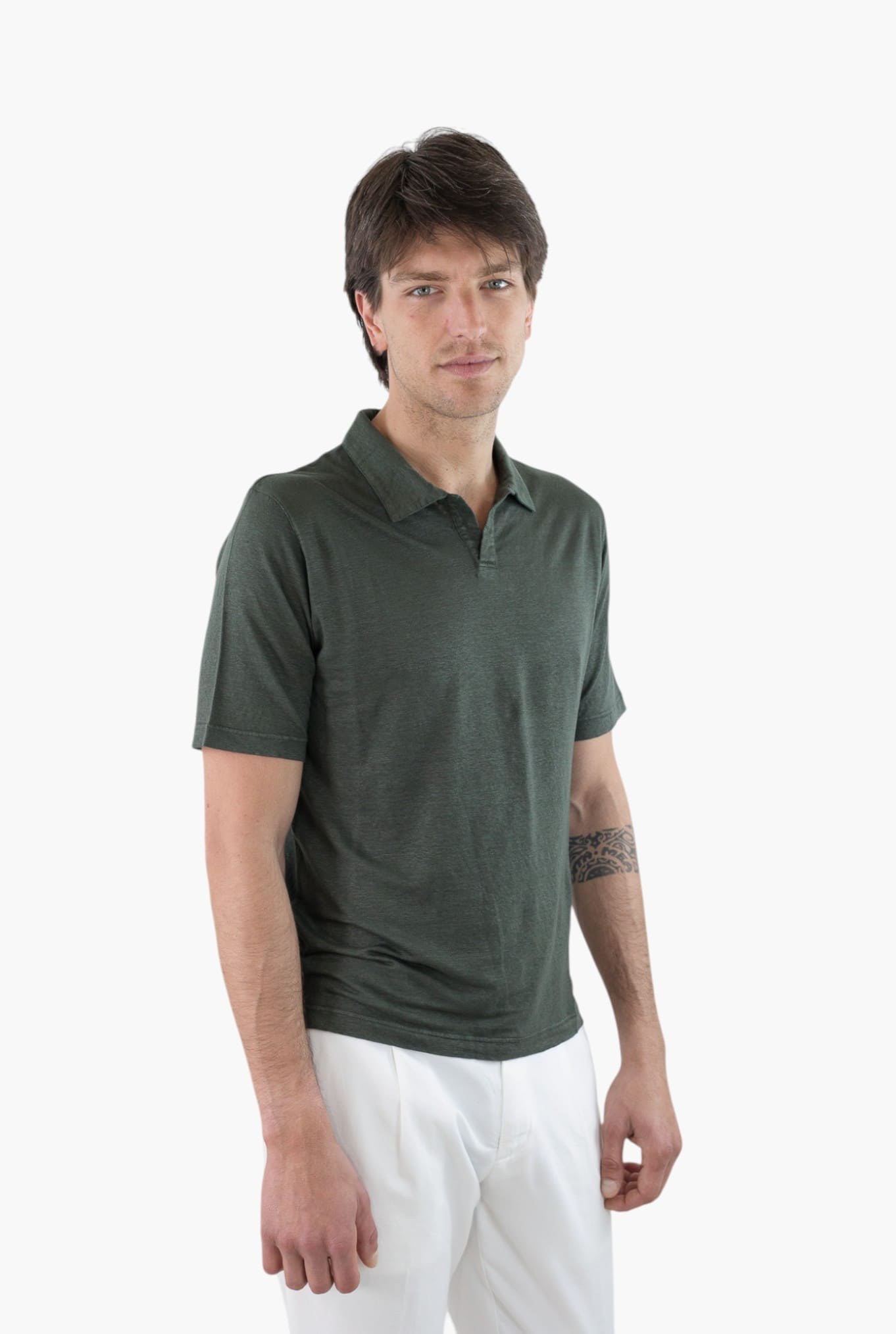 Il verde, intenso e raffinato, esalta la freschezza del tessuto, rendendola perfetta da abbinare con pantaloni in cotone o lino, bermuda o denim chiaro. Un capo pensato per l'uomo che ricerca equilibrio tra essenzialità e raffinatezza, con un tocco di eleganza rilassata. Made in Italy.Composizione 97% Lino 3% Elastane