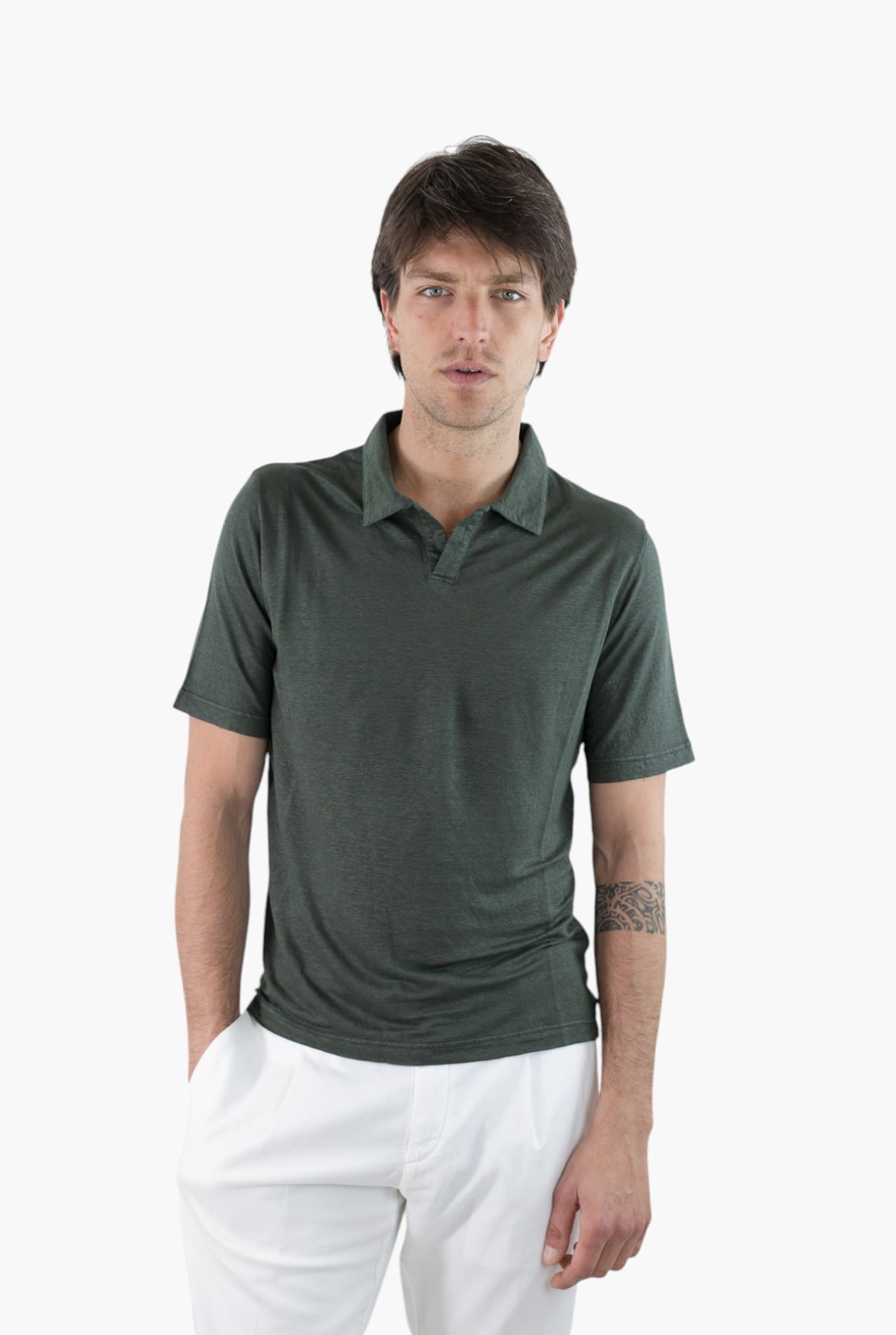 La Polo Skipper Maniche Corte Lino Verde di Guarino interpreta con stile la semplicità del lino in versione ultra leggera. Realizzata in jersey di lino, questa polo avvolge con naturalezza grazie alla sua texture ariosa e traspirante, ideale per i momenti più caldi della giornata. Il taglio regolare è valorizzato da uno scollo a V senza bottoni, fondo dritto e spacchi laterali che conferiscono dinamismo e libertà nei movimenti.Semplicità sofisticata in chiave estiva