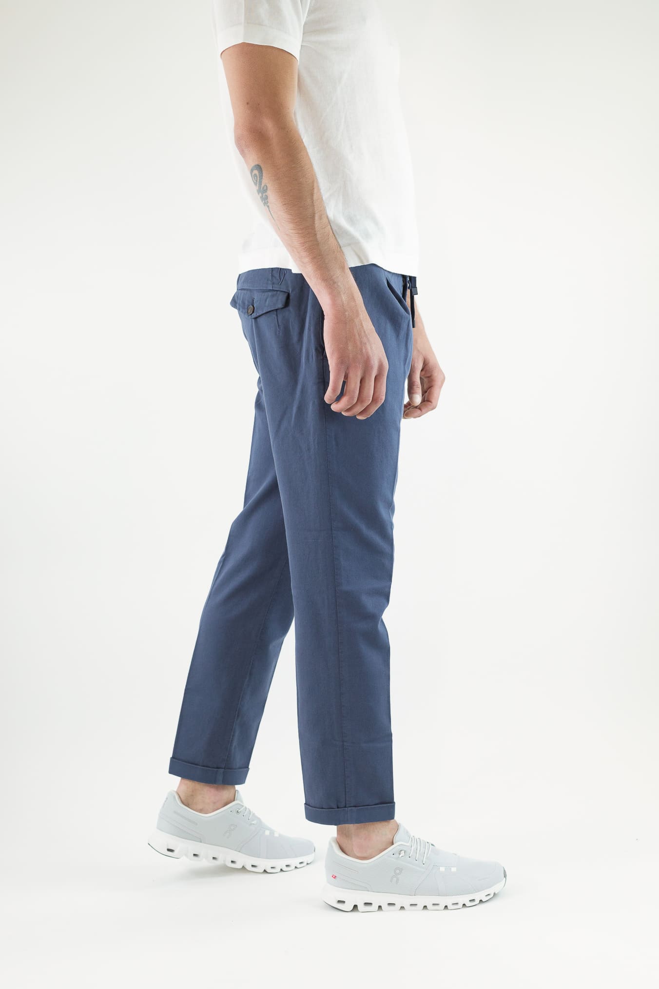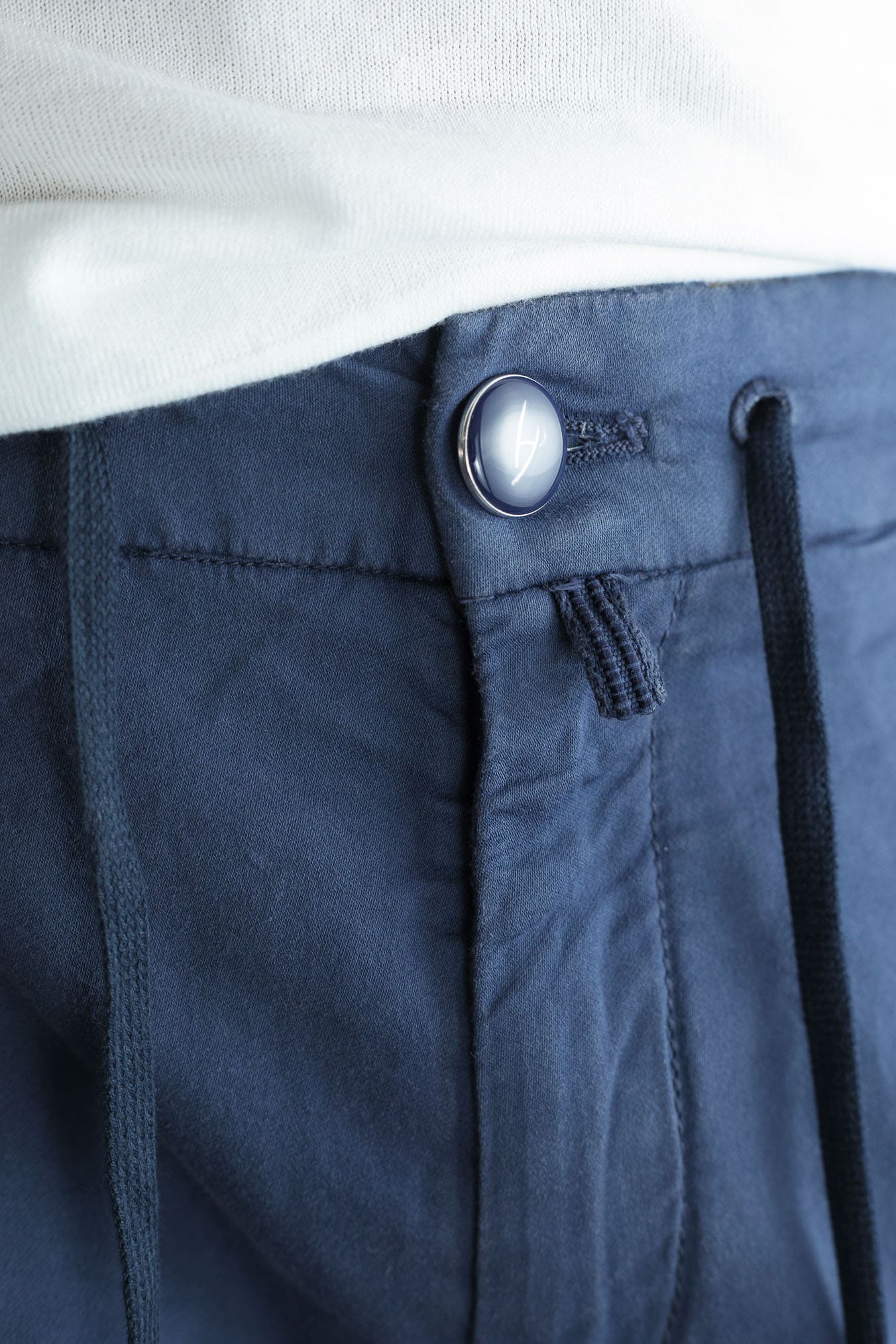 La tonalità blu chiaro, luminosa e versatile, li rende ideali per creare outfit casual sportivi con una camicia in lino, una polo o una t-shirt. Pensati per l'uomo che cerca l'equilibrio tra comodità e stile, questi pantaloni offrono una soluzione raffinata e disinvolta per ogni occasione informale. Made in Italy.Composizione 99% Cotone 1% Elastane