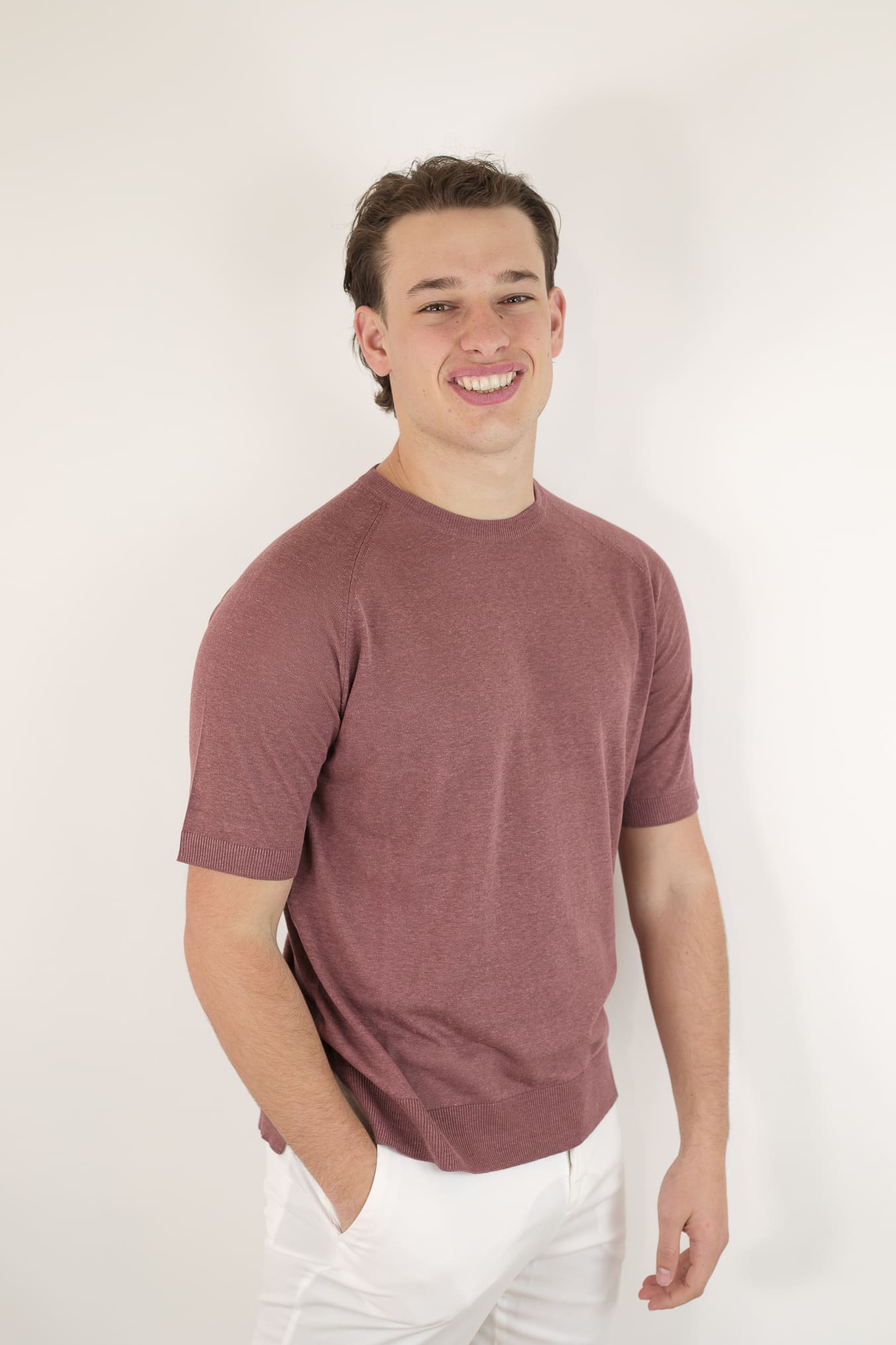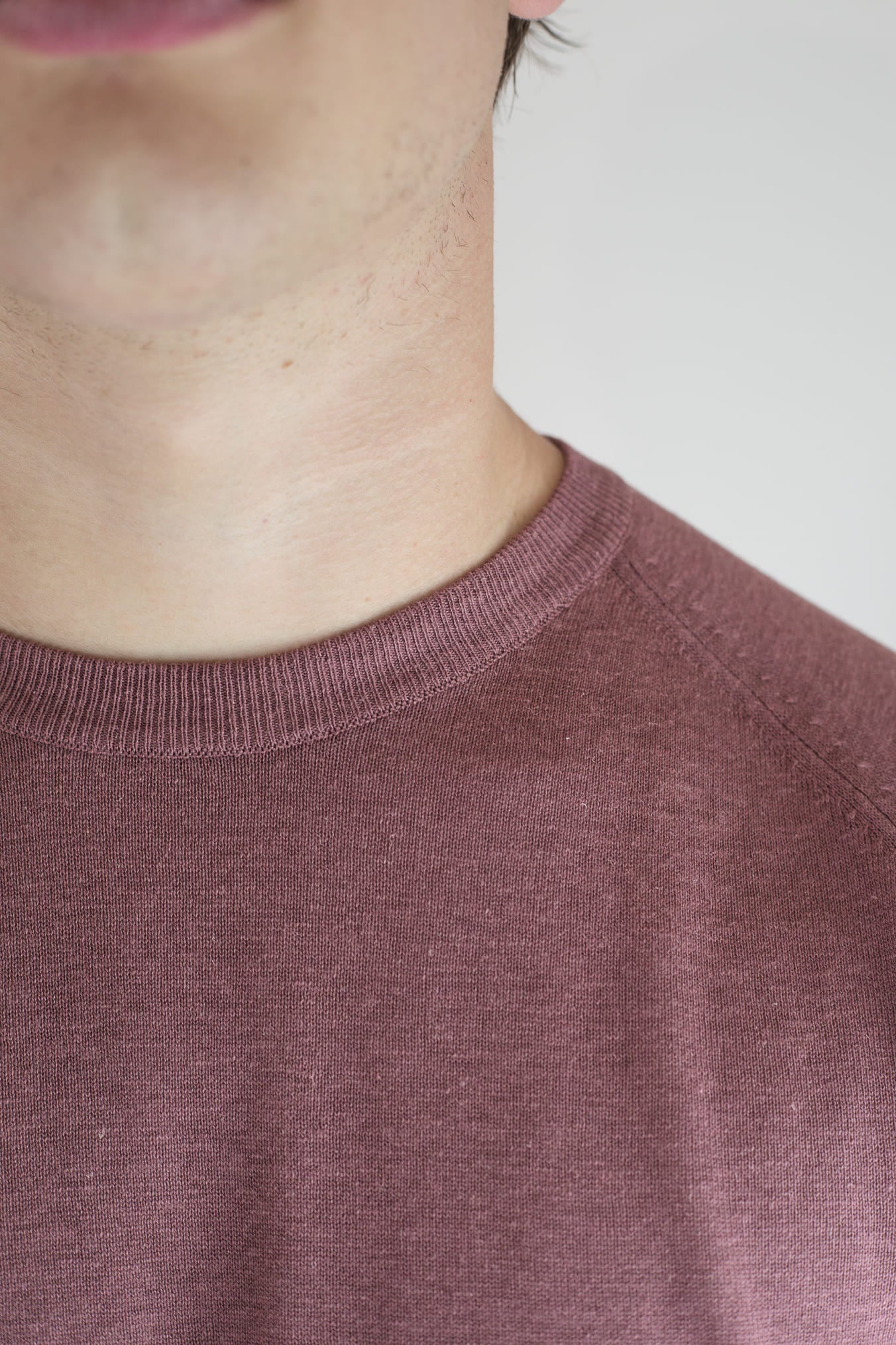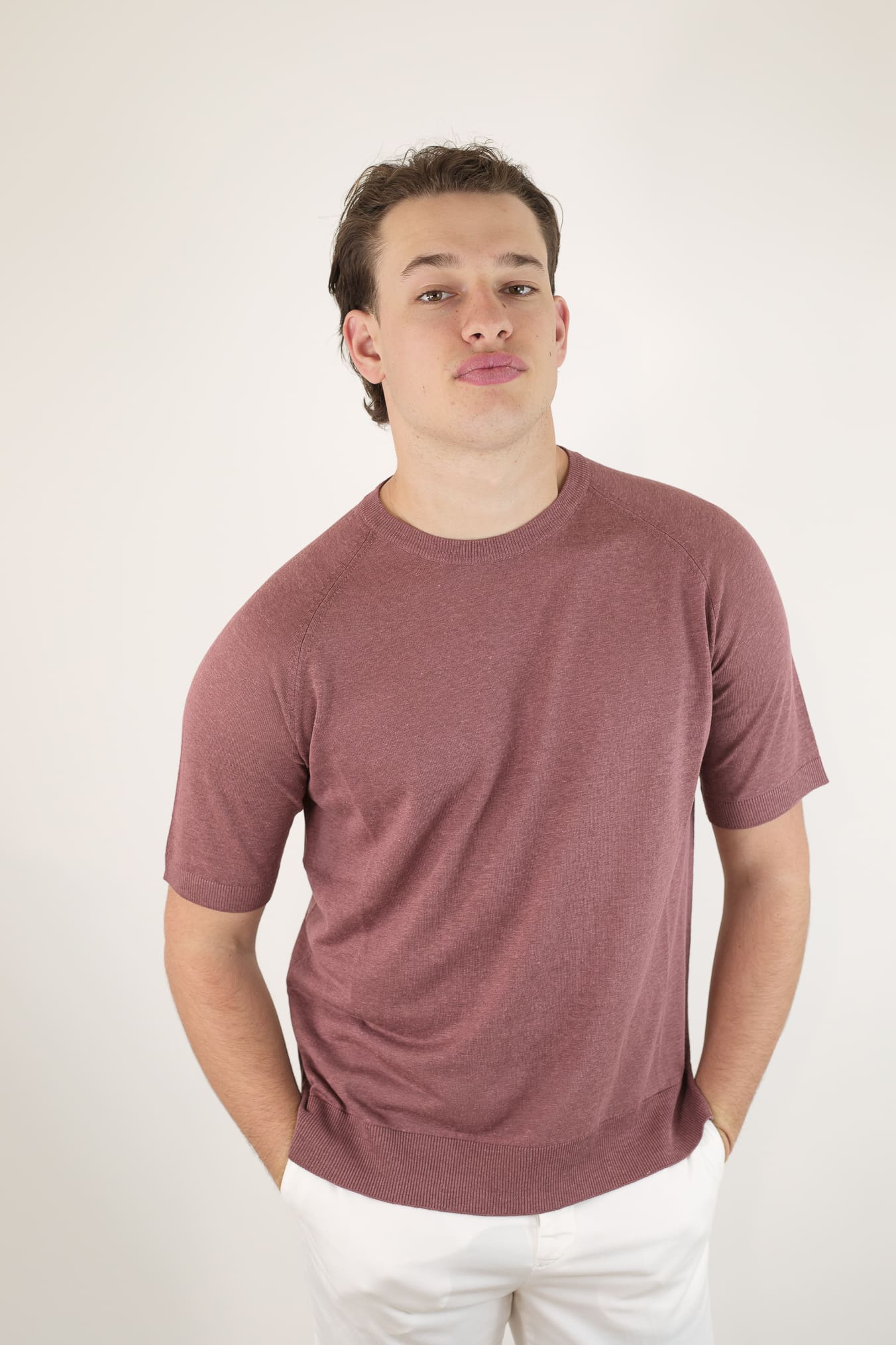 Girocollo Seta Lino Maniche Corte Bordeaux