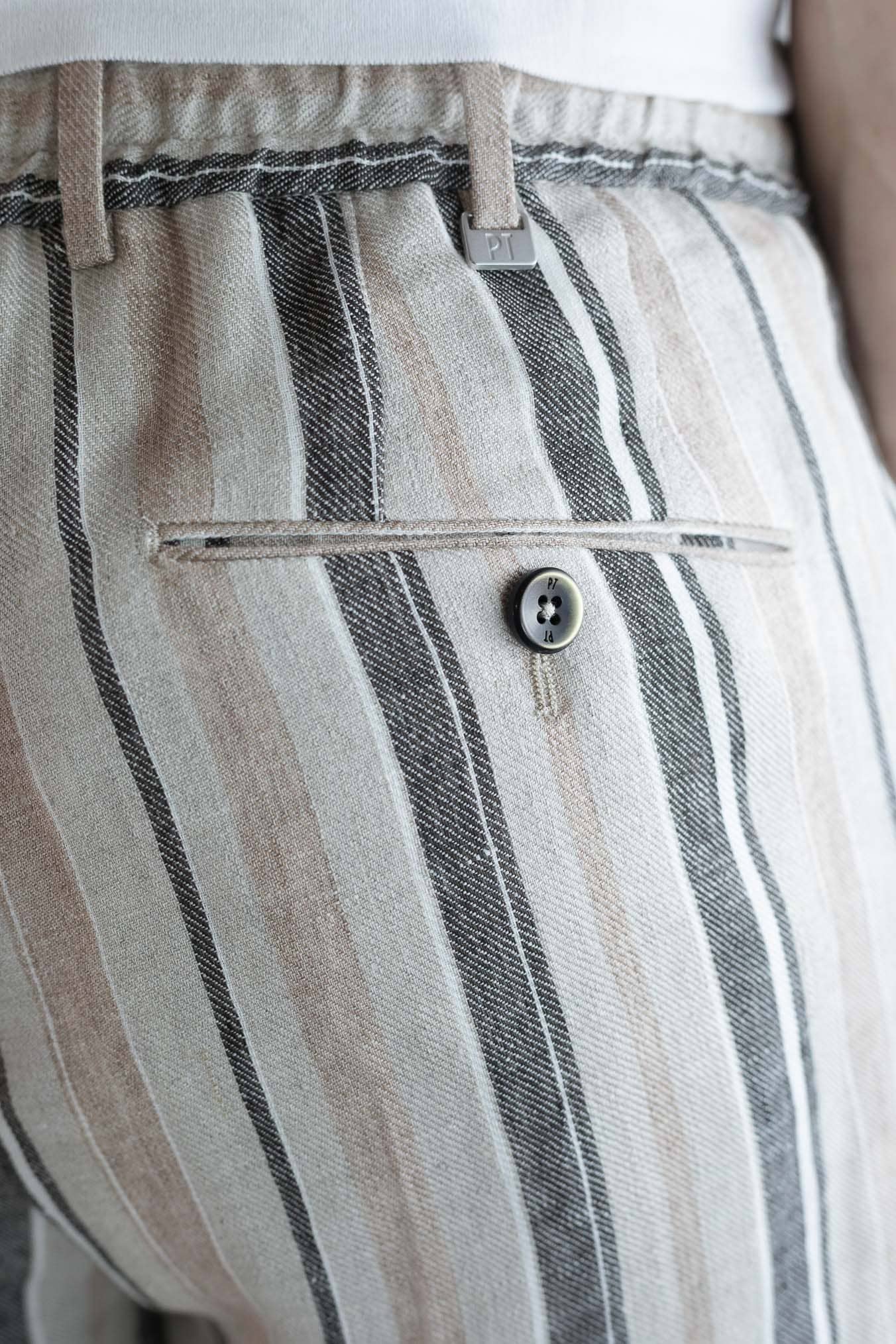 Pantaloni Coulisse Lino Righe Beige Blu PT: leggerezza sartoriale