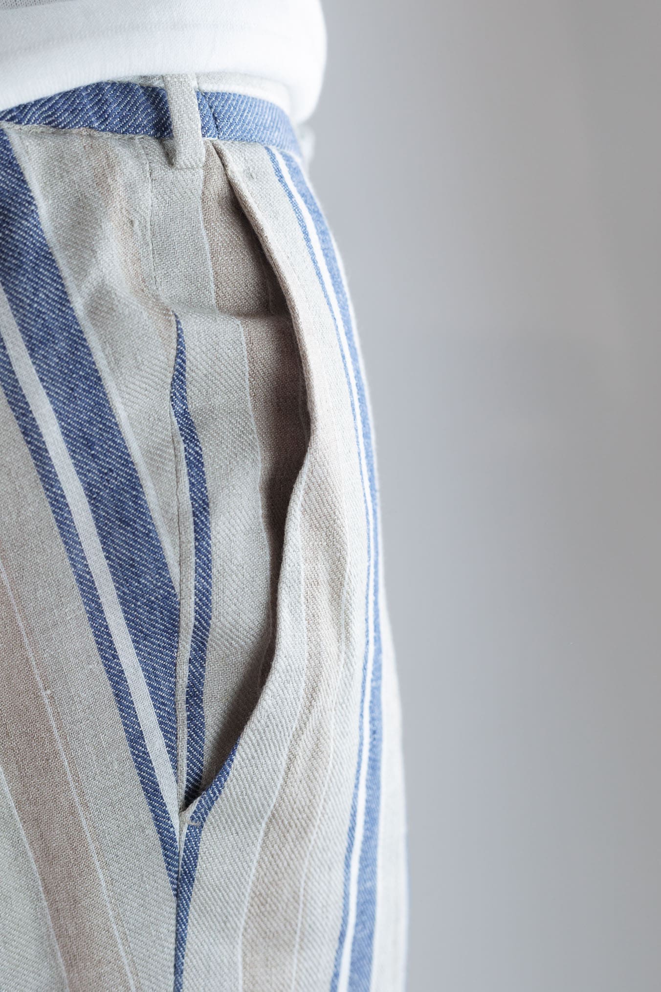 Pantaloni Coulisse Lino Righe Beige e Blu