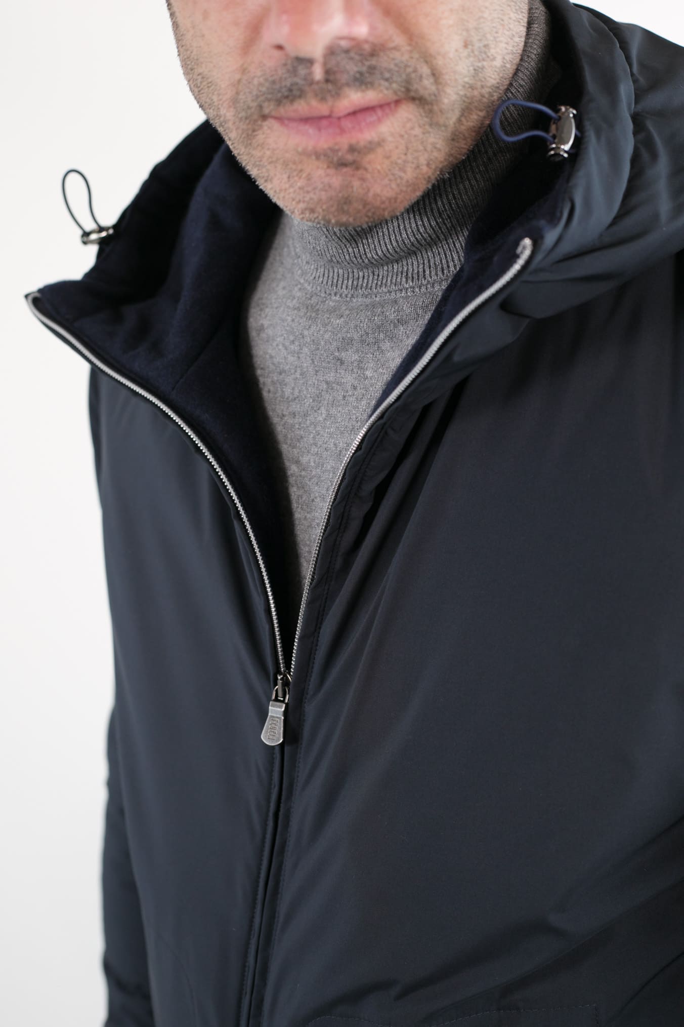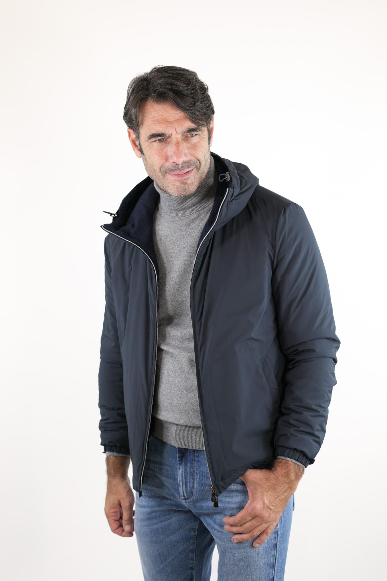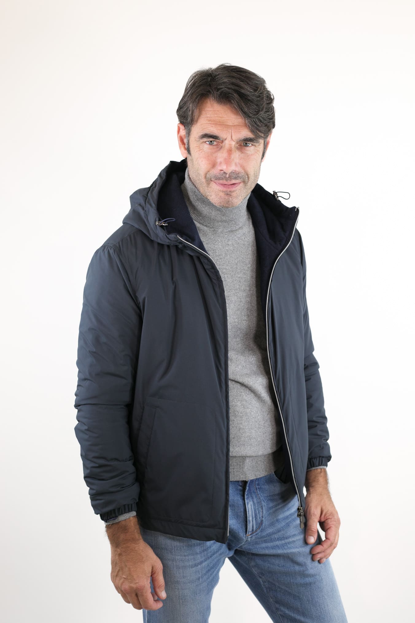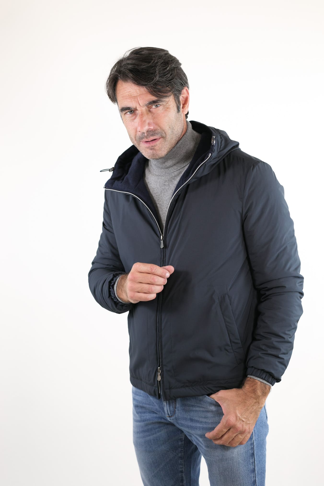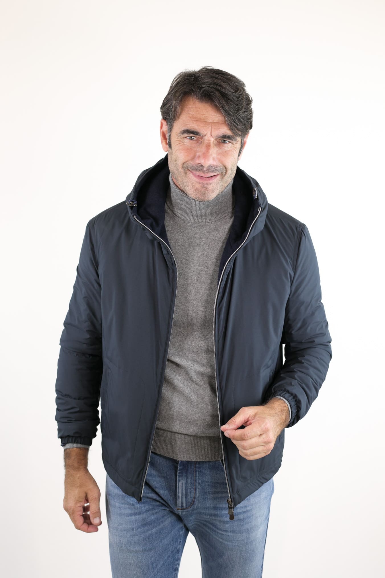 Giubbino con Cappuccio Airstop Foderato in Cashmere Nero