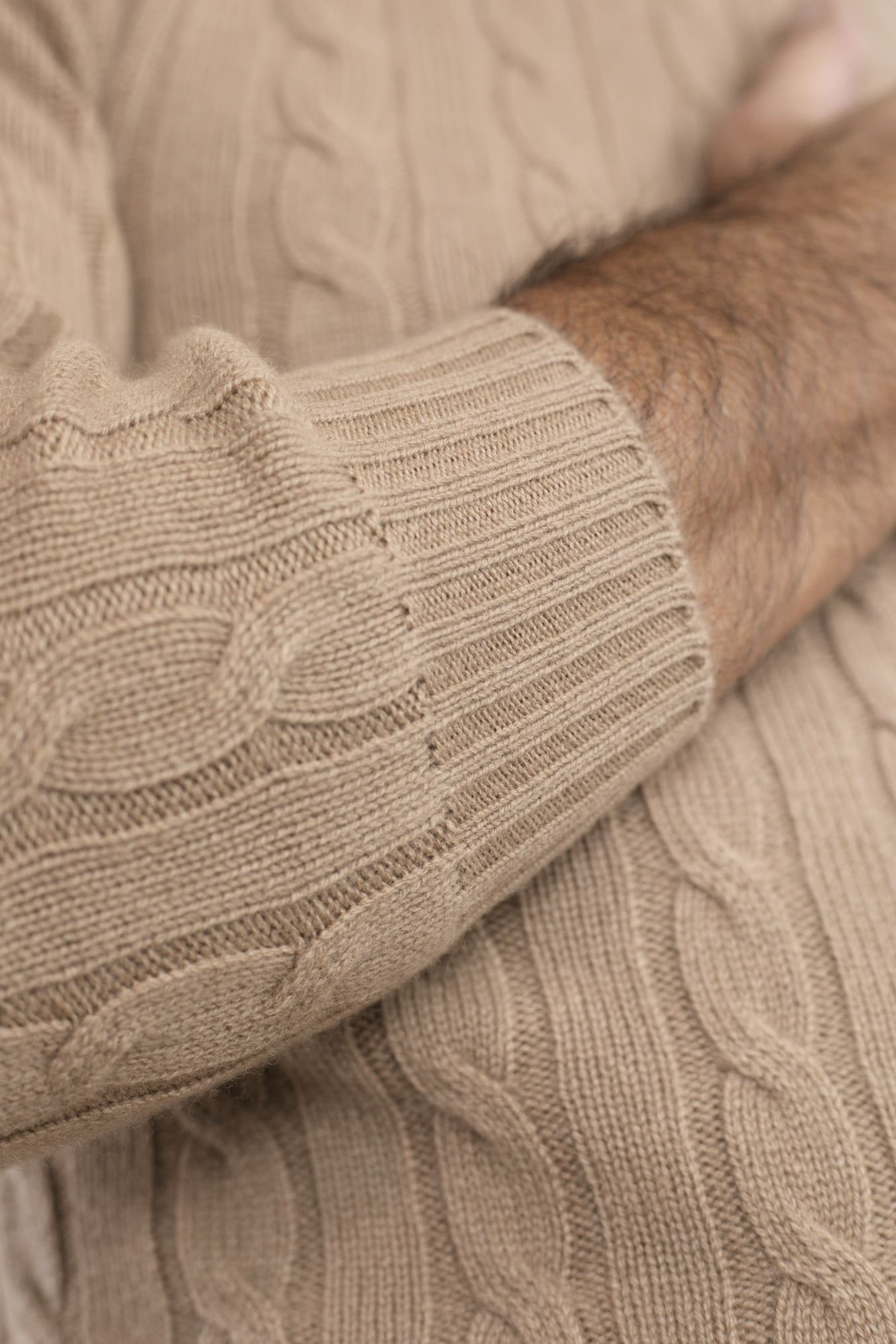 La lavorazione a trecce dona carattere e profondità al tessuto, rendendo questo dolcevita un pezzo essenziale nel guardaroba maschile, capace di arricchire ogni outfit.