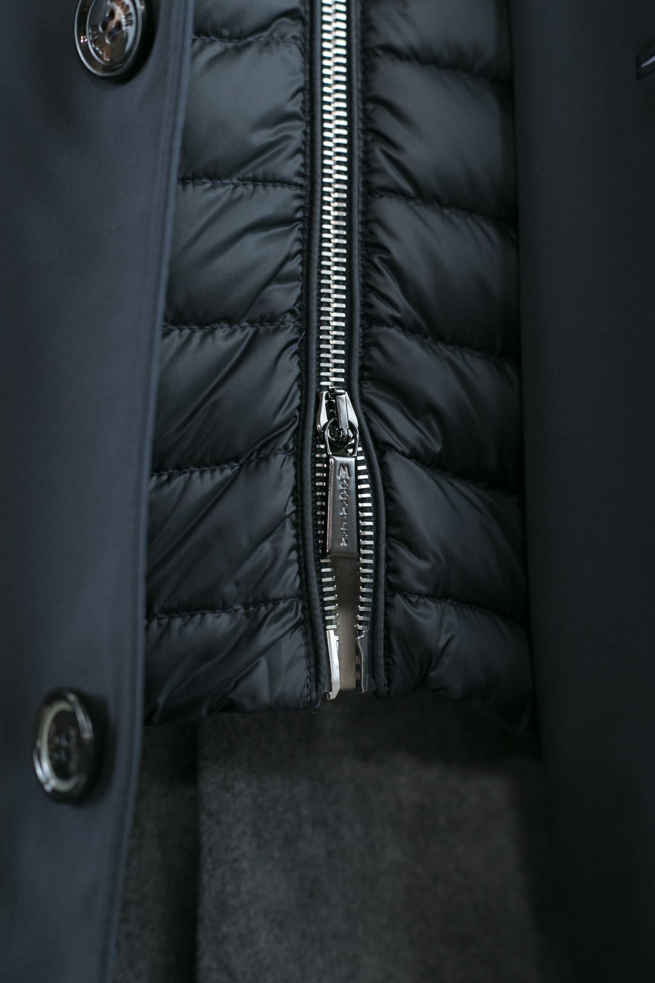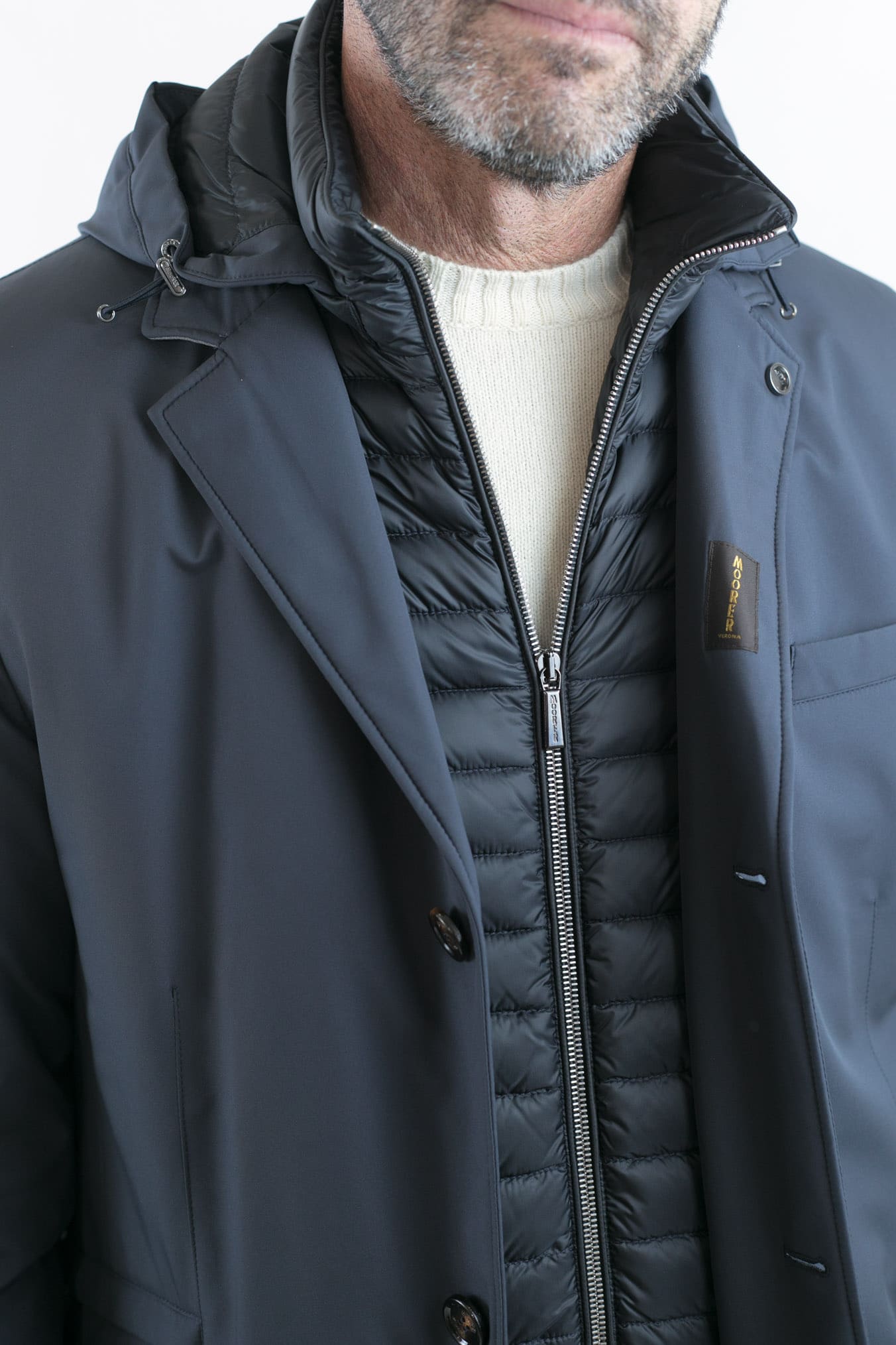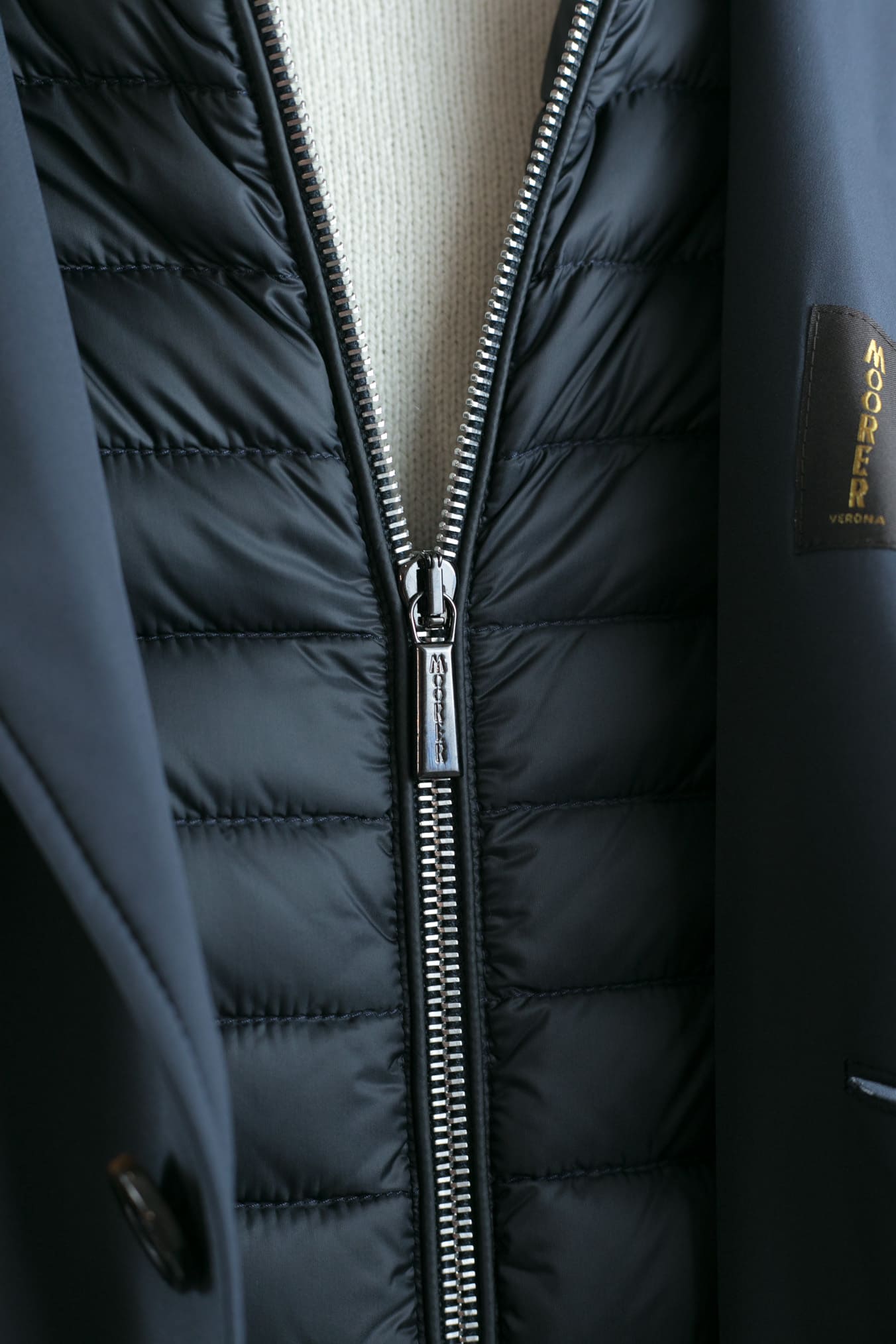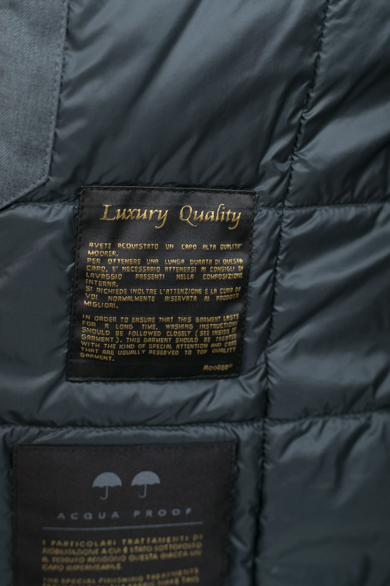 Con taschino anteriore con zip e tasche interne porta valori, questo cappotto offre non solo stile ma anche praticità, confermando la qualità artigianale e la cura per i dettagli tipiche del marchio Moorer.