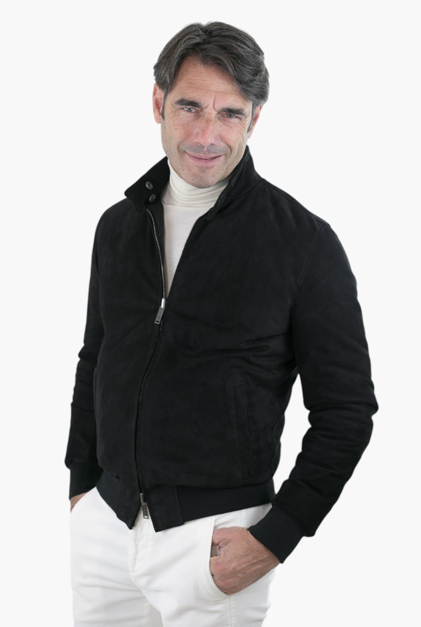 Giubbino Reversibile in Suede e Piuma D'Oca Nero